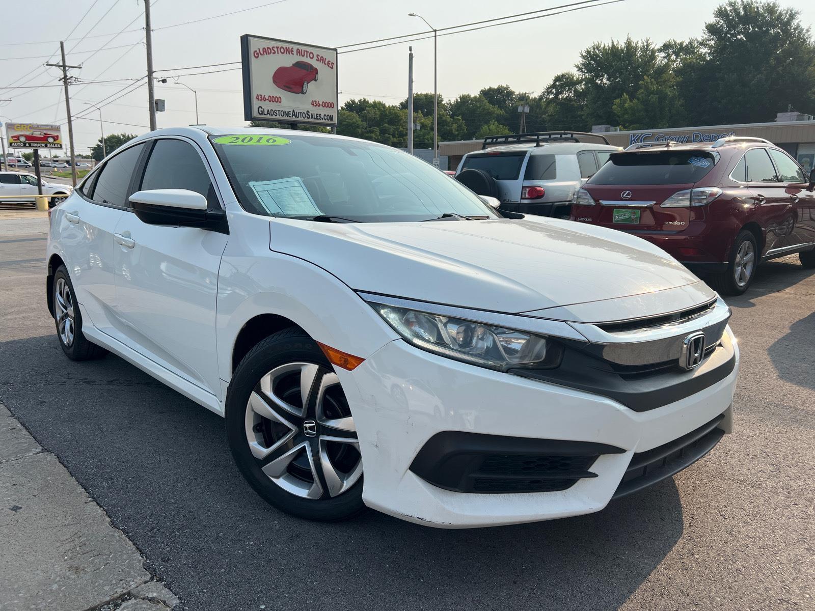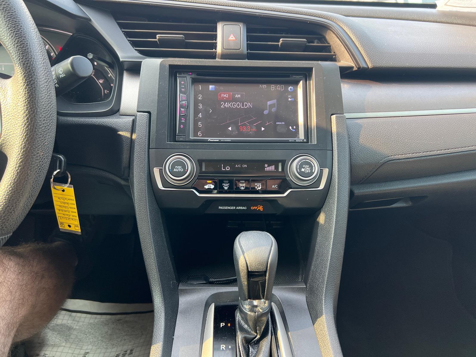 This 2016 Honda Civic Sedan with just 93333 miles is available now. A vehicle history report is always available. This vehicle is equipped with Convenience Cruise control with steering wheel mounted controls. Set it and forget it. Road trips used to be stressful, until cruise control set the pace. Simply set the desired speed using the steering wheel mounted controls and it will maintain that speed without driver intervention. This can help minimize driver fatigue and improve overall fuel economy. Resting your right foot is right at your fingertips thanks to cruise control with steering wheel mounted controls.In-car Entertainment Wireless audio streaming - Strike the cord. With wireless streaming, the endless library of music on your mobile device is available through your vehicle's sound system! Make a playlist befitting of your road trip as it rolls along; let the back seat passengers control the selection; catch up on your favorite podcasts. With wireless audio streaming, all you have to do is press play.Powertrain and Mechanical Variable valve timing - Change your output. There are a lot of variables in your drive, so why should your engine always operate the same? With variable valve timing, the engine is efficient at both low and high RPM's, so you get better fuel efficiency, cleaner emissions and improved performance. Variable valve timing provides a better drive, every time.Safety and Security Rear camera - Watching your back! The rear camera helps you see obstacles and hazards you otherwise couldn't by showing enhanced images of what is behind you. The rear camera is an extra set of eyes that's both convenient and safe. Brake assist - Stop right there. Something jumps out into the middle of the road and you need to stop now! With brake assist, you will. It uses the speed of the brake pedal's travel to sense panic braking, then applies all available power to boost your stopping power. Brake assist can stop the accident before it is one. Engine: 2.0L I-4 DOHC 16-Valve i-VTEC, Transmission: Continuously Variable (CVT), Front-wheel drive, 4.68 Axle Ratio, Gas-Pressurized Shock Absorbers, Front And Rear Anti-Roll Bars, Electric Power-Assist Speed-Sensing Steering, 12.4 Gal. Fuel Tank, Single Stainless Steel Exhaust, Strut Front Suspension w/Coil Springs, Multi-Link Rear Suspension w/Coil Springs, 4-Wheel Disc Brakes w/4-Wheel ABS, Front Vented Discs, Brake Assist, Hill Hold Control and Electric Parking Brake, Steel Spare Wheel, Compact Spare Tire Mounted Inside Under Cargo, Clearcoat Paint, Body-Colored Front Bumper, Body-Colored Rear Bumper, Chrome Side Windows Trim, Body-Colored Door Handles, Body-Colored Power Side Mirrors w/Convex Spotter and Manual Folding, Fixed Rear Window w/Defroster, Light Tinted Glass, Fixed Interval Wipers, Fully Galvanized Steel Panels, Grille w/Chrome Bar, Trunk Rear Cargo Access, Auto On/Off Projector Beam Halogen Daytime Running Headlamps w/Delay-Off, Window Grid Antenna, Reclining Front Bucket Seats -inc: driver seat manual height adjustment and adjustable head restraints, 6-Way Driver Seat -inc: Manual Recline and Fore/Aft Movement, 4-Way Passenger Seat -inc: Manual Recline and Fore/Aft Movement, Full Folding Bench Front Facing Fold Forward Seatback Rear Seat, Manual Tilt/Telescoping Steering Column, Gauges -inc: Speedometer, Odometer, Engine Coolant Temp, Tachometer and Trip Odometer, Front Cupholder, Rear Cupholder, Compass, Valet Function, Power Fuel Flap Locking Type, Remote Releases -Inc: Power Cargo Access, Cruise Control w/Steering Wheel Controls, Automatic Air Conditioning, HVAC -inc: Underseat Ducts, Glove Box, Driver foot rest, Interior Trim -inc: Metal-Look Instrument Panel Insert, Metal-Look Door Panel Insert and Metal-Look Interior Accents, Full Cloth Headliner, Metal-Look Gear Shifter Material, Day-Night Rearview Mirror, Driver And Passenger Visor Vanity Mirrors w/Driver And Passenger Auxiliary Mirror, Full Floor Console w/Covered Storage and 1 12V DC Power Outlet, Front Map Lights, Fade-To-Off Interior Lighting, Carpet Floor Trim and Carpet Trunk Lid/Rear Cargo Door Trim, Cargo Space Lights, FOB Controls -inc: Cargo Access, Instrument Panel Bin, Driver / Passenger And Rear Door Bins, Delayed Accessory Power, Driver Information Center, Outside Temp Gauge, Digital/Analog Appearance, Seats w/Cloth Back Material, Fixed Rear Head Restraints, Sliding Front Center Armrest, Perimeter Alarm, Immobilizer, 1 12V DC Power Outlet, Air Filtration, Side Impact Beams, Dual Stage Driver And Passenger Seat-Mounted Side Airbags, Low Tire Pressure Warning, Dual Stage Driver And Passenger Front Airbags, Curtain 1st And 2nd Row Airbags, Airbag Occupancy Sensor, Rear child safety locks, Outboard Front Lap And Shoulder Safety Belts -inc: Rear Center 3 Point, Height Adjusters and Pretensioners, Back-Up Camera