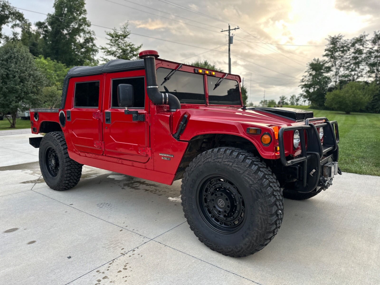 Everyone knows the hummer is the baddest vehicle on earth, there isn’t a single person that doesn’t know what these are!!This is a REAL civilian H1 Hummer, fully loaded, pampered and taken care of with countless upgrades to keep it in tiptop condition! It runs drives stop and looks fantastic, no leaks, no smoke, no issues, no lights, no dents, no rust! I am a lifetime hummer H1 guy, I have owned 20 of these over the years, I actually used to work on them for hire, I know them inside and out. Ive been through this and fixed all the silly stuff and small leaks, nothing leaks, no weird noises, no over heating on the highway no engine lights or so on. All the lights work, the HVAC system, the vents, electric defrost, 4x4, shifts great, drives straight, powerful but bone stock, still has stock exhaust with converter for the emissions tested folks. It has an upgraded Navistar 506 “optimizer” 6.5 turbo diesel engine, very low miles, around 10k miles, new glow plugs, new batteries, new PMD and relocation kit, The entire air conditioner system re-built front front and back ice cold, so cold it will give you a headache! Brand new 40 inch tires and brand new 20” wheels, 2” body lift, near perfect gray interior, new rubber duck insulated soft top, newly tinted windows, ALL fluids changed out, everything works on this exactly the way it’s supposed to! I drive this truck as a daily driver some weeks, it's so much fun to drive and gets all the looks and smiles! This truck is turn key! Drive anywhere at 70 with cruise control on and the a/c blasting. Not ao great, CTIS works but has a very slow leak on the drivers rear hub, after a week tire can loose 10 psi, I have air lines off the rims so this don't happen now, I don't go off road so the CTIS isn't a issue for me. The past owners had fender flairs on it, this left around 15 or so tiny holes above each wheel on the wheel arch. The body is a 8 out of 10 because of some mild paint issues with it being a 1998 and the holes, the interior is 9 out of 10 just because its a 1998, interior is intact and complete. I am not sure what else to say, I think the pictures speak for themselves, great truck and its really to drive back across the country! Clean clear title in hand, located in Bloomington, IN 47404, Yes! this is a private hummer enthusiasts sale so you don’t have to mess with a shady dealer!