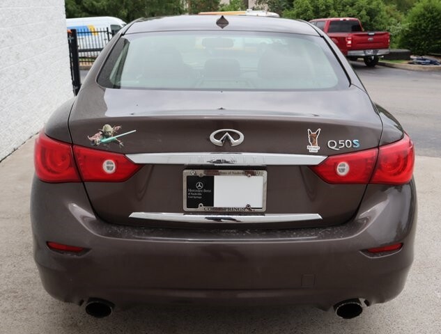 Feast your eyes on our 2014 INFINITI Q50 Hybrid Sport in Chestnut Bronze, which is masterfully crafted with revolutionary style and compelling performance. Powered by a 3.5 Liter V6 that combines with an Electric Motor to generate 354hp while tethered to a 7 Speed Automatic. This stellar combination allows our sure-footed Rear Wheel Drive sedan to sprint to 60mph in less than 6 seconds, resulting in nearly 36 mpg on the open highways.The seductive design of the Q50 Sport features a prominent sunroof, sculpted body panels, and 19-inch alloy wheels with summer performance tires. The innovation carries through to the elegant leather-trimmed interior that has been intuitively designed with a fully customizable digital environment that saves audio, climate, and navigation settings for each intelligent key. You'll love INFINITI's InTouch system, which features dual display screens and the Bluetooth hands-free phone system with a hands-free text messaging assistant. Crank up the high-definition Bose sound system with satellite radio and enjoy turning heads in this spectacular machine.A host of advanced safety features from INFINITI are on board to protect you; an advanced airbag system, zone body construction w/front/rear crumple zones, and dynamic vehicle control, to name a few. Reward yourself with maximum driving pleasure today with this Q50 Hybrid Sport. Save this Page and Call for Availability. We Know You Will Enjoy Your Mercedes-Benz of Nashville Test Drive Towards Ownership!
