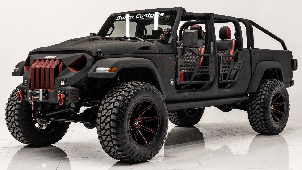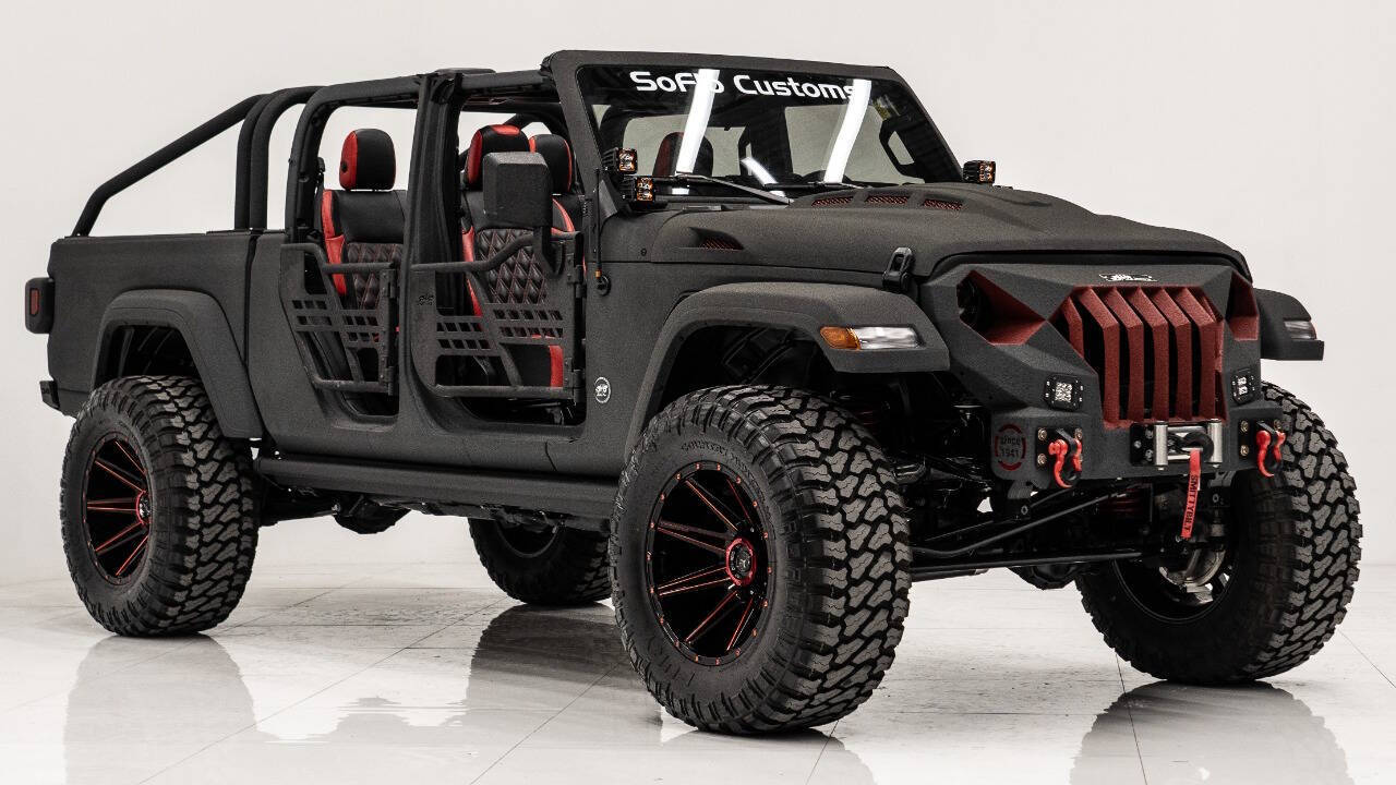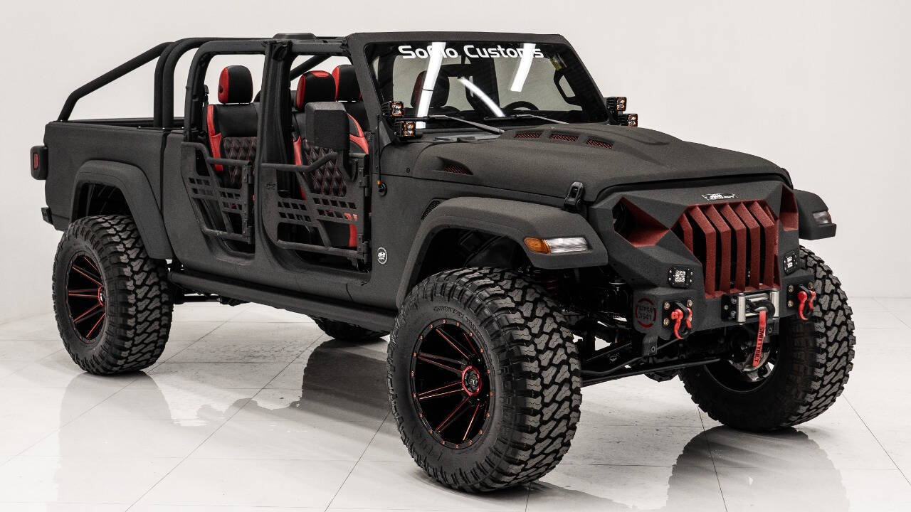 YEAR: 2022 COLOR: Armor Gun Metal Gray TRIM: SoFlo Lifted Custom Jeep Gladiator LIFT: 4” TIRES: 38 RIMS: 20 Red and Black HOOD: Predator GRILL: Grumper with Winch SIDESTEPS: Powersteps SPECIAL FEATURES: Double Stacked Cube Lights, Aluminum Rollcage Covered in Off Road Armor WEATHERPROOF INTERIOR: Black and Red Diamond WHAT MAKES THIS TRUCK SPECIAL: The SoFlo Spartan is a unique beast that visually looks unlike anything else on the road today. Only 300 will ever be built. CALL US OR COME SEE THESE CUSTOM TRUCKS IN PERSON Location 1: 1430 W Broward, BLVD Fort Lauderdale, FL 33312 855-873-7632 Location 2: 2720 Okeechobee BLVD West Palm Beach, FL 33406 855-873-7632 NEW E-PURCHASE SYSTEM - Customers never have to leave the comfort of their home couch to purchase a SoFlo Jeeps or Apocalypse 6x6 truck. We offer online payment, financing and video walkarounds. We ship our trucks worldwide to any and every location. Have a trade-in? Not a problem at all, as WE ACCEPT TRADE-INS NATIONWIDE AND YOU NEVER PAY TO SHIP IT. We make buying and receiving your dream truck beyond simple. ****ALL PIPE DOORS ARE EXTRA AND NOT INCLUDED IN PRICE OF THE TRUCK****