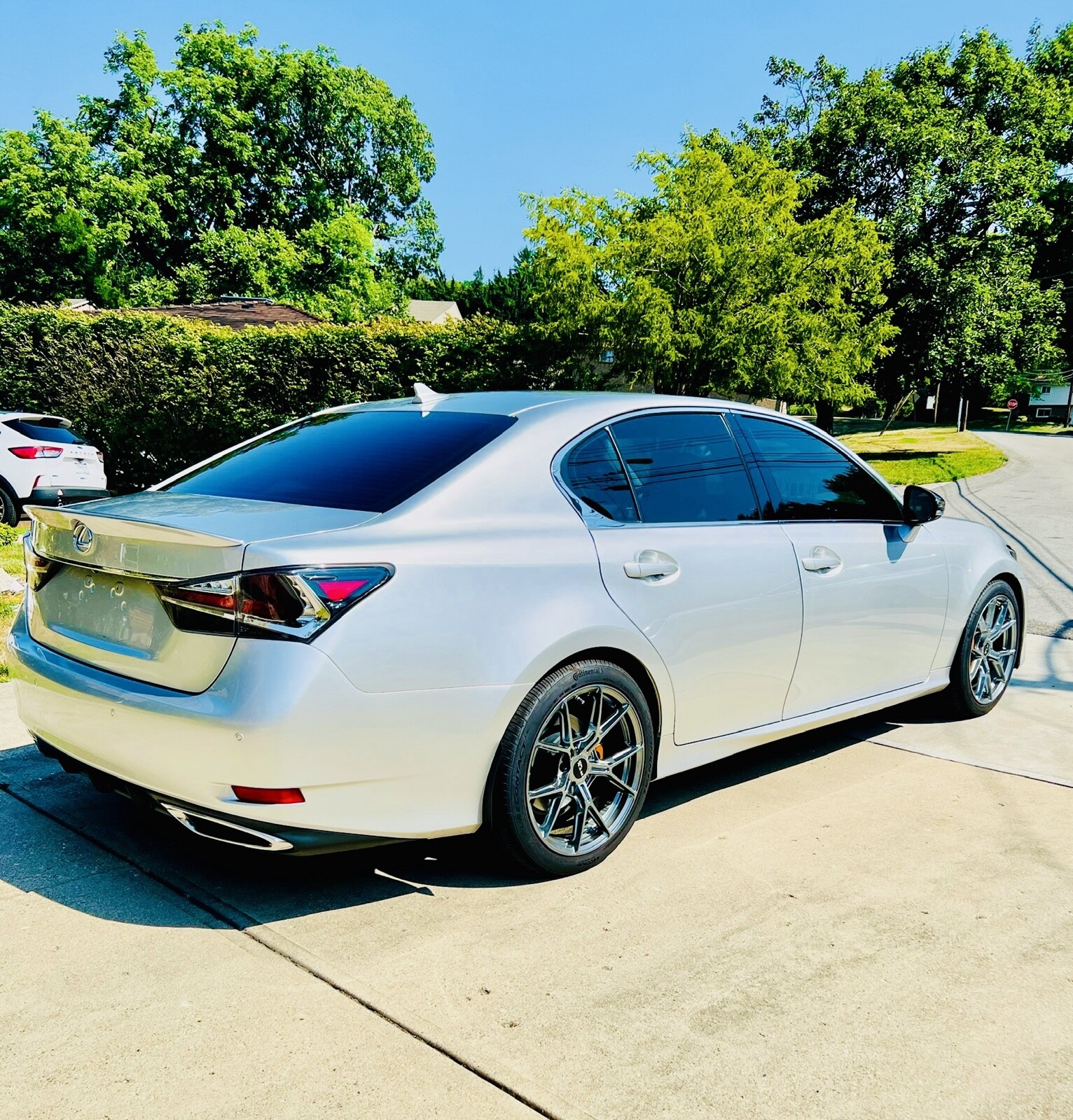2013 Lexus GS350 AWD 110,824 mi Liquid Platinum, Black interior Cold Weather Package Heated and Cooled Seats 16-20 F Sport Front End conversion: OEM 16-20 F Sport Bumper OEM 16-20 Triple Beam Headlights with autolevel (No codes) OEM Grille and emblem OEM Air ducts (behind foglight grilles) External Upgrades: Alibaba 16-20 Rear Taillights Carbon Guards real carbon fiber mudflaps Tint: 20% around, 50% windshield and sunroof Llumar ITX Wheels: RTX RS01 Flow Forged Gloss Gunmetal Silver 19x8.5 ET38 Copper painted calipers with Black Lexus decals Tires: Continental PureContact 245/40/19 Lux spoiler Ceramic Pro Gold Lifetime Package (Entire vehicle) AEM Drop in Driflow filter Diode Dynamics SS3 Max White with Amber Backlight Foglights Carbon Fiber full replacement side mirrors with upgraded white LED puddle lights Rotanak’s Lexus Door lights LED license plate lights Fuel pump noise dampener Interior Upgrades: OEM 16-20 F Sport shift knob and boot OEM 16-20 mouse OEM F-Sport aluminum pedals and dead pedal RoadTop Carplay All weather trunk liner 3D MAXpider floormats (front and rear) LED white lights throughout entire inside and trunk Blue LED strips in all door panels replacing the factory white for ambient lighting Carbon Fiber look vinyl wrap over all wood trim pieces Suspension (all New within 1,000 miles) Tanabe NF210 Springs SPC Adjustable Rear Camber Kit AVS shocks/struts (bought off member here with approx. 20K miles) New front and rear sway bar end link/bushings, front and rear bump stops Maintenance: New within last 1,000 miles: Cabin filter, spark plugs, PCV valve, sunroof seal, wiper blades, radiator overflow cap and hosesVehicle Details