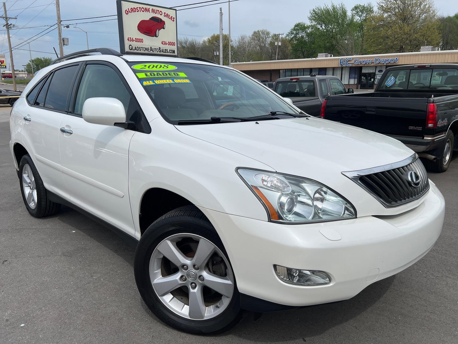 This 2008 Lexus RX 350 with just 85239 miles is available now. A vehicle history report is always available. No Accidents! This vehicle is equipped with Comfort Power reclining driver seat - Lean back. Gain some space between you and the wheel with power reclining driver seat. It lets you adjust the angle of the seatback at the touch of a button for added comfort while you're driving, or for a more comfortable rest while you're pulled over. Settle in, with power reclining driver seat. Power reclining driver seat - Lean back. Gain some space between you and the wheel with power reclining driver seat. It lets you adjust the angle of the seatback at the touch of a button for added comfort while you're driving, or for a more comfortable rest while you're pulled over. Settle in, with power reclining driver seat.Convenience Cruise control with steering wheel mounted controls. Set it and forget it. Road trips used to be stressful, until cruise control set the pace. Simply set the desired speed using the steering wheel mounted controls and it will maintain that speed without driver intervention. This can help minimize driver fatigue and improve overall fuel economy. Resting your right foot is right at your fingertips thanks to cruise control with steering wheel mounted controls. Power open and close liftgate - On-demand access. When your arms are full of cargo, the last thing you want to do is set it all down just to open the liftgate, then pick it all back up to load it in. By remotely opening and closing, power liftgate lets you skip straight to the loading. It also eliminates the awkward stretch to reach up for the liftgate to close it. Load and go with power open and close liftgate.Safety and Security Brake assist - Stop right there. Something jumps out into the middle of the road and you need to stop now! With brake assist, you will. It uses the speed of the brake pedal's travel to sense panic braking, then applies all available power to boost your stopping power. Brake assist can stop the accident before it is one. 3.5L DOHC SFI 24-valve V6 engine-inc: dual variable valve timing w/intelligence (VVT-i), ALL WHEEL DRIVE, Limited slip center differential, MacPherson strut front suspension-inc: coil springs, gas shocks, Dual-link MacPherson strut rear suspension-inc: coil springs, gas shocks, Rear stabilizer brace, 225/65SR17 mud & snow tires, Pwr rack & pinion steering, Pwr front ventilated & rear solid disc brakes, Tool Kit, Rear bumper protector, Integrated black rear spoiler, Auto-on/off headlamps w/delay-off, Integrated front fog lamps, LED brake lamps, Electrochromic pwr heated mirrors, Acoustic windshield, Water-repellent front door glass, UV ray-reducing window glass, Black privacy glass, Intermittent rear wiper, Chrome door handles, 10-way pwr front bucket seats-inc: pwr lumbar, adjustable headrests, integrated armrests, Reclining/sliding rear 40/20/40 split fold-down seat-inc: adjustable headrests, Rear center armrest w/(2) cup holders & storage box, Cut pile carpeting, Carpeted floor mats, Chrome scuff plates, 3-pod electroluminescent instrument cluster, 7" LCD multi-info screen w/adjustable brightness-inc: ventilation, outside temp, average MPG, current MPG, average speed, Tire pressure monitoring system, Scheduled maintenance indicator light, Vehicle theft-deterrent & immobilizer system w/in-key transponder, Pwr fuel door release, Retained accessory pwr, HomeLink universal transceiver, Short pole antenna w/in-glass FM diversity system, Dual-zone automatic climate control-inc: dust & air filters, Rear AC vents at rear of center console, Rear window defogger w/auto-off timer, Metallic accents-inc: center instrument panel, switch plates, Pop-out cupholder left of steering wheel, Maple or walnut wood trim-inc: door panels, shifter island, console, Chrome door handles, Front door storage pockets, Electrochromic rearview mirror w/compass, Overhead console w/sunglasses holder, Sun visors w/adjustable-illumination vanity mirrors, slide extensions, Front/rear assist grips, Lighting-inc: door courtesy, ignition ring, glove box, front map, cargo area, illuminated entry w/delay, Wood & leather-trimmed shift knob, Front seatback pockets, Coat hooks, (3) pop-up storage compartments under cargo floor, Dual front advanced airbag system w/crash severity & occupant detection sensors, Front seat-mounted side-impact airbags, Front/rear side curtain airbags w/roll sensor, Driver knee airbag, 3-point front seat belts-inc: pretensioners, force limiters, height-adjustable shoulder belt anchors, 3-point rear seat belts, All-position emergency locking retractor (ELR), All-passenger automatic locking retractor (ALR), Child safety rear door locks, Rear seat ISO-FIX top tether anchors, Side-impact door beams, Front/rear crumple zones, Impact-dissipating upper interior trim, Brake pedal regression prevention, Collapsible steering column, Collision fuel cutoff, First Aid Kit