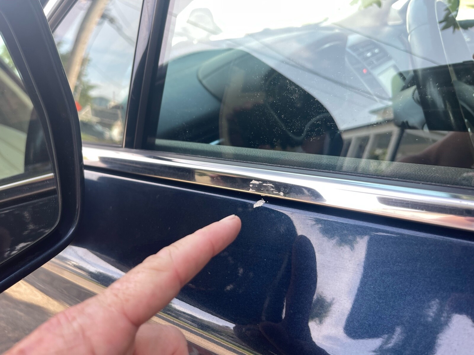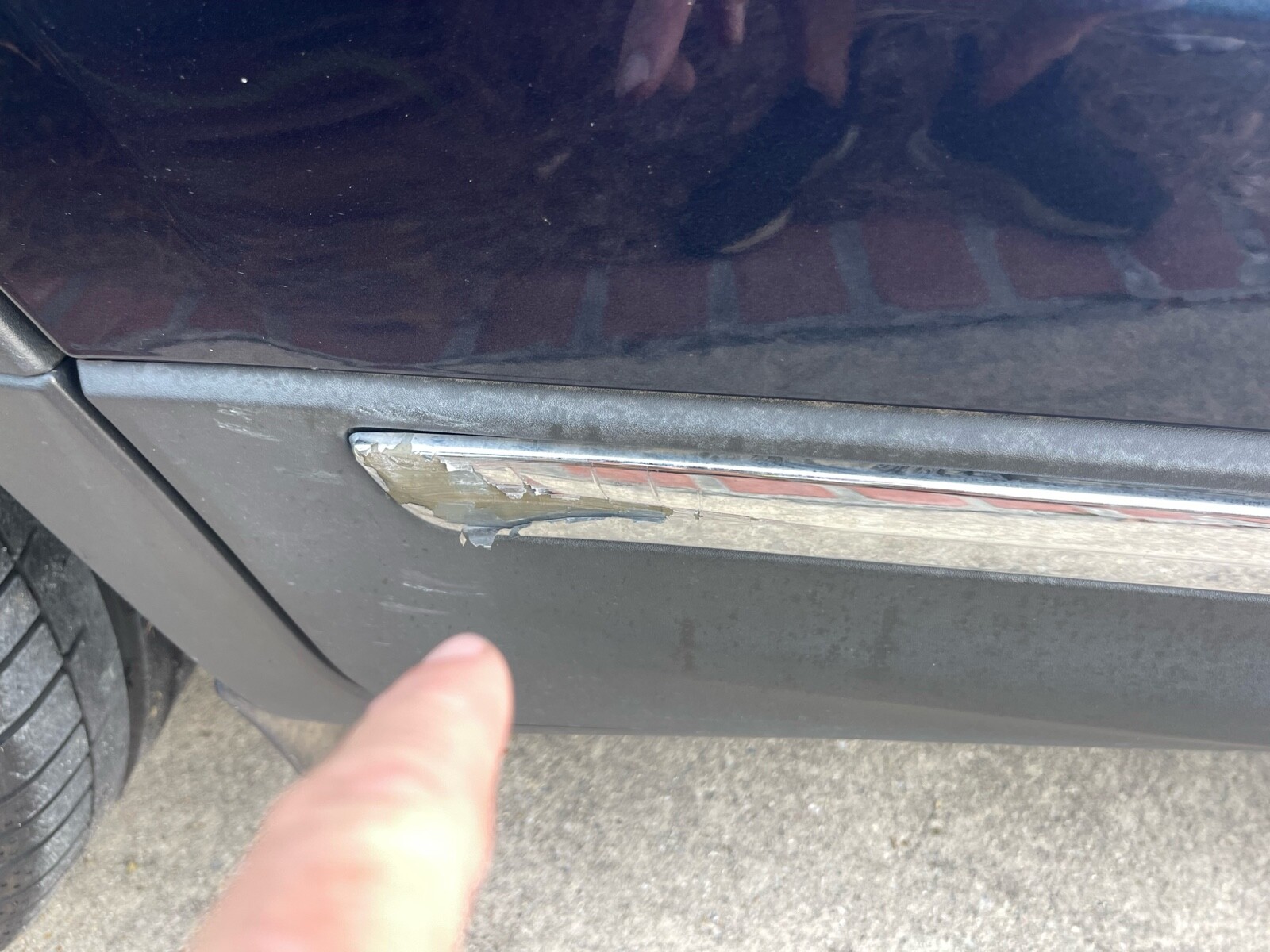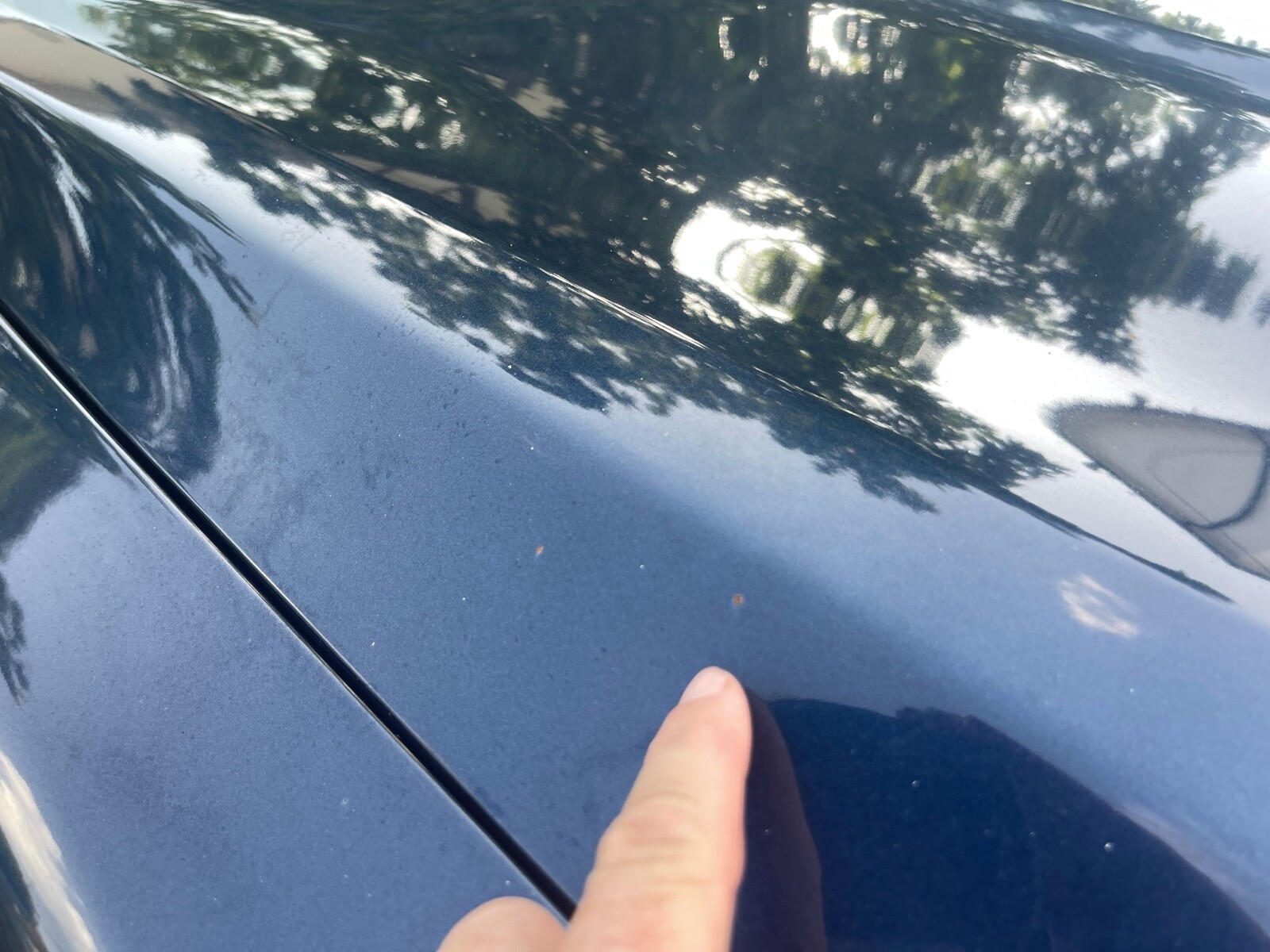 Please read the entire listing. There are numerous small cosmetic blemishes that are documented in the photos. These include paint chips on the hood, some metallic blemishes on trim (most notably by side view mirror on driver's side) and discoloration on wheel rims. See photos.