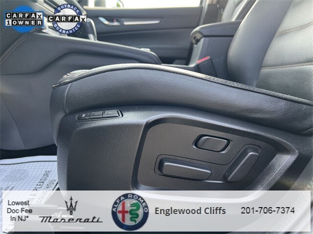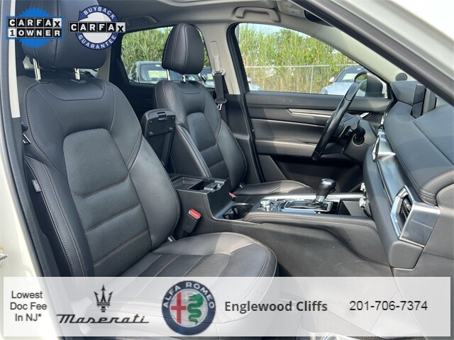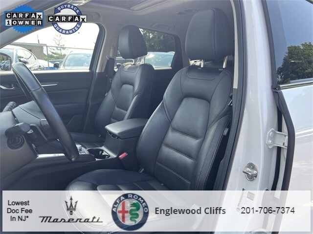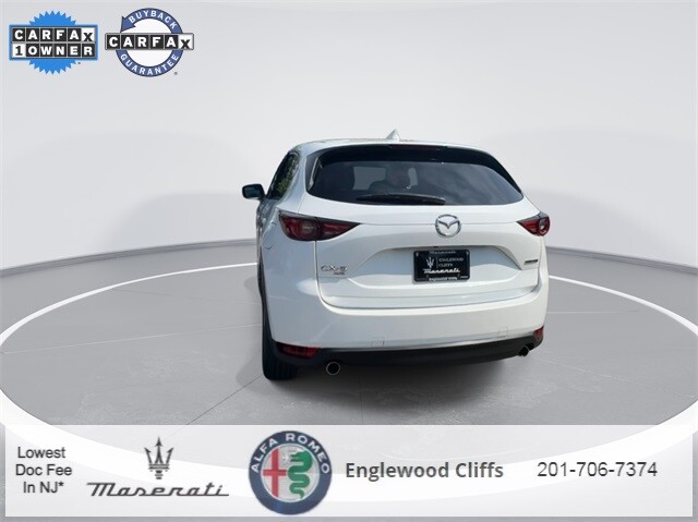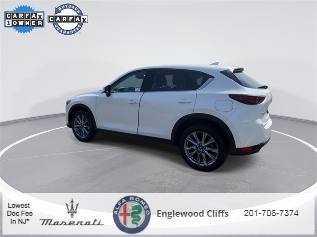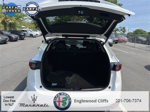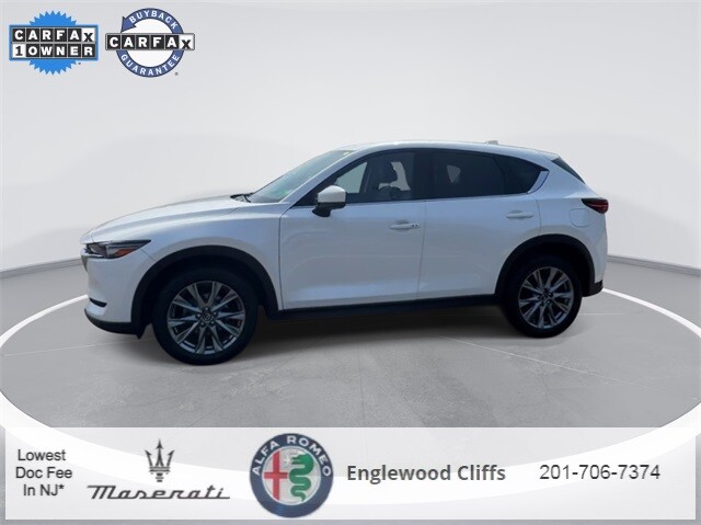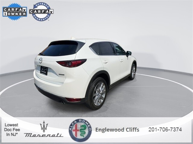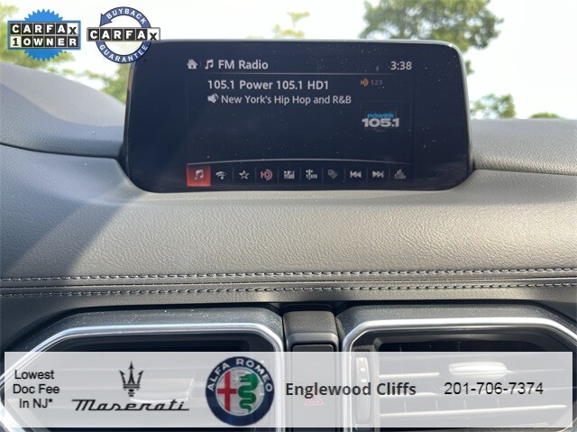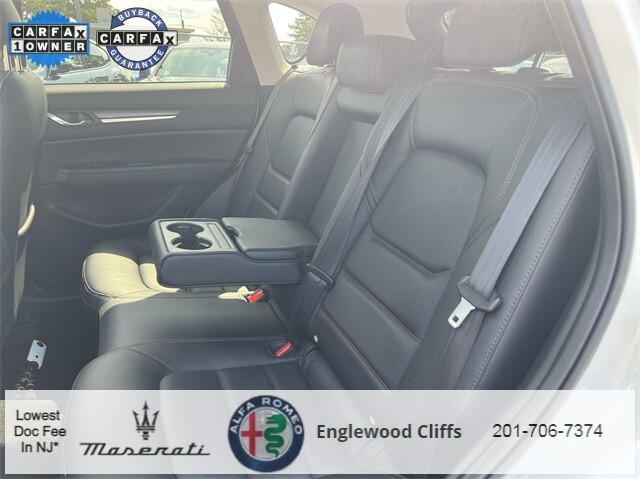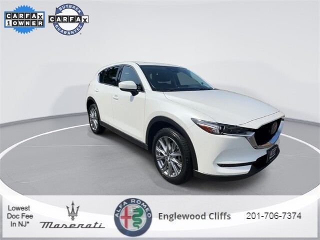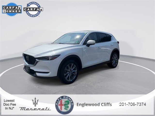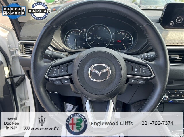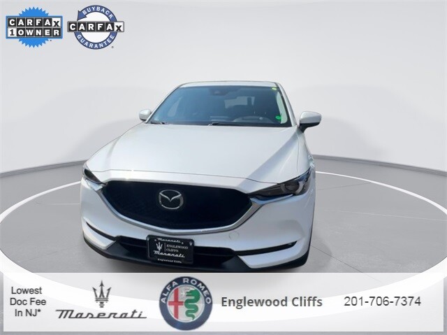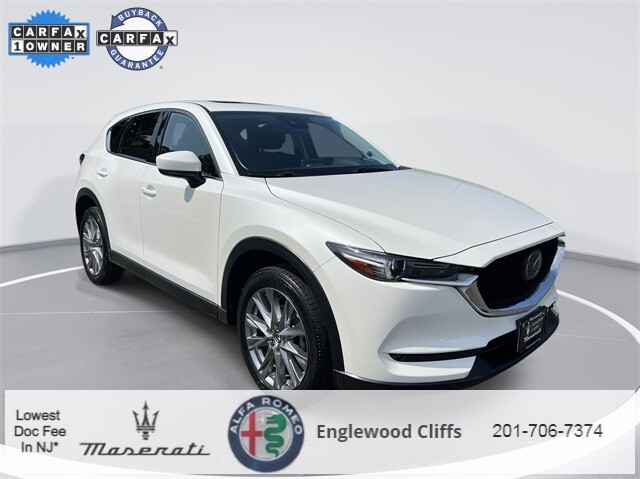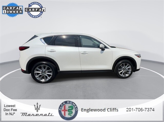 This CX-5 Grand Touring is nicely equipped with GT Premium Package (Active Driving Display (Windshield Type), Automatic Power Folding Side Mirrors, Heated Rear Seats, Heated Steering Wheel, Ventilated Front Seats, and Windshield Wiper De-Icer), AppLink/Apple CarPlay and Android Auto, Auto High-beam Headlights, Auto-dimming Rear-View mirror, Automatic temperature control, Bose 10-Speaker Audio Sound System, Brake assist, Electronic Stability Control, Exterior Parking Camera Rear, Four wheel independent suspension, Front dual zone A/C, Fully automatic headlights, Garage door transmitter: HomeLink, Heated door mirrors, Heated Front Sport Seats, Illuminated entry, Memory seat, Outside temperature display, Overhead console, Panic alarm, Power door mirrors, Power driver seat, Power Liftgate, Power moonroof, Power passenger seat, Power steering, Power windows, Radio: AM/FM/HD Audio System, Rain sensing wipers, Rear window defroster, Rear window wiper, Remote keyless entry, Snowflake White Pearl Mica Paint, Speed control, Speed-sensing steering, Steering wheel mounted audio controls, Traction control, Turn signal indicator mirrors, 10 Speakers, 4-Wheel Disc Brakes, 4.624 Axle Ratio, ABS brakes, Air Conditioning, Alloy wheels, AM/FM radio: SiriusXM, Bumpers: body-color, Delay-off headlights, Driver door bin, Driver vanity mirror, Dual front impact airbags, Dual front side impact airbags, Emergency communication system, Front anti-roll bar, Front Bucket Seats, Front Center Armrest, Front fog lights, Front reading lights, Heated front seats, Leather Seat Trim, Leather Shift Knob, Low tire pressure warning, Occupant sensing airbag, Overhead airbag, Passenger door bin, Passenger vanity mirror, Radio data system, Rear anti-roll bar, Rear reading lights, Rear seat center armrest, Split folding rear seat, Spoiler, Tachometer, Telescoping steering wheel, Tilt steering wheel, Trip computer, Variably intermittent wipers, and Wheels: 19 x 7J Aluminum Alloy w/Silver Finish.