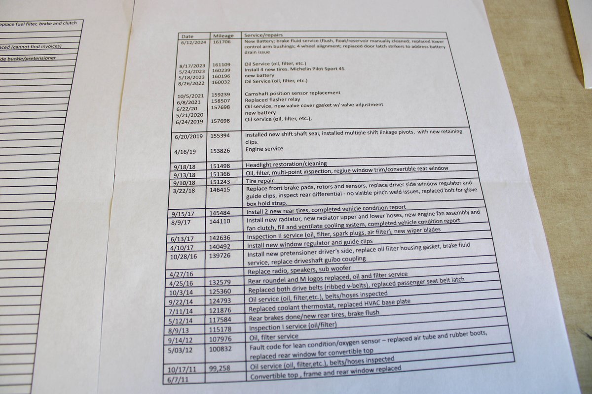 The Z3 had started being produced in 1995 and would have a run until 2002. The much anticipated M Model was introduced in 1997 in either the roadster or coupe and were initially powered by the S50 inline 6-cylinder and would only be available in a 5-speed manual transmission. It would also include a limited slip differential, a wider rear track and larger brakes. It would also take an exterior re-design of front and rear bumpers, roadster style deep dish wheels and quad exhaust giving it that tougher look. The interior would also be different with a factory voltometer, clock and oil temp gauges in the center console. This particular excellent example of the "ultimate driving machine" is this 160K mile car that has been lovingly enjoyed and toured as they were meant to be. This does not mean it has been abused as this has had excellent care, ownership, service and storage for a long time. There is a absolute mountain of open checkbook service receipts that come with this car. There is not a out of place noise or rattle, no shimmy or shakes, no funky leaks or smells and is a pure pleasure to drive. There is no dummy lights on the dash, the A/C blows ice cold and all lights and gauges work as they should. The paint has obvious blemishes that include swirling, paint chips and dulling on the lower side of the car but there is no rust or corrosion. The tires and brakes along with all fluid flushes are done in a routine fashion and all paperwork to be included. It comes with all of this plus original owners manuals, all keys and Carfax. This M roadster is ready to be enjoyed. I hope it gets driven as much as the consignor used it.