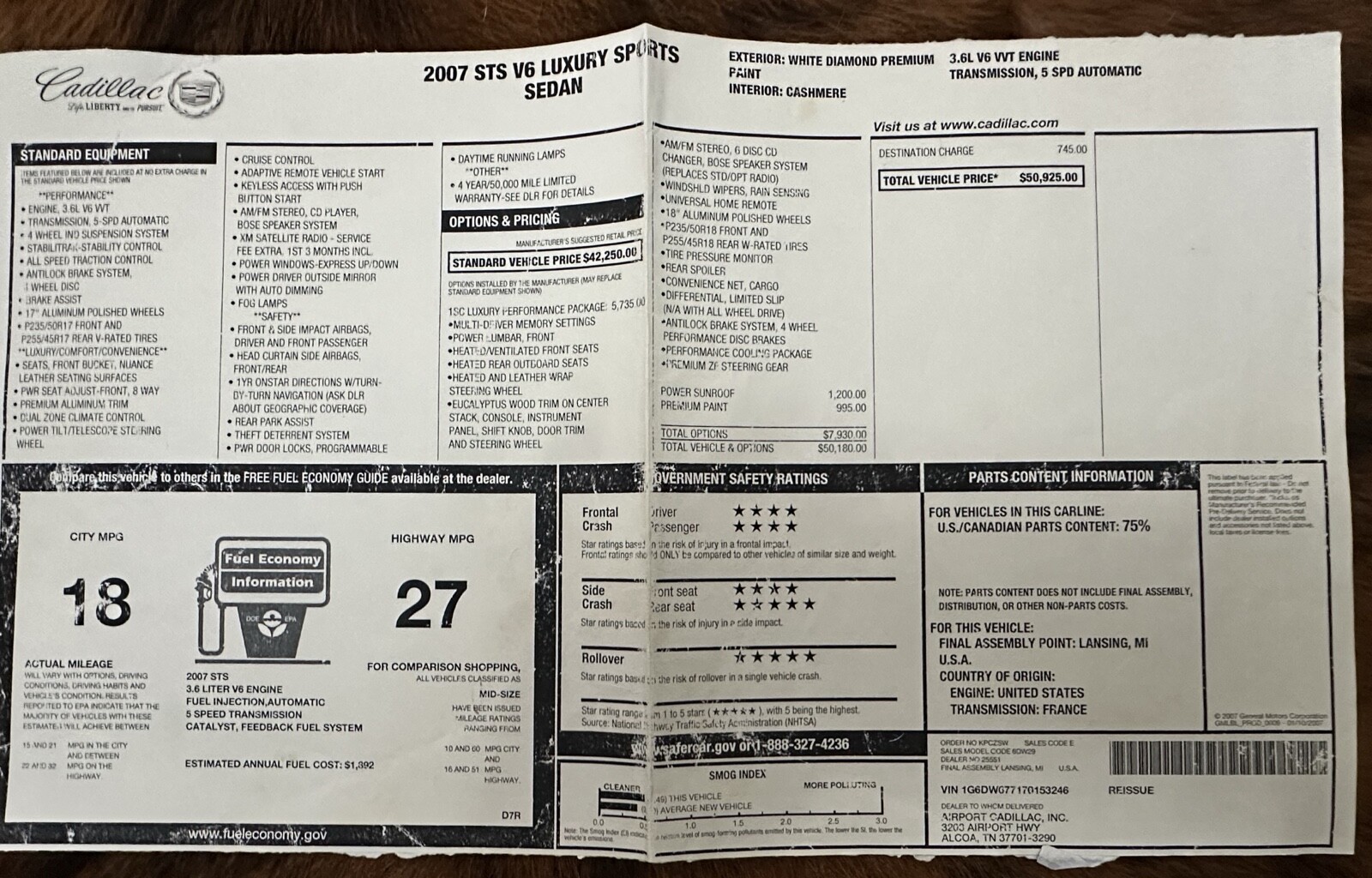 I would feel completely comfortable to drive this car anywhere. It has been very reliable and I have done regular maintenance. The coil packs and plugs were all changed approximately 2 years ago. This 2007 Cadillac STS is a great choice for anyone looking for a reliable and well-loved vehicle. With its sleek white color and impressive mileage of 64547, this car is perfect for weekend drives and long road trips alike. It honestly feels like you are riding on your sofa as you drive down the open road. The car has been garaged or sheltered its entire life. The Kumho tires are new with less than 500 miles on them. I spent over $800 on those just a few months ago. The only reason I’m selling this car is I found a great deal on another car and simply don’t have room to keep it and no time to drive it. The interior has very little wear and and no rips or tears. It has never been smoked in. The champagne carpet is clean and fresh. The title is in hand and there is no accident history. This car is a great choice for anyone looking for a high-quality vehicle. Whether you're a fan of Cadillac or just looking for a reliable car, this 2007 Cadillac STS is a great choice.Vehicle Details