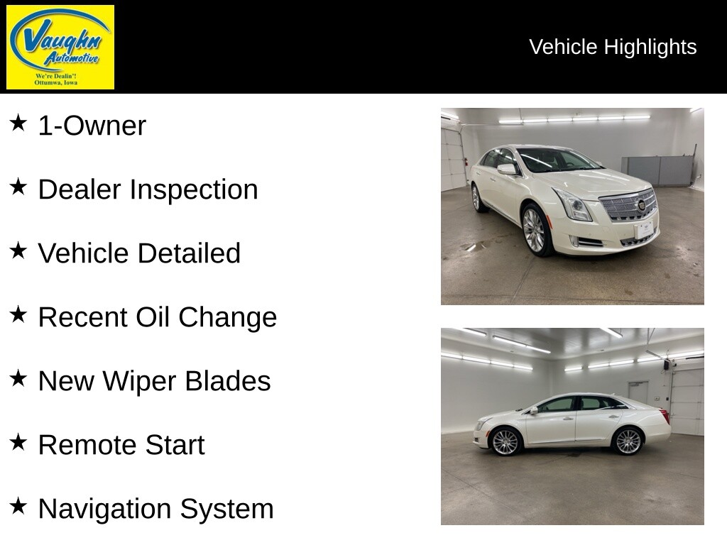 1-Owner, Dealer Inspection, Vehicle Detailed, Recent Oil Change, New Wiper Blades, Remote Start, 6-Speed Automatic, AWD, Very Light Platinum/Dark Urban/Cocoa Leather, 14 Speakers, Bose Studio Surround Sound Audio Feature, Brake assist, Emergency communication system: OnStar Directions & Connections, Exterior Parking Camera Rear, Fully automatic headlights, Garage door transmitter, Heated Front Seats, Heated steering wheel, Lane Departure Warning System, Memory seat, Navigation System, Power moonroof: UltraView, Radio: CUE Information & Media Control System, Rain sensing wipers, Rear air conditioning, Security system, Single Slot CD/MP3 Player, SiriusXM Satellite Radio w/HD, Steering wheel mounted audio controls, Tri-Zone Automatic Climate Control, Ventilated Passenger Seat. 3.6L V6 DGI DOHC VVT White Diamond Tricoat 2013 Cadillac XTS Platinum 17/26 City/Highway MPG