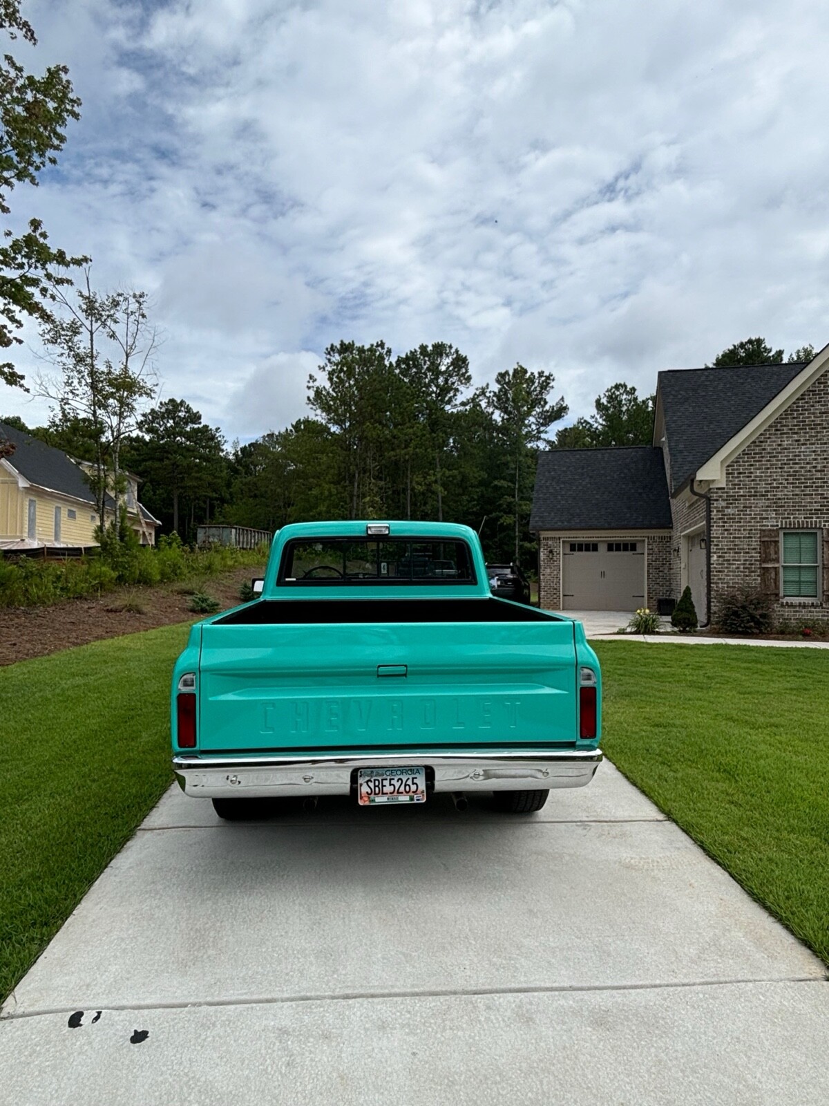 New paint, new BFG radial TA tires with Rally wheels, flowmaster exhaust, 350 engine with mild cam(sounds great), 350 3 speed transmission, tons of new parts. New brake and fuel system. Nice daily driver! Super nice truck that turns a lot of heads. Runs great. Tons of new parts. Factory short bed that was converted to Chevrolet from GMC.