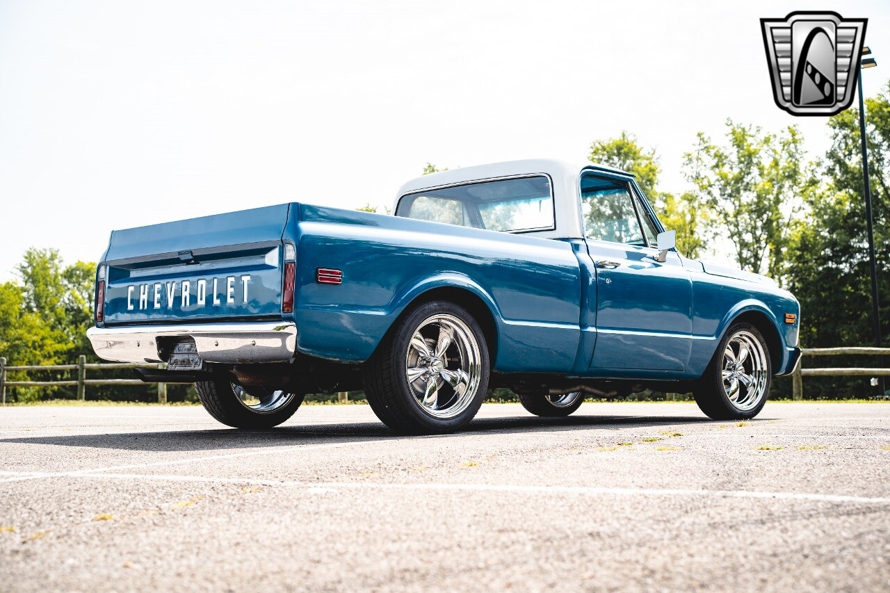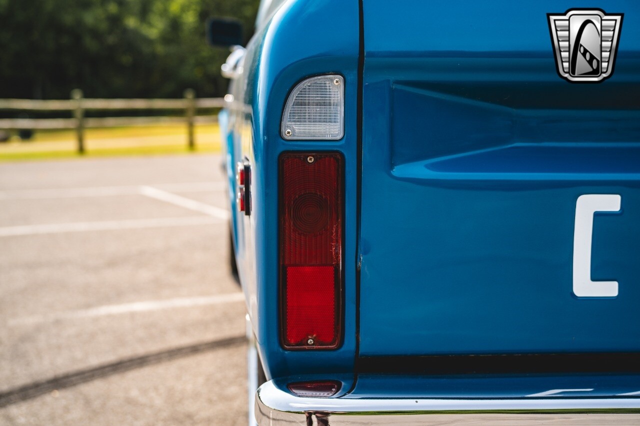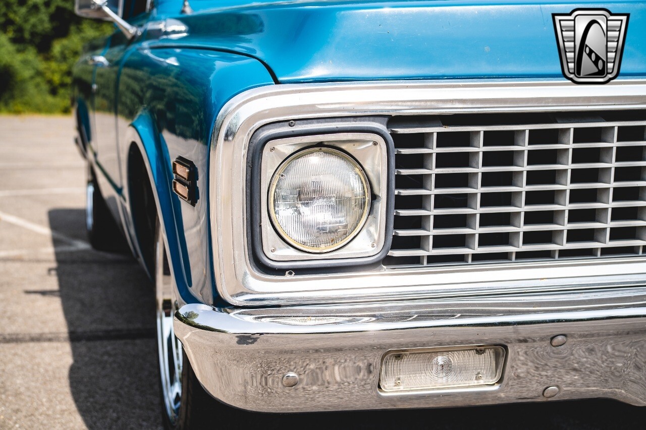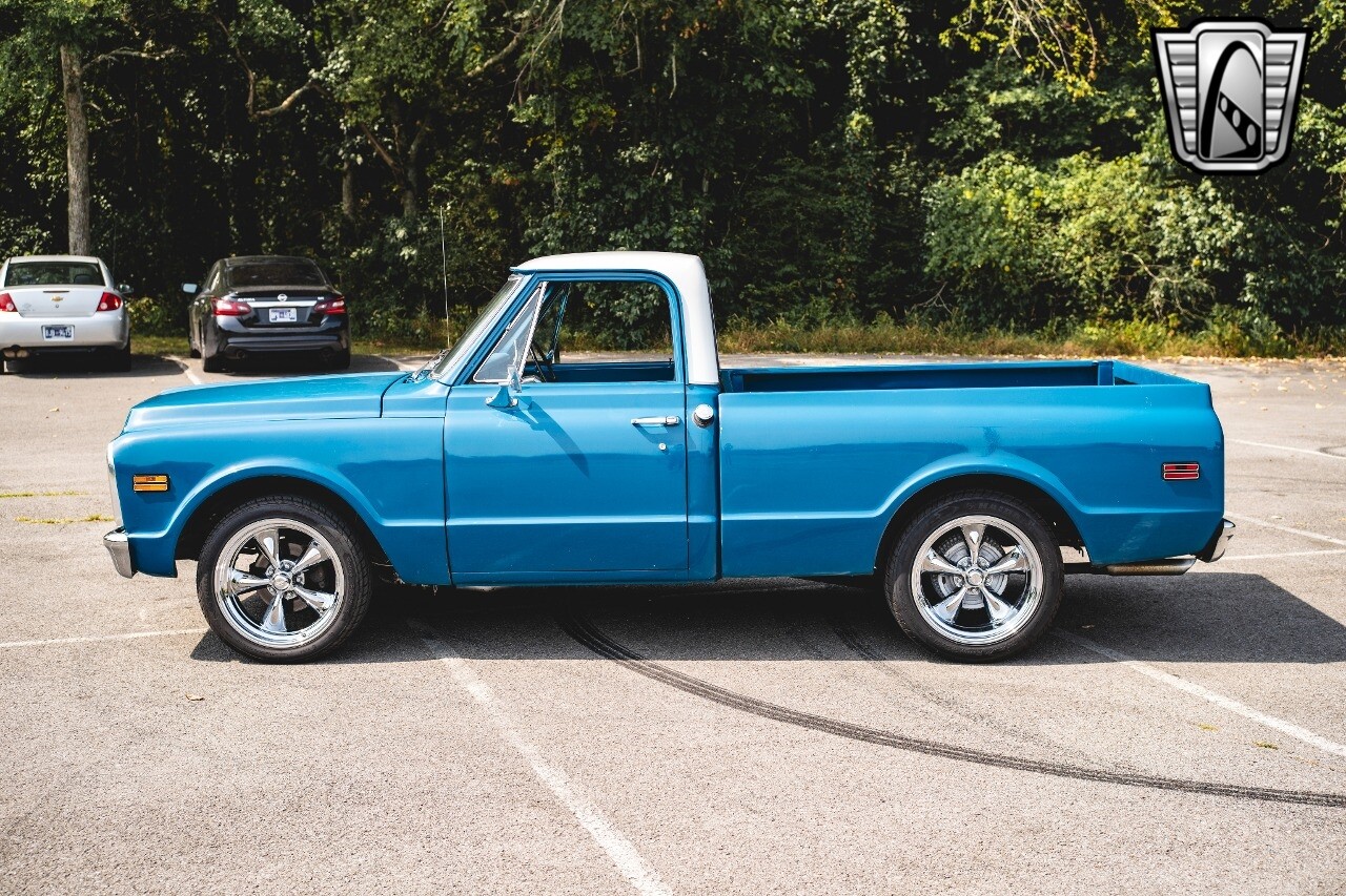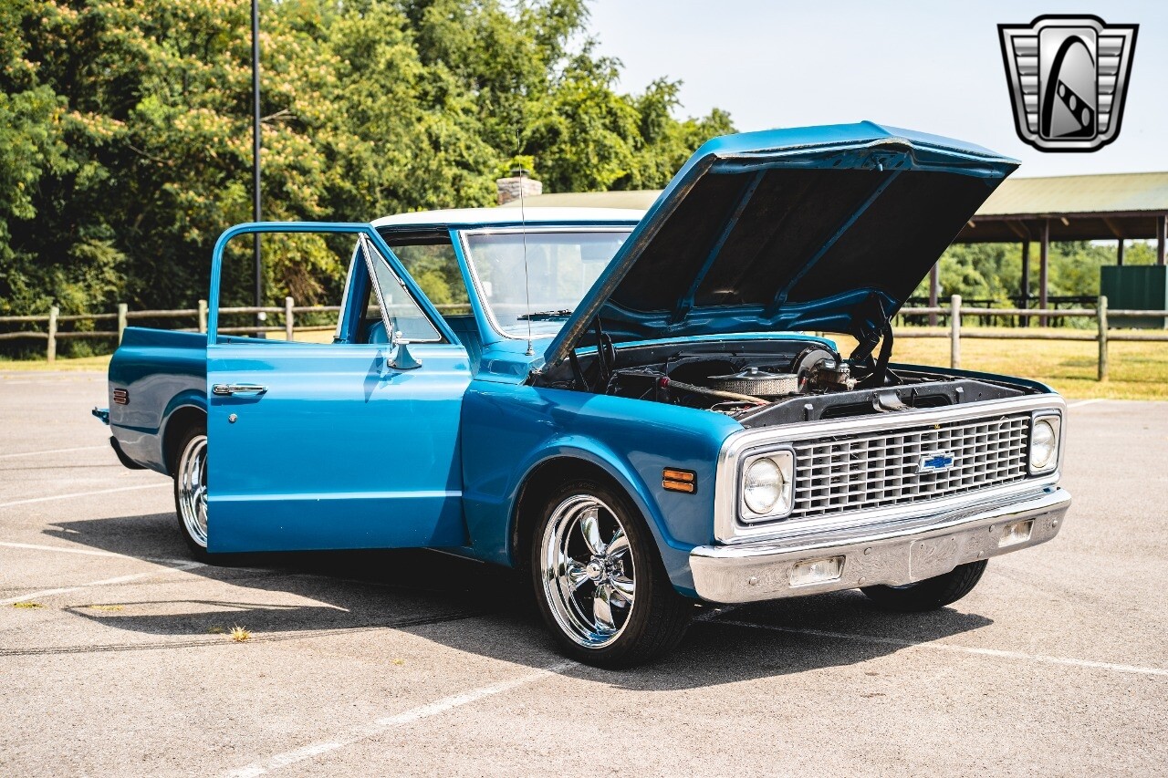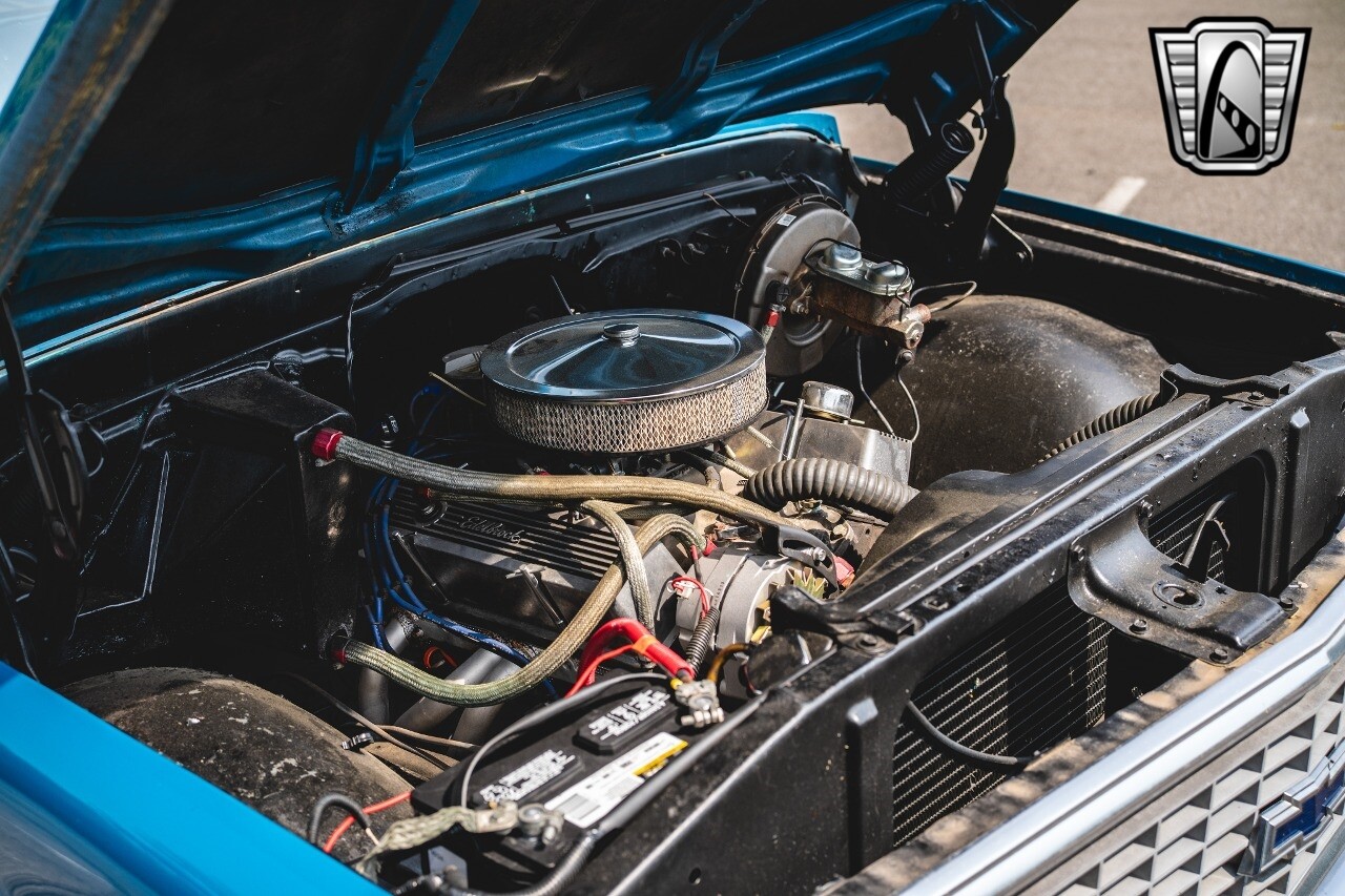 Introducing a classic icon of American automotive history: the 1972 Chevrolet C10. With its striking blue exterior, this vintage pickup truck exudes timeless appeal and is sure to turn heads wherever it goes. Complementing the exterior, the blue interior offers a cohesive and stylish look that stands out.