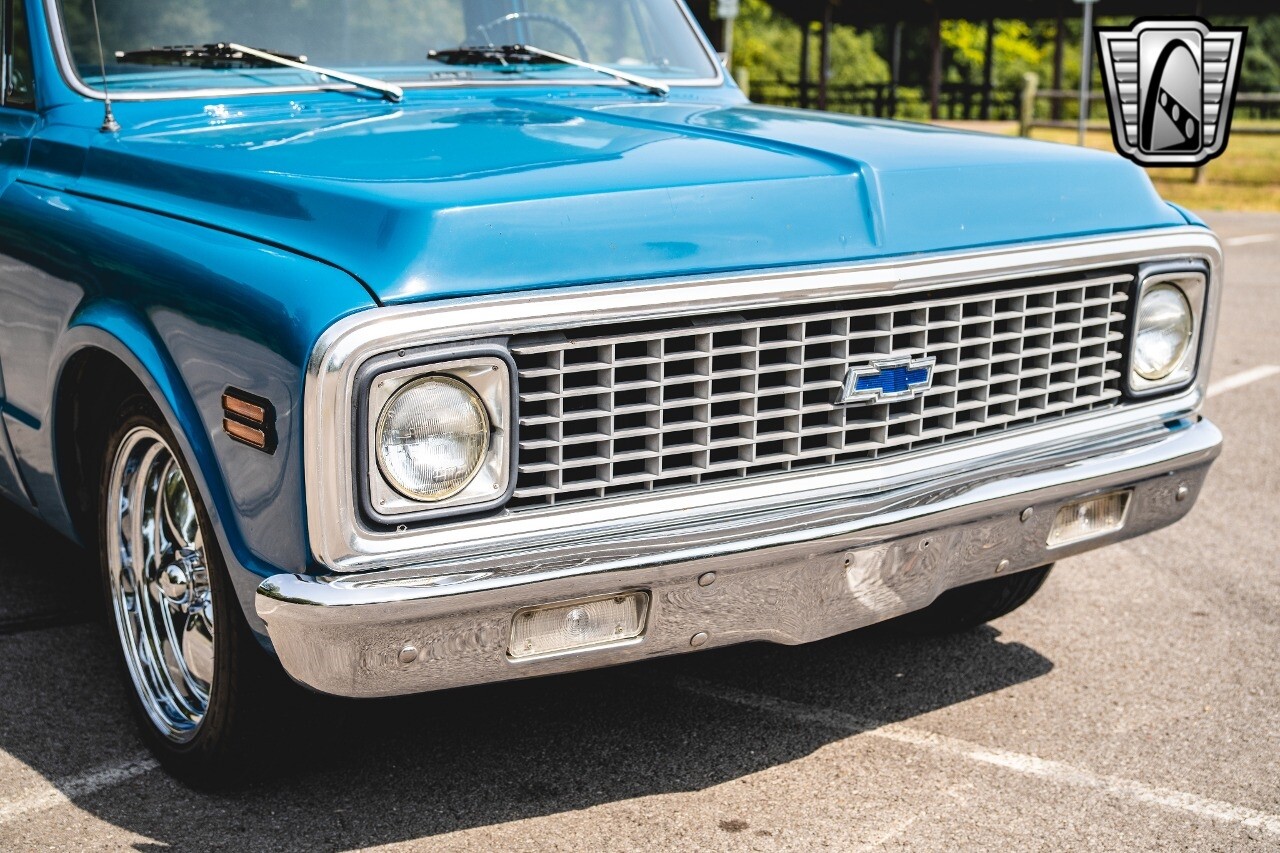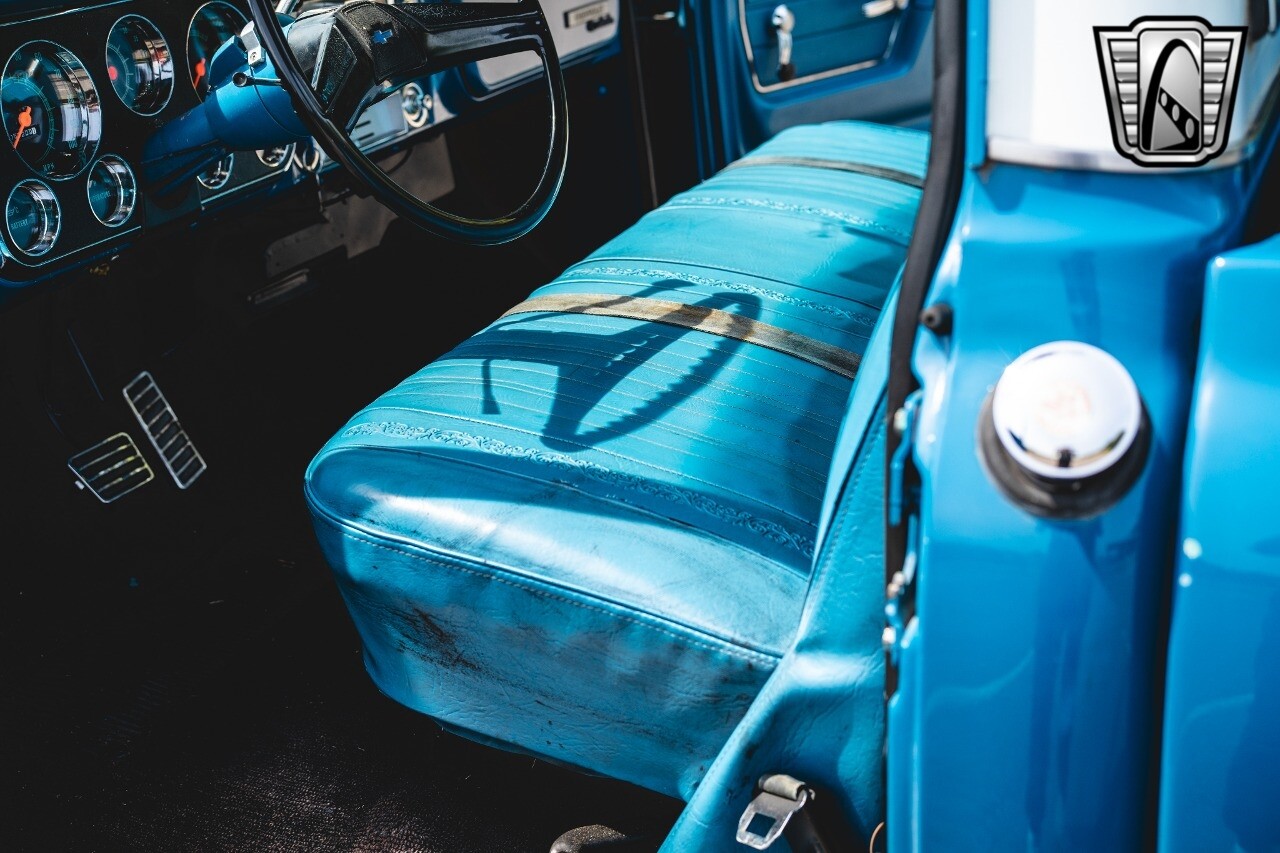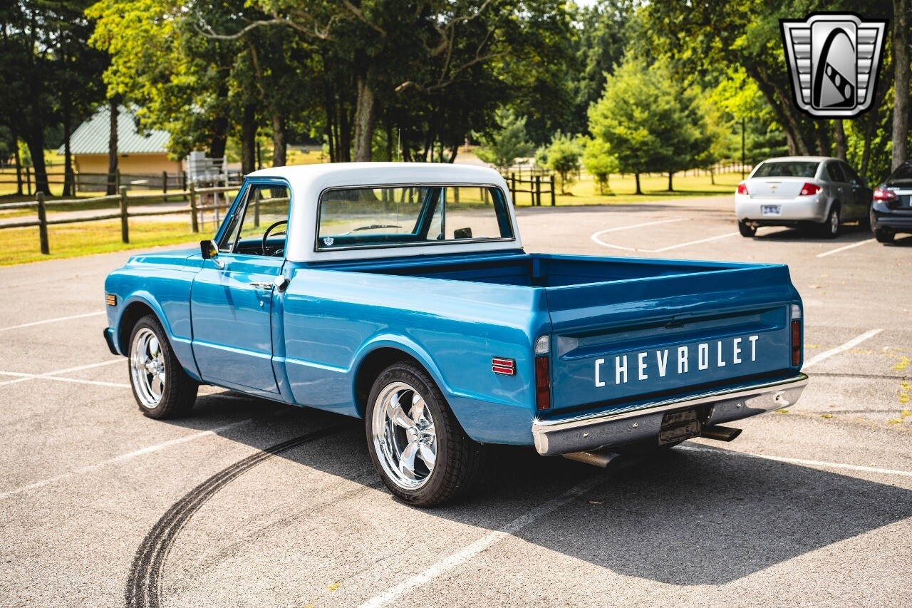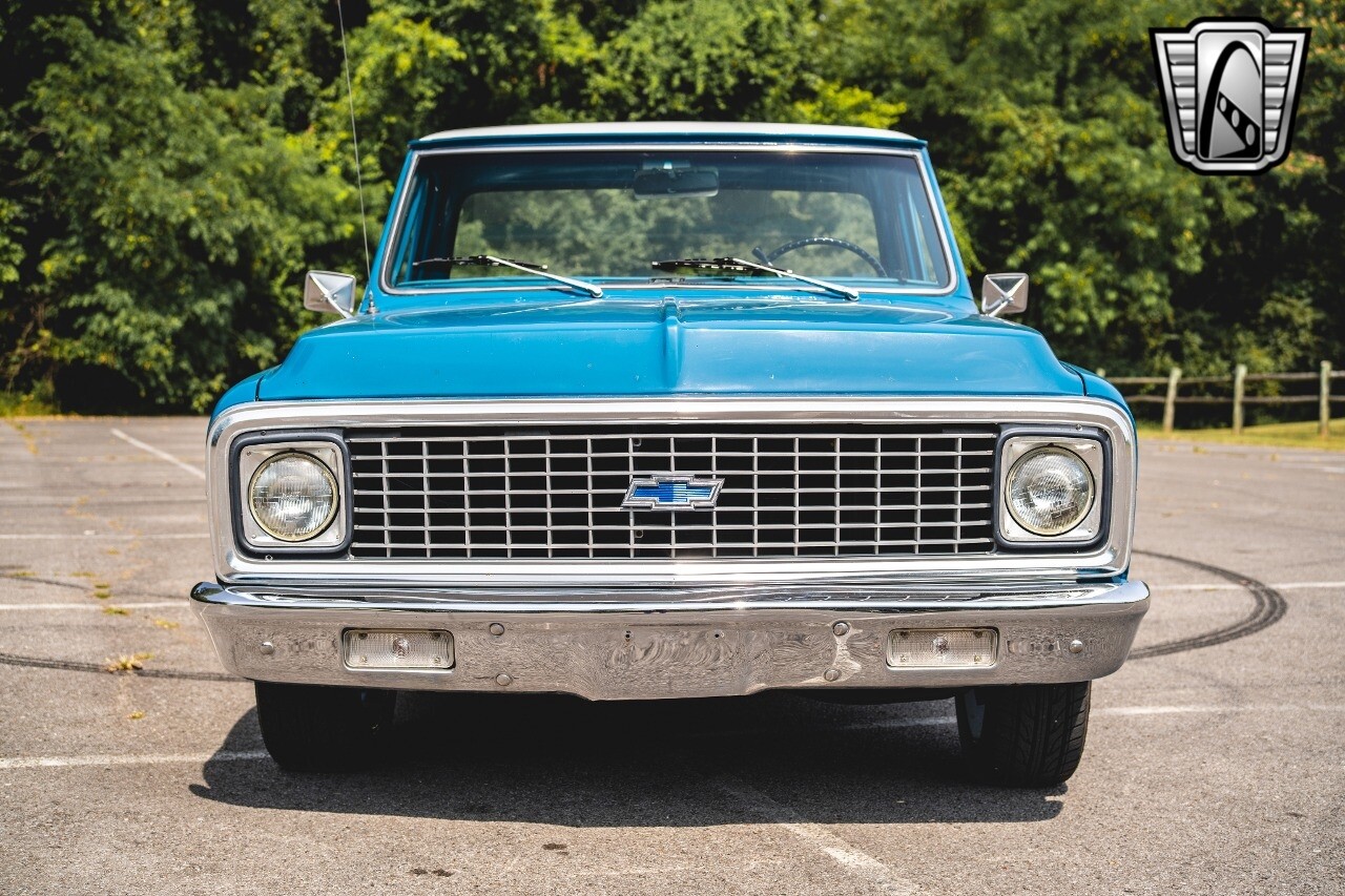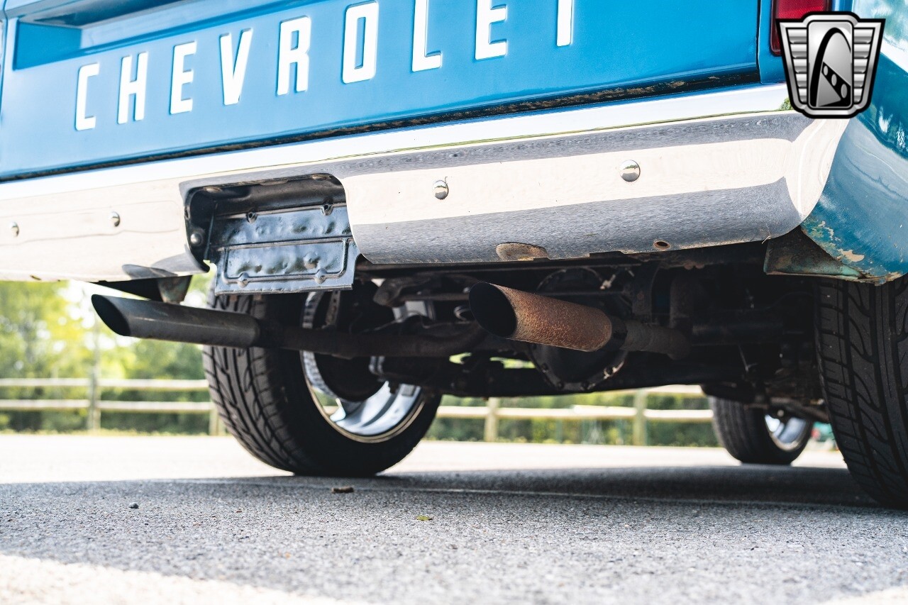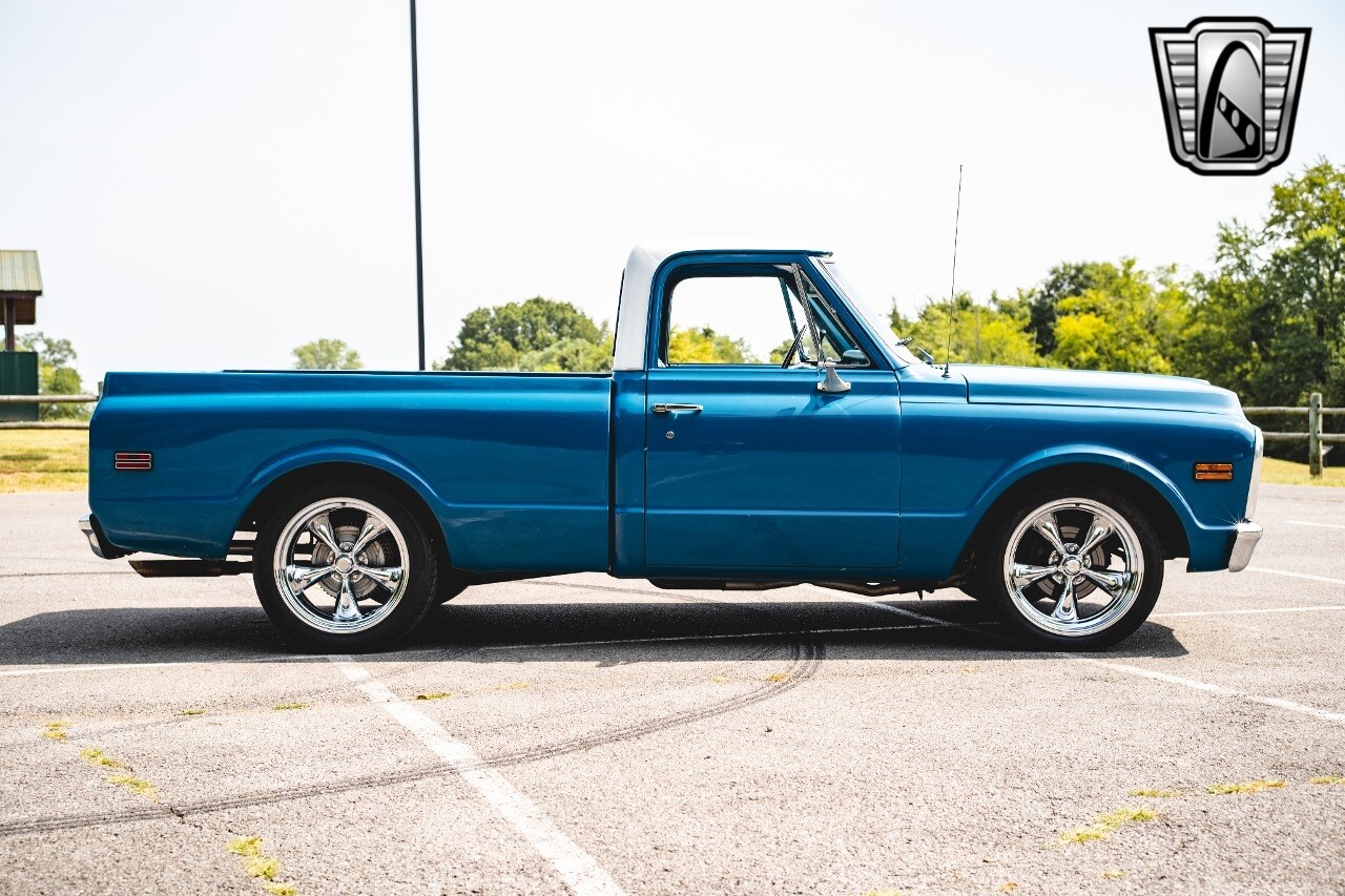 Introducing a classic icon of American automotive history: the 1972 Chevrolet C10. With its striking blue exterior, this vintage pickup truck exudes timeless appeal and is sure to turn heads wherever it goes. Complementing the exterior, the blue interior offers a cohesive and stylish look that stands out.