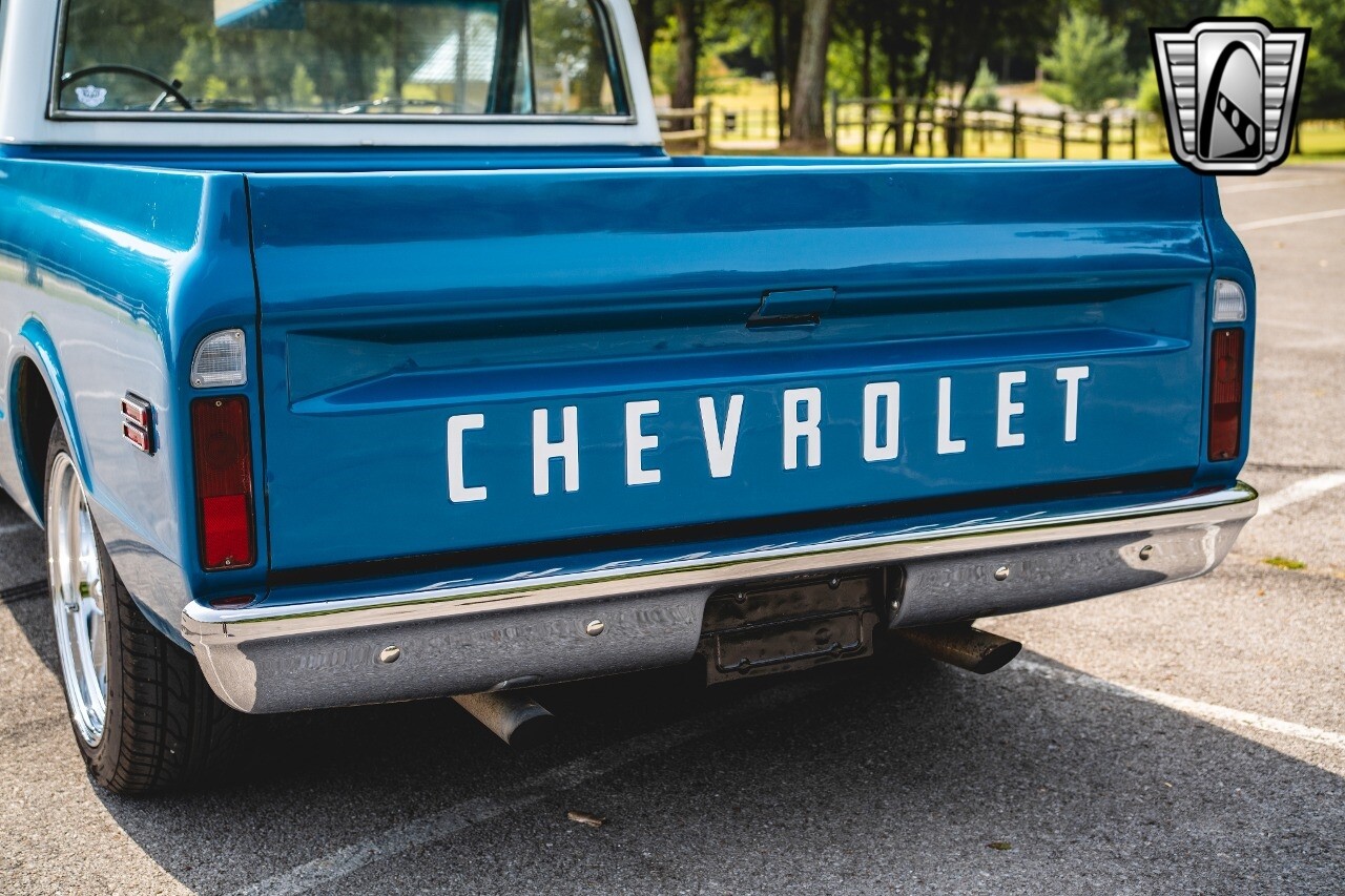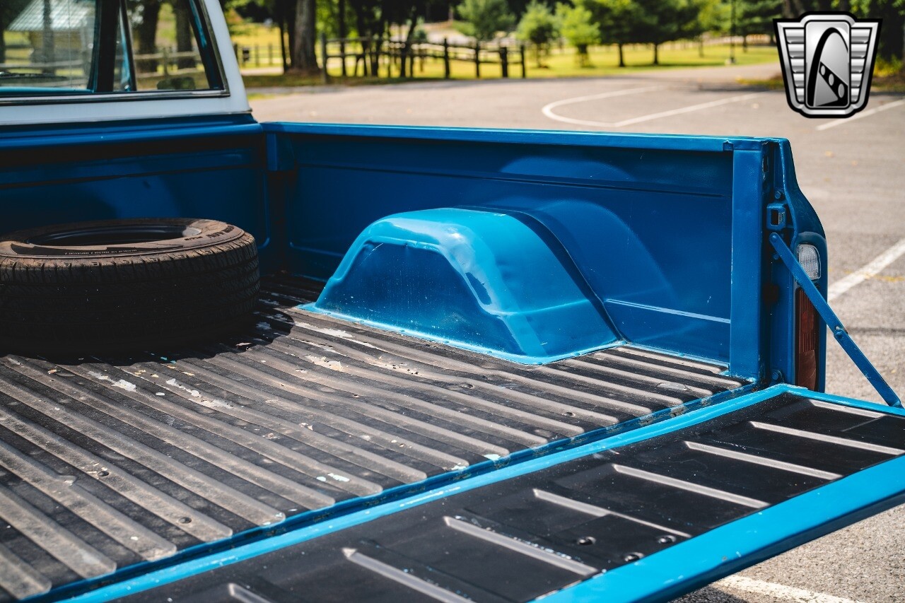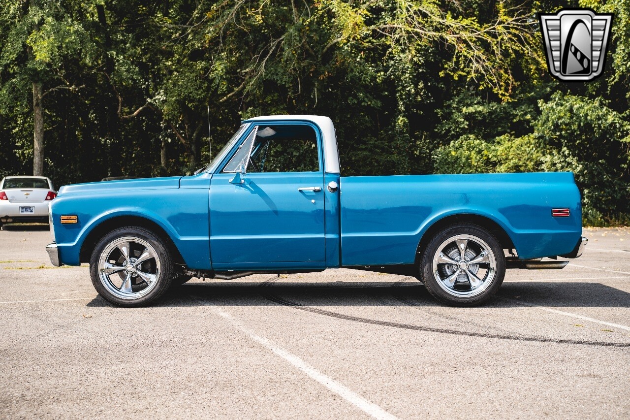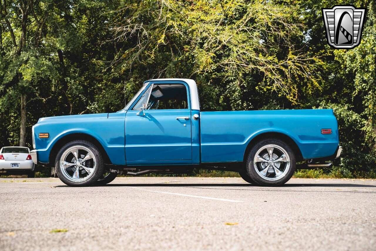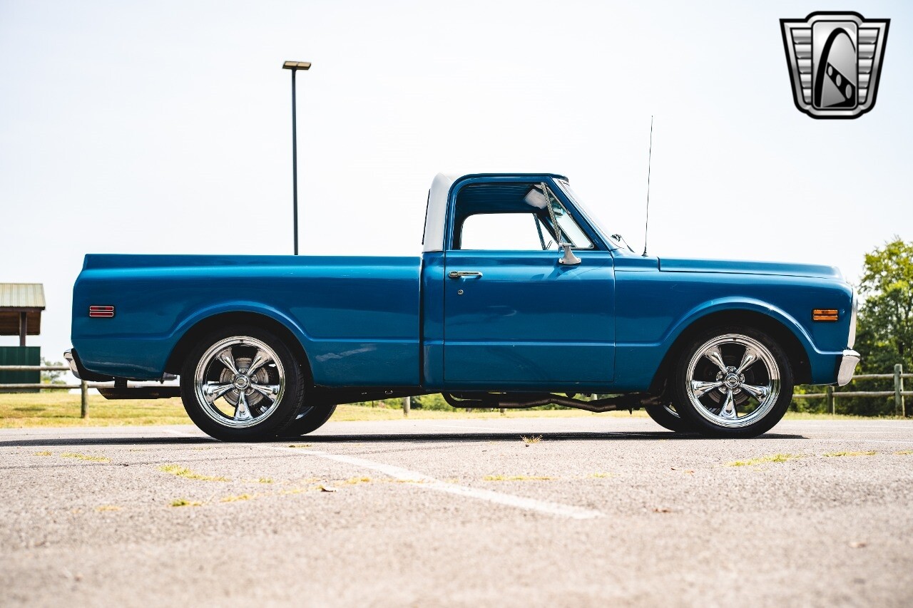 Introducing a classic icon of American automotive history: the 1972 Chevrolet C10. With its striking blue exterior, this vintage pickup truck exudes timeless appeal and is sure to turn heads wherever it goes. Complementing the exterior, the blue interior offers a cohesive and stylish look that stands out.