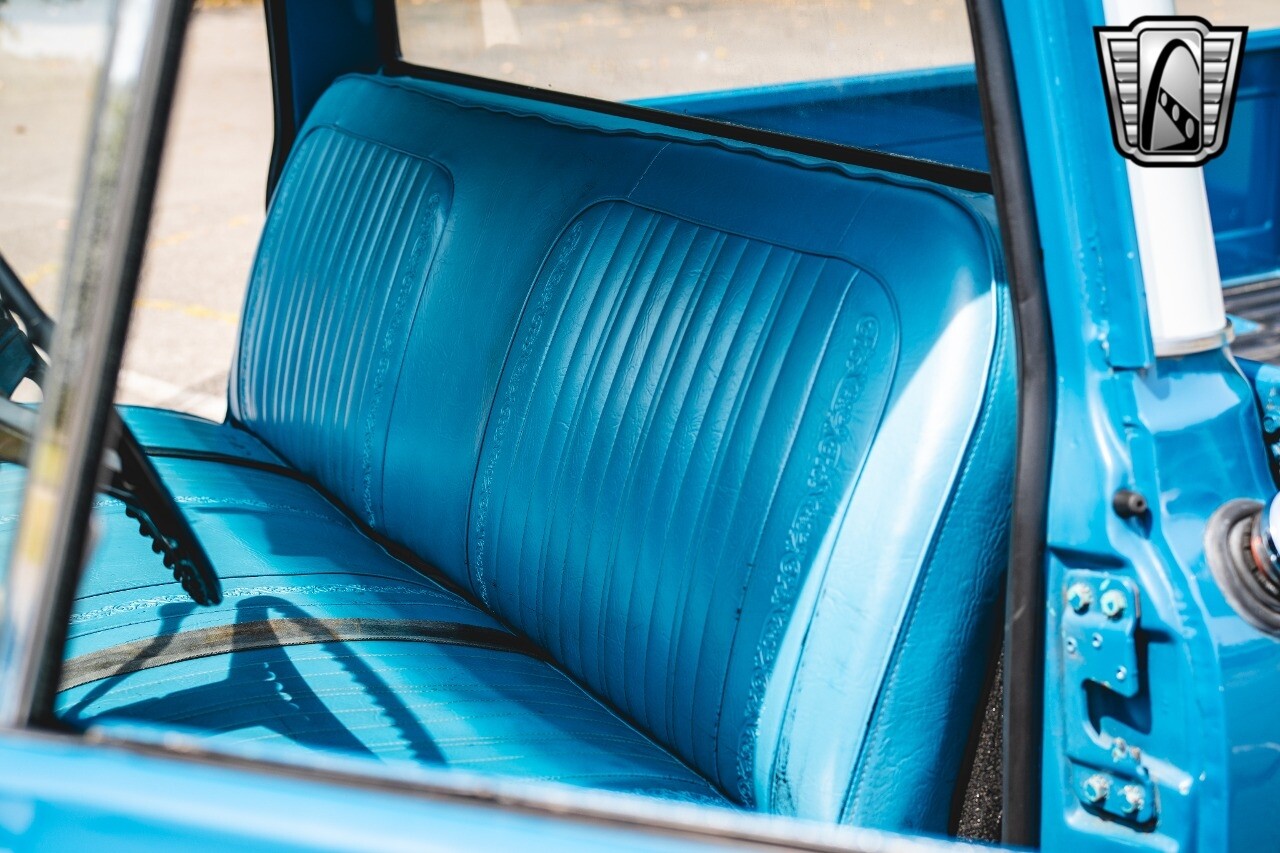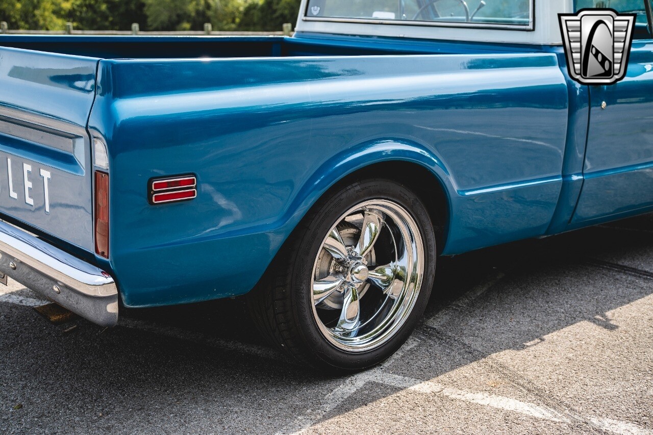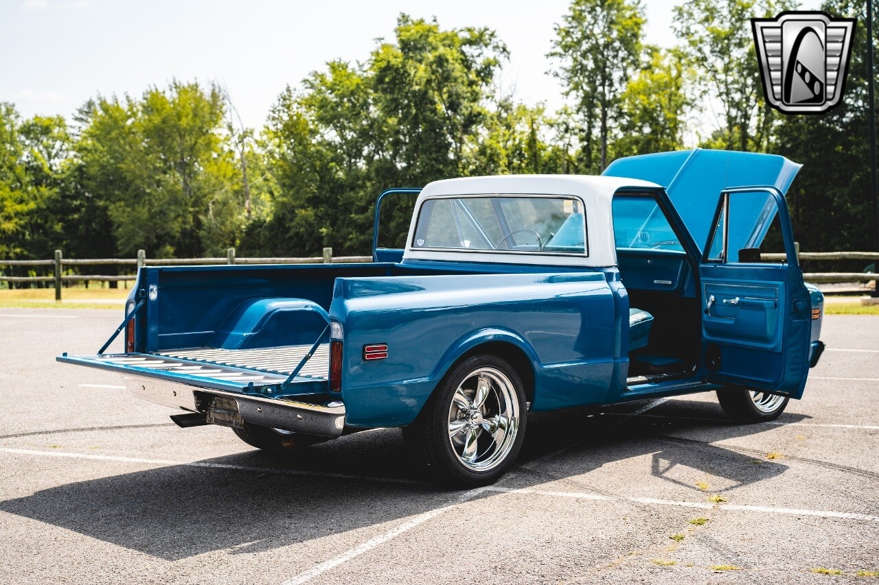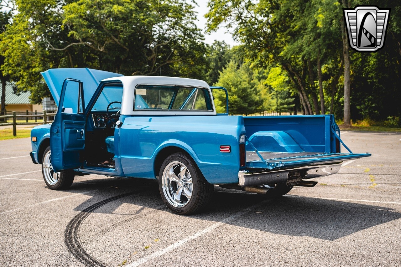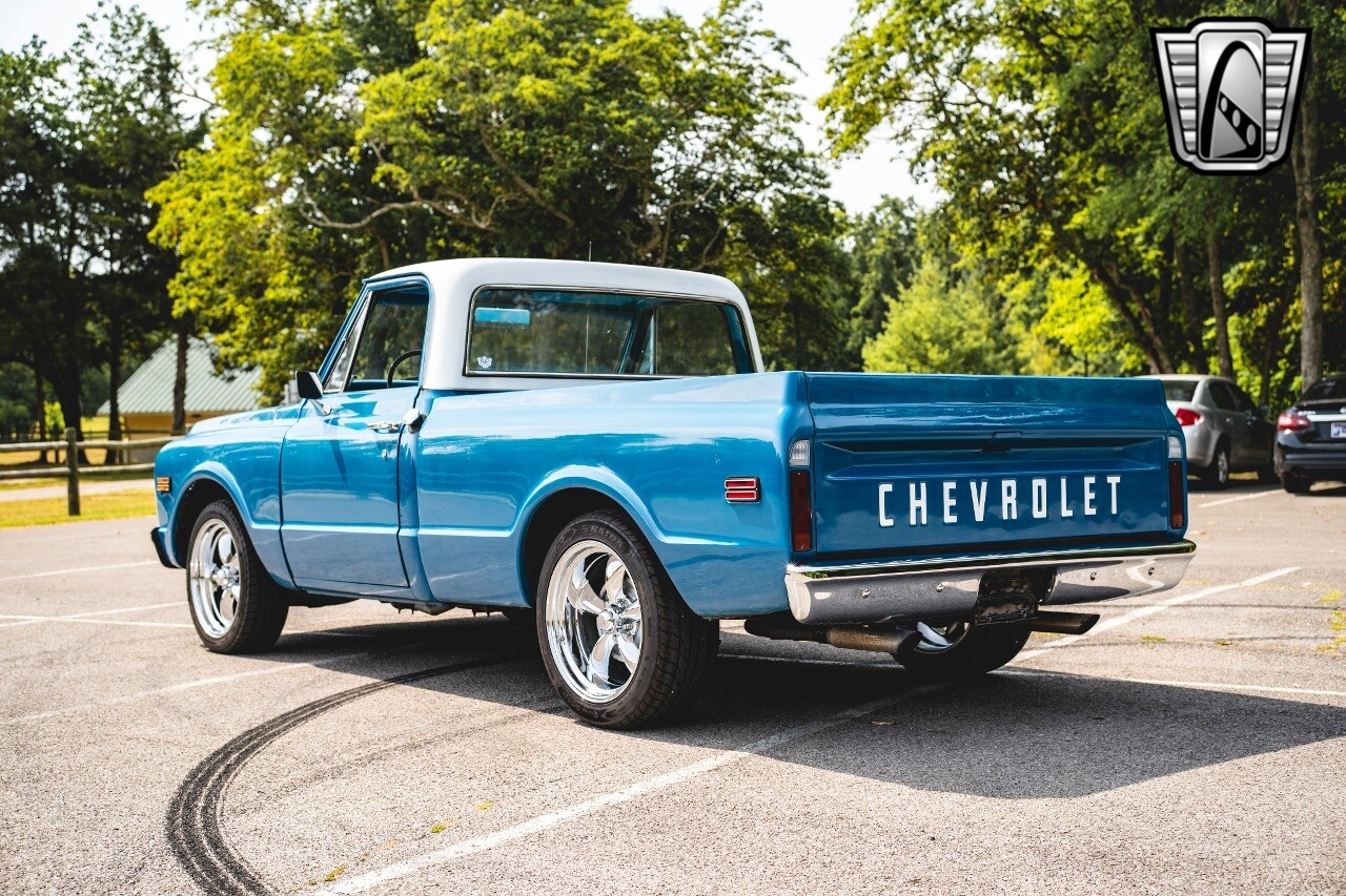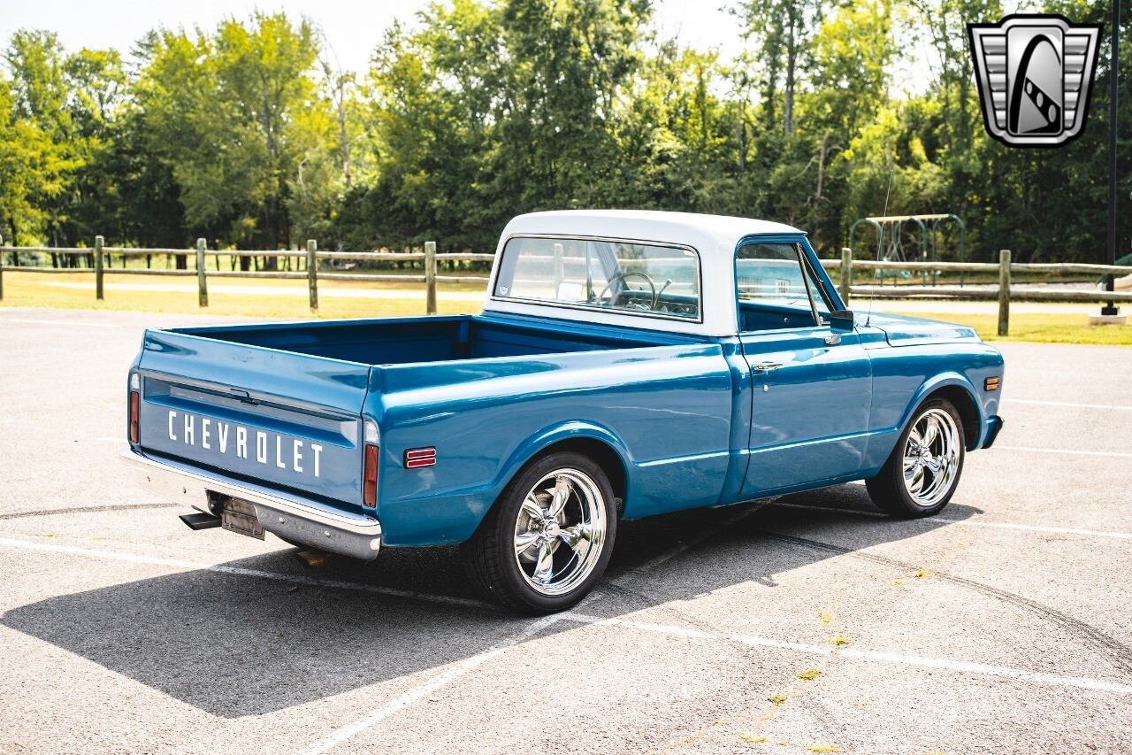 Introducing a classic icon of American automotive history: the 1972 Chevrolet C10. With its striking blue exterior, this vintage pickup truck exudes timeless appeal and is sure to turn heads wherever it goes. Complementing the exterior, the blue interior offers a cohesive and stylish look that stands out.