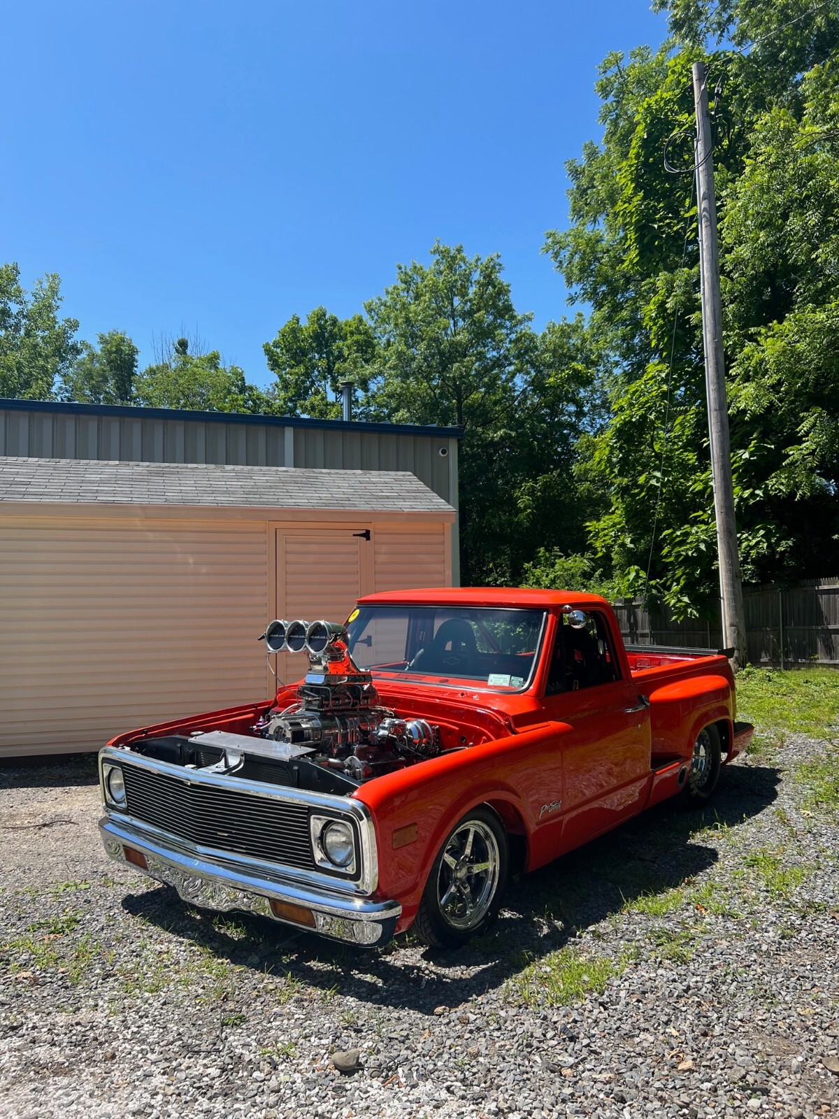1971 c10 pro street truck is turn key drive anywhere. Spared no expense building truck well over 100,000.00 dollars plus in build. Big als blown383 stroker engine with 871 BDS bower. Complete QA1 frt suspension Willwood brake system complete back half of truck done by C&F race cars over 55,000 thousand invested in rear of truck alone. Transmission is turbo 400 reverse valve body with all billet internals full nos system is installed but wiring not finished. Full autometer custom dash Custom seats Full rollcage wrapped in carbon fiber AND THE LIST GOES ON!!.PRICED TO SELL MOVING CANT TAKE TRUCK THIS IS A STEAL FOR SOMEONE THAT WANTS A FINISHED SHOW TRUCK THAT DOES NOT HAVE FUNDS TO BIULD ONE