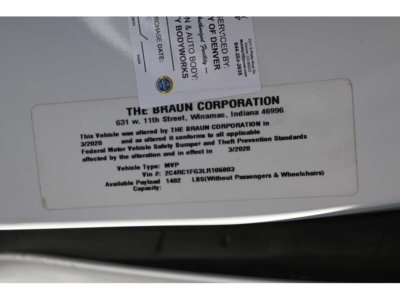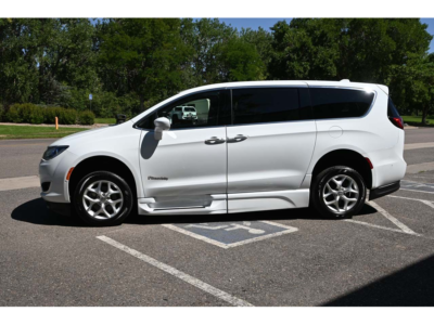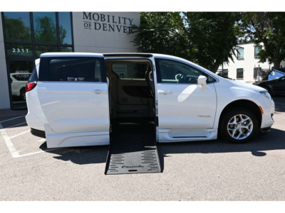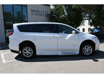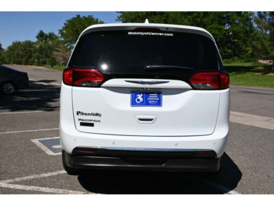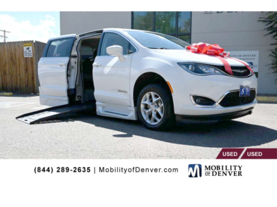 Door Opening Height: 56.5" and width: 32". 2020 Chrysler Pacifica Touring BraunAbility XT Power Side Entry van for sale. Up to 120-Month finance. Built by Braun, this XT is designed with a fully lowered floor, power fold-out ramp, removable front seats, fold down rear seat footrests, Q'Straint wheelchair straps and rails throughout, super quiet ride, with independent rear suspension. This disability equipped handicap wheelchair accessible ramp van commands attention and comes packed with Chrysler's newest safety features and includes: White exterior, gray cloth interior, Alloy Wheels, tires have 80% tread, 3-Zone Climate Control, front step flares, touch screen, AM/FM/CD/Satellite system with Bluetooth, AUX port, tons of USB ports, power windows, mirrors, and locks, advanced key-less remote, remote start, cruise control, traction control, stability control, 4-wheel ABS system, parking sensors, 360-Camera, back up camera, smooth and efficient 3.6L 6-cylinder Chrysler motor with front wheel drive, & much more. This vehicle is currently available for sale at Mobility of Denver, located at: 2311 S Platte River Drive, Denver CO 80223. We don't charge a Dealer Handling Fee and are now your mobility one-stop-shop. Just give us a call as we offer it all: sales, service, parts, and rentals. Open M-F 9am - 6pm. Sat by appt.303-351-7904