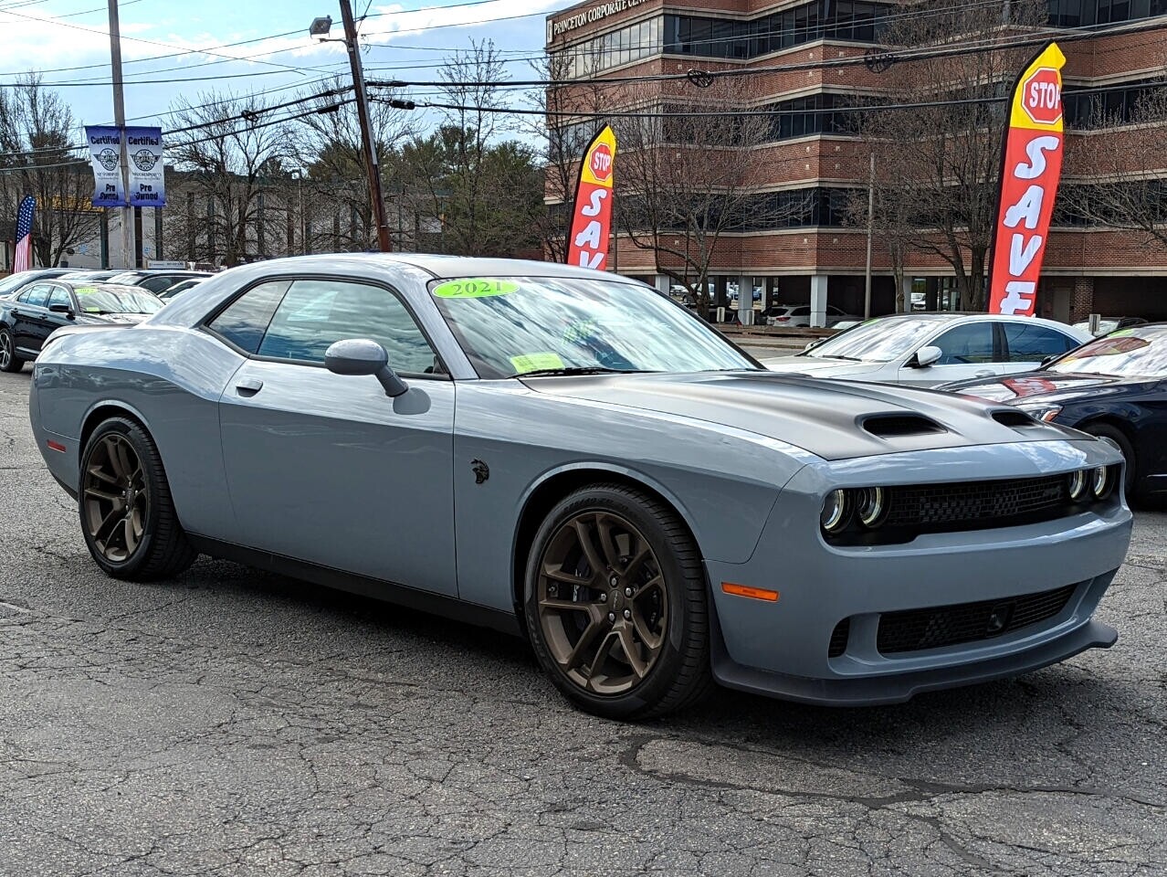 CARFAX One-Owner. Clean CARFAX. 2021 Dodge Challenger SRT Hellcat Smoke Show RWD 8-Speed Automatic V8 18 Speakers Premium Audio System, 2.62 Rear Axle Ratio, Auto High Beam Headlamp Control, Blind Spot & Cross Path Detection, Dark Engine Turn Interior Accents, Driver Convenience Group, harman/kardon Audio Group w/Subwoofer, harman/kardon GreenEdge Amp, Hellcat Logo Laguna Leather Seat, Hellcat Logo Nappa/Alcantara Seat, High-Intensity Discharge Headlamps, Laguna Leather Package, Painted Black Satin Graphics Package, Plus Package, Power Multi-Function Foldaway Mirrors, Power Tilt/Telescope Steering Column, Premium Laguna Door Trim Panel, Premium-Stitched Dash Panel, Quick Order Package 26R SRT Hellcat, Radio/Driver Seat/Mirrors Memory, Rain Sensitive Windshield Wipers, Suede Door Trim Panel w/Map Pocket, Surround Sound, Technology Group, Trunk Mounted Subwoofer, Ventilated Front Seats. Welcome to High-line Motor Group! Celebrating 30 years of automotive sales and service to Massachusetts and the USA! We have something for everyone! Whether the discerning enthusiast, or those of you, looking for a GREAT vehicle at a superb price. We take pride in our reputation of well maintained, serviced and specialty vehicles. With thousands of satisfied and repeat customers, you can rest assured, we will provide you with a relaxed and exceptional experience from the moment you contact us. BBB A+ rated and a proud supporter of our local communities. Give us a try, and experience the difference. ASK ABOUT OUR CERTIFIED VEHICLE PROGRAM. Do not hesitate to contact James at 1866-796-1838 to make your purchase arrangements! And remember we service every make and model of every vehicle that we sell. Visit us today and EXPERIENCE THE DIFFERENCE! Buy from The High Line Group with CONFIDENCE. We are a 30 year family owned and operated business! We offer very competitive financing rates and terms for all credit levels along with long term extended power-train warranties. The Highline Group makes every attempt to make sure our listings are factual and accurate. Please give us a call if you have a question about any of our vehicles. For more information photos and to view our complete inventory visit us @ to see more pictures of this vehicle or call us at866-796-1838 today to schedule your test drive.