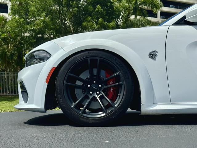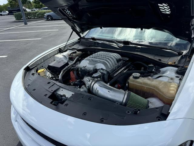 Lowered, Upgraded Exhaust and Diffuser, Power Door Locks, Air Conditioning, Dual Air Bags, Power Steering, Heated Seats, Ventilated Seats, Cruise Control, Side Air Bags, Daytime Running Lights, Power Seat, AM/FM/HD Radio, ParkSense Park Assist, RWD, Tilt & Telescoping Wheel, F&R Head Curtain Air Bags, Alarm System, Rear Spoiler, Hill Start Assist Control, Power Trunk Release, All Speed Traction Control, Blind-Spot Alert, Rollover Protection, Widebody Pkg, Keyless Entry, SiriusXM Satellite, Bi-HID Headlamps, Electronic Stability Control, Backup Camera, Premium Wheels 19'+, Power Windows, Automatic, 8-Spd w/AutoStick, Push Button Start, ABS (4-Wheel), V8, HEMI, Supercharged, 6.2 Liter, Bluetooth Wireless, Full Leather, Uconnect