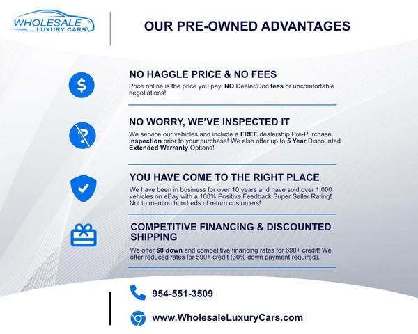 NO DEALER FEES! 30 DAY 500 MILE ENGINE / TRANSMISSION WARRANTY INCLUDED! Financing Available for all credit types with competitive rates $0 down to 20% down! Discounted Nationwide Shipping! This vehicle has a rebuilt title from previous damage that was fully repaired and is what we specialize in! We mainly sell on eBay so our customers can see our 100% positive feedback rating with over 1,000 vehicles sold! WholesaleLuxuryCars(dot)com . Discounted 3-5 year FULL coverage nationwide extended warranty options also available!