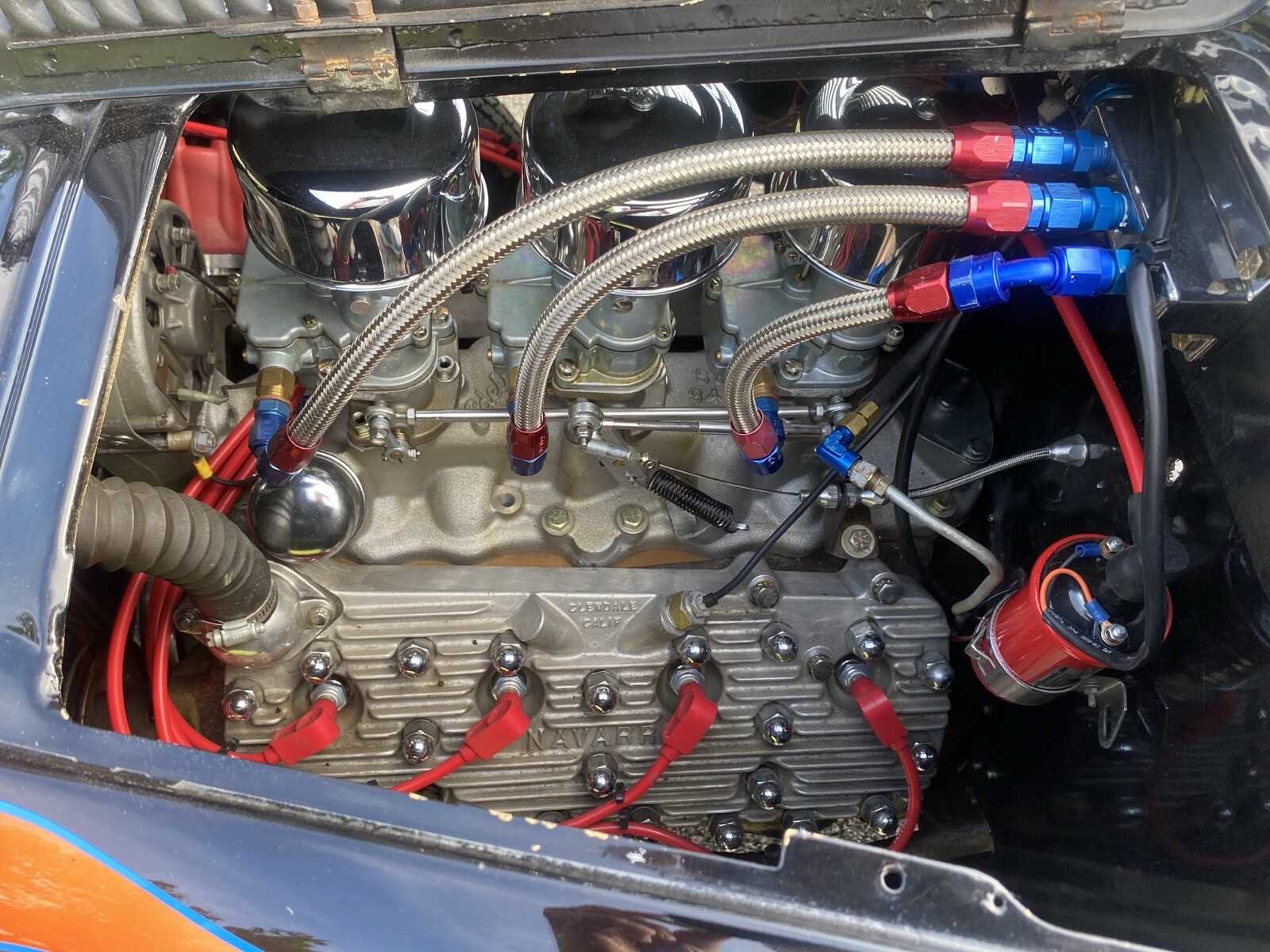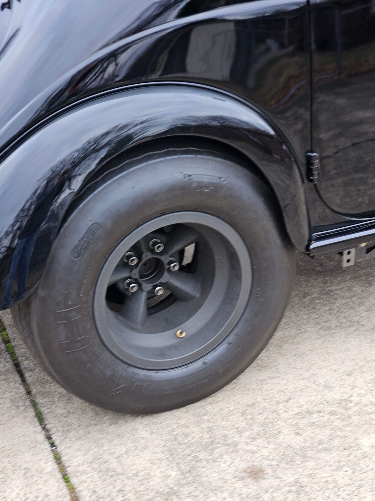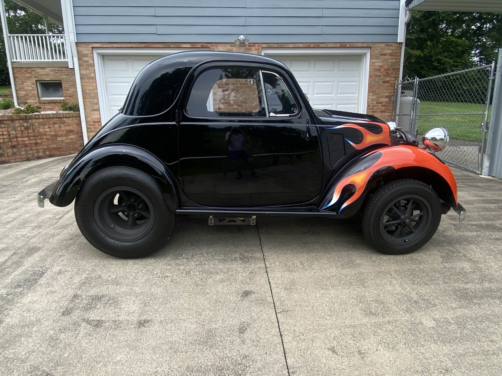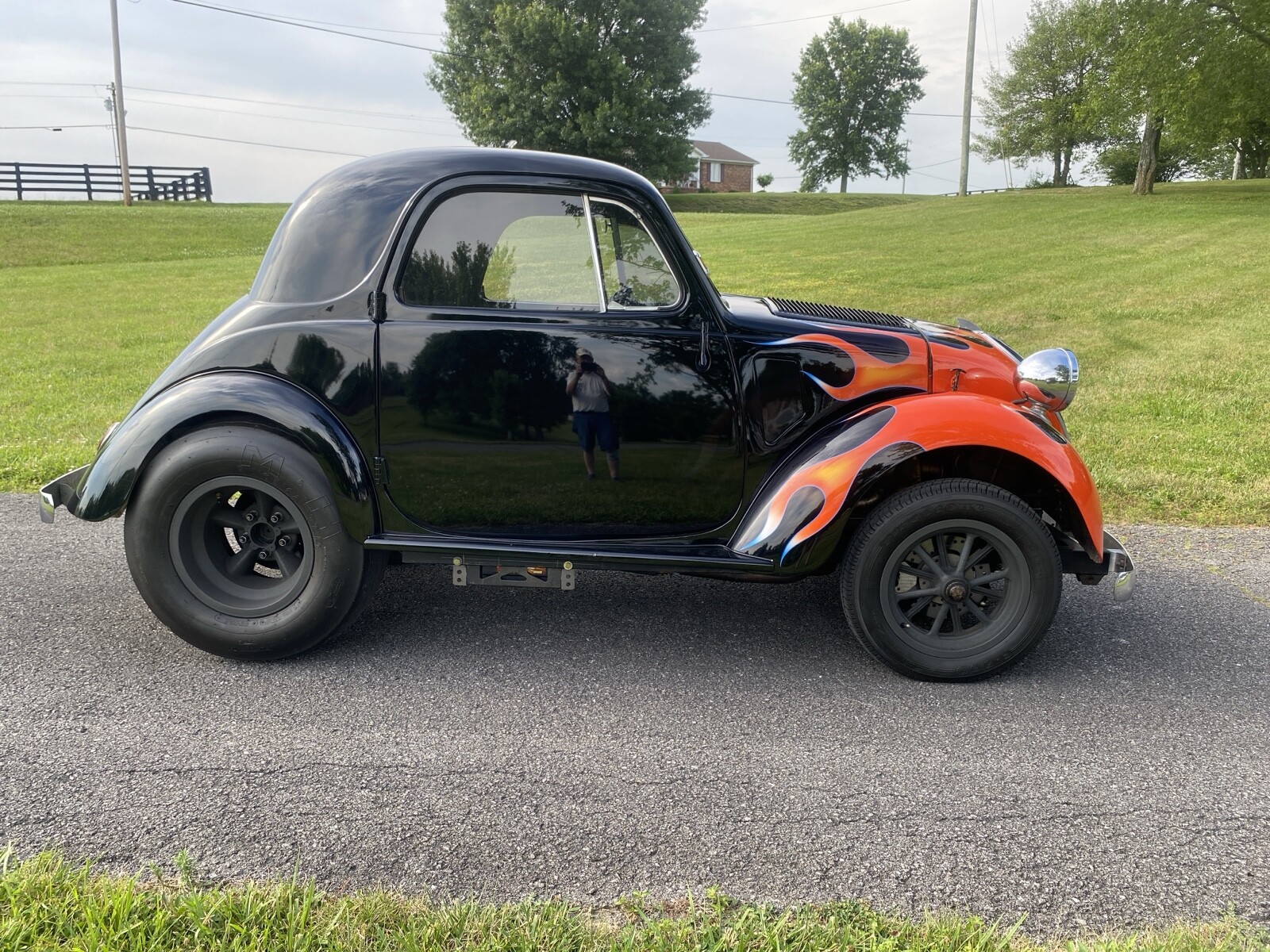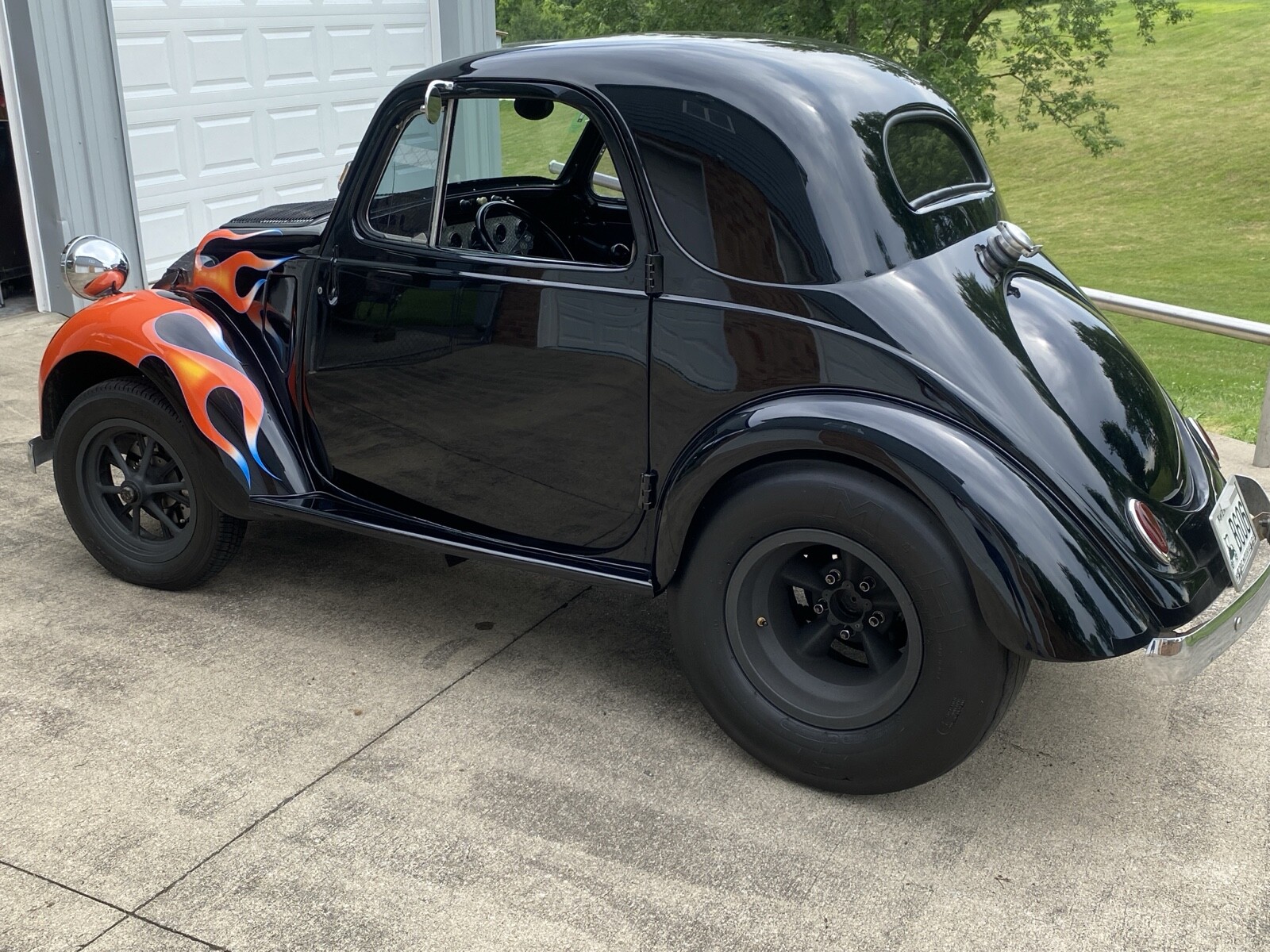 Vintage 1948 Fiat Topolino, restored as a Pro Street car. Car is ALL steel, no fiberglass body parts. Engine is a 1951 Ford flathead V-8 with Edelbrock tri-power intake and three 2 bbl carbs. New MSD ignition, including distributor, ignition box and wires. All electrical wiring is new. All gauges are Stewart Warner. Transmission is a Ford top loader 4 speed. Rear end is a Ford 9 inch with 3.25 gears and posi and Moser axles. All tires are new with less than 50 miles. Wheels are vintage American Racing magnesium. Car has beautiful black paint with professionally applied flames on front fenders. Car starts immediately, runs and drives perfectly. This is a real show quality car.