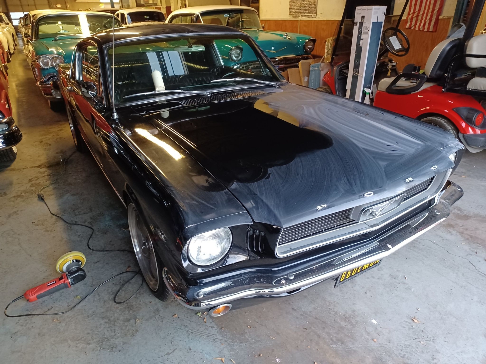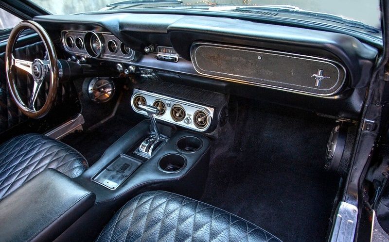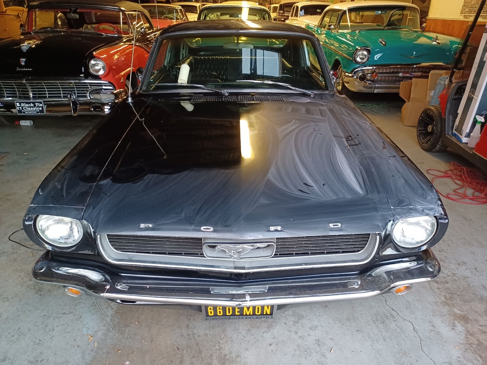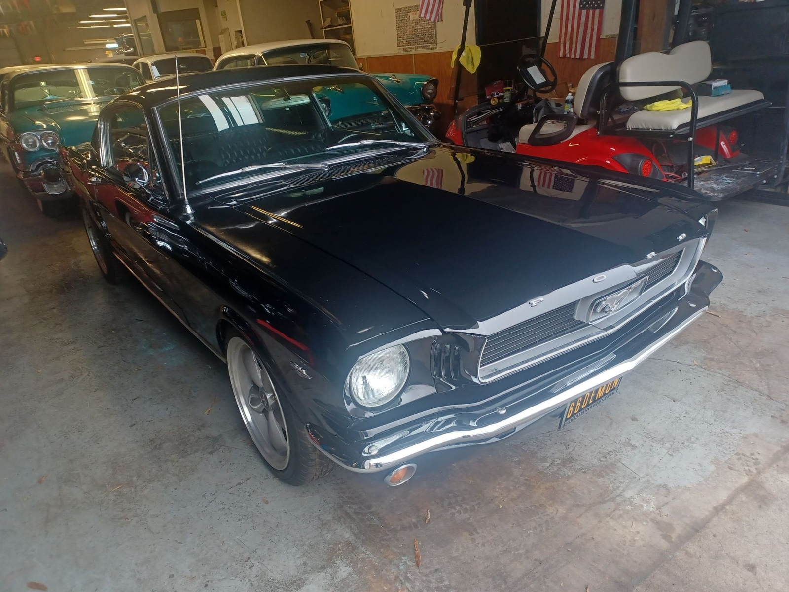 Just Visiting in from San Jose California. The Demon 1966 Ford Mustang Fastback C-Code that is finished in a color Scheme of Raven Black over a Custom black Diamond Tuffed interior, that's over the top!! Equipped with an 289 V8 engine, Automatic transmission, Factory Air Conditioning, Front-wheel disc brakes, Dual exhaust,, Holley four-barrel carburetor. fender-mounted antenna, chrome trim, three-spoke custom steering wheel, Mustang design floor mats, and Mustang five-spoke alloy wheels. Amenities include forward-folding front bucket seats, and a center console with cup holders, Sun visors, lap belts, Ford push button radio, with custom Speakers, vent windows, dashboard lighter with an ashtray, and side vent louvers. The number decodes this original California car was rolled off the assembly line in San Jose. An iconic American classic that is mechanically sound.