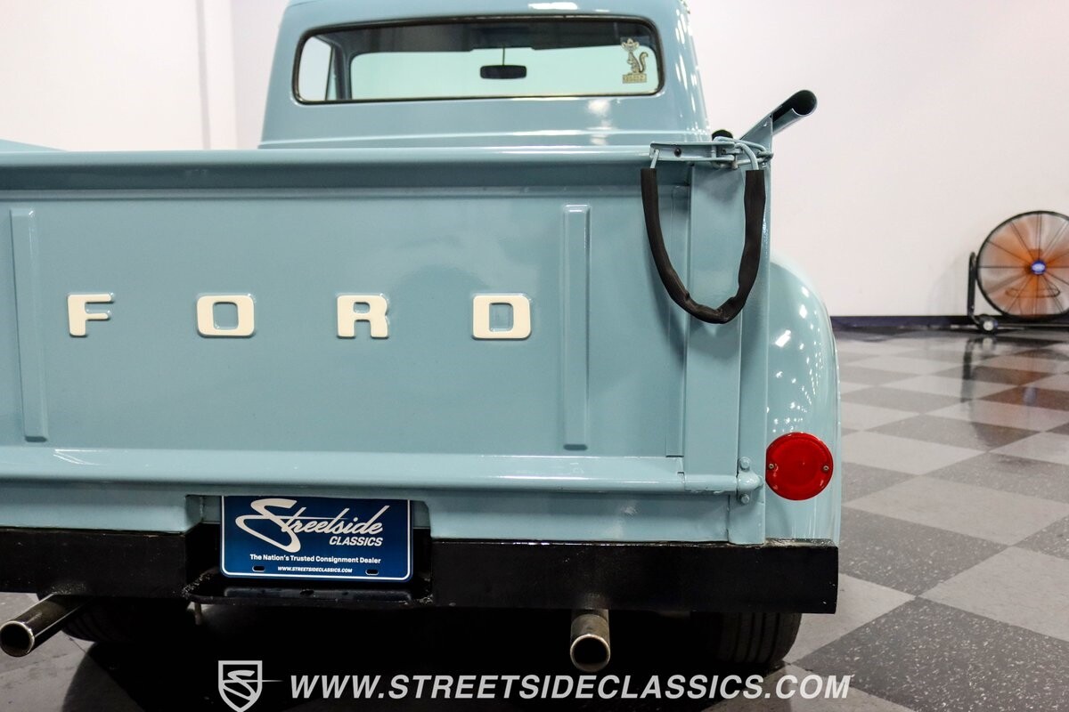 Mechanically, this truck has been restored to keep that reliable 239 Flathead V8 humming smoothly. It's mated to the Ford-O-Matic transmission for easy cruising, and the drum brakes at all four corners provide ample stopping power. The leaf springs and shocks at both ends ensure a comfortable ride, whether you're hauling a load in the beautifully refinished wood bed or just enjoying a Sunday drive.