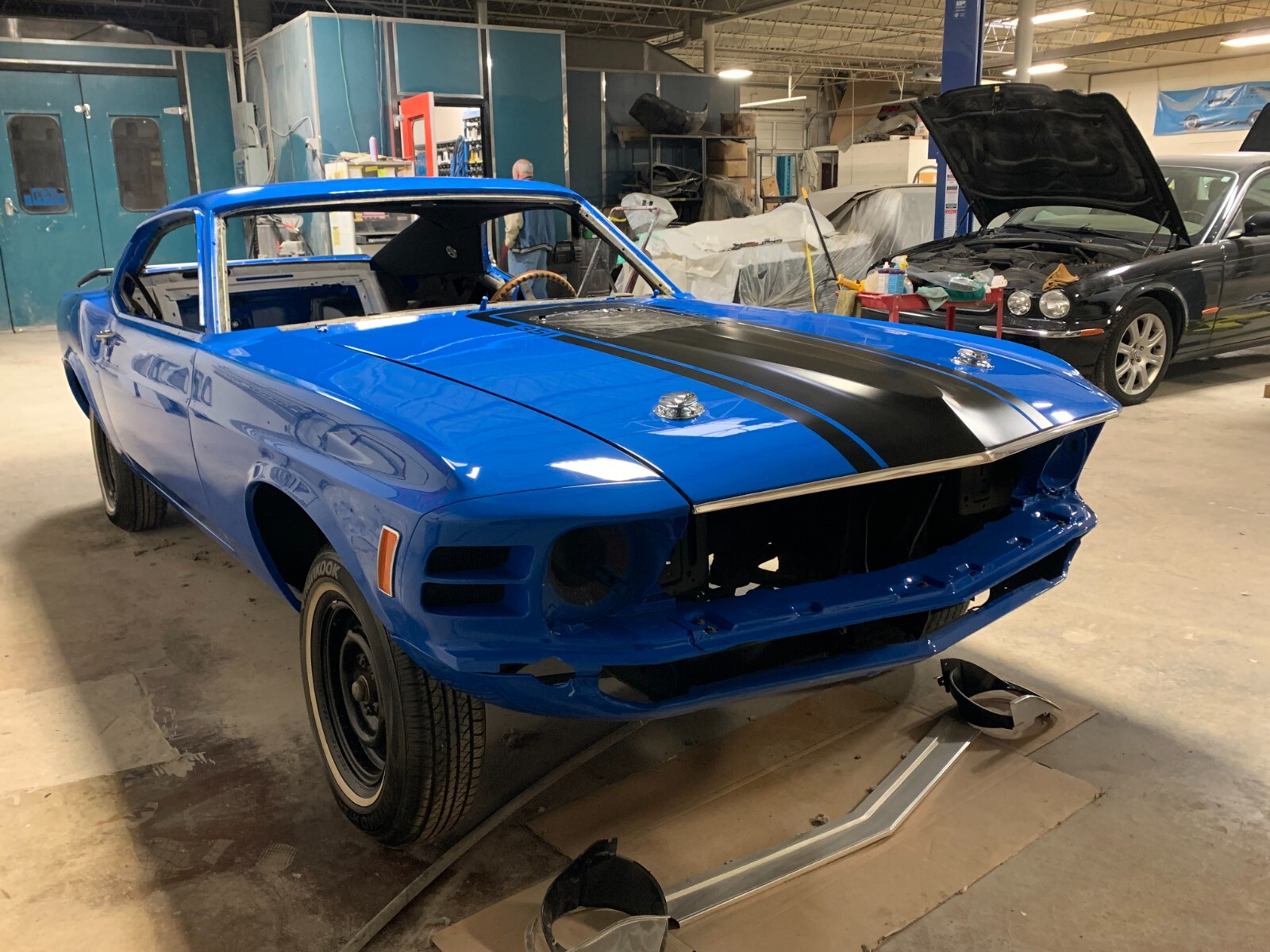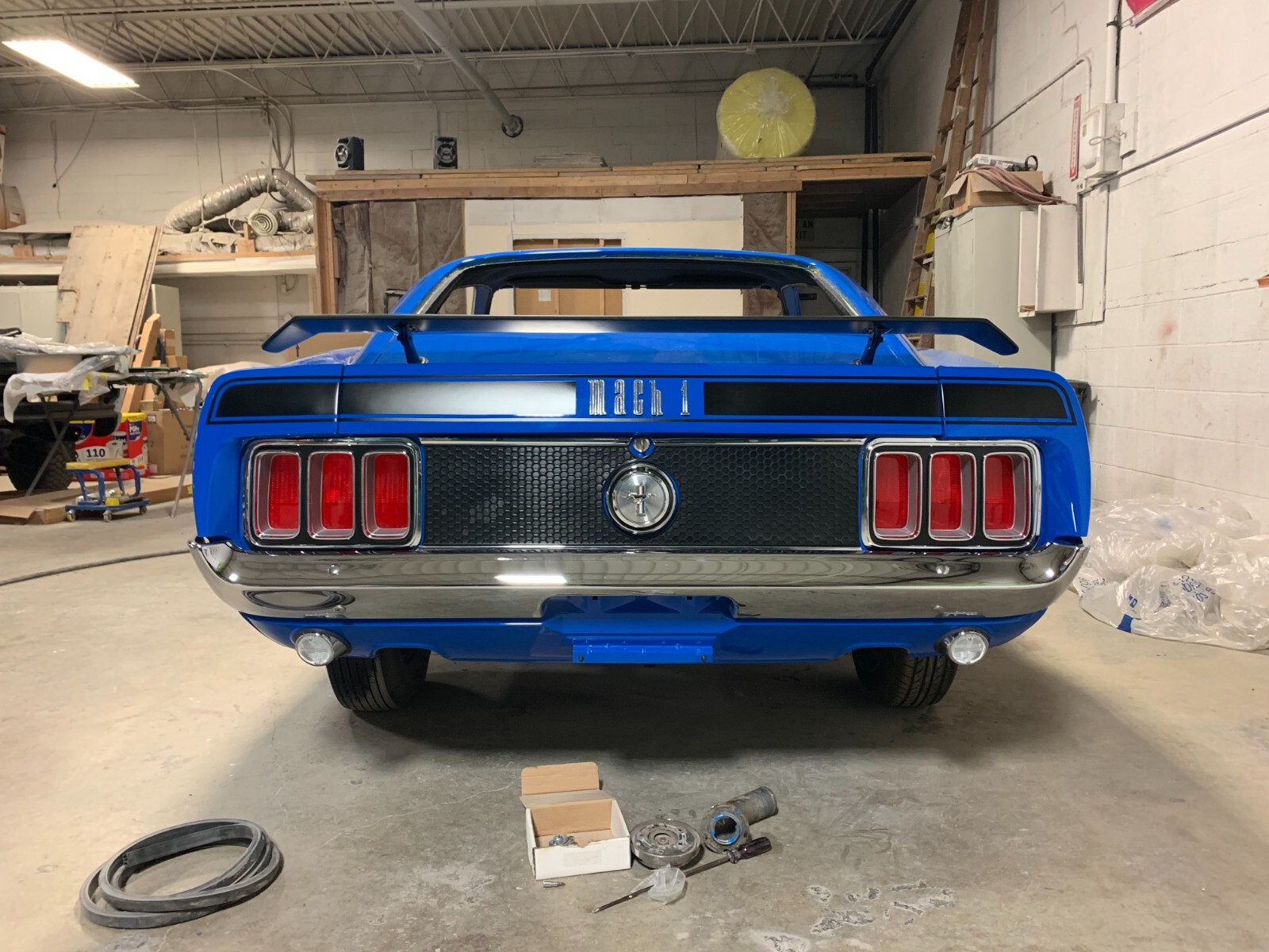 This is an incredible opportunity for the right person to own an iconic class muscle car. I have remarried and my priorities have now changed. I do not have the time to finish this project. Here's what you will be buying.The car disabled, the body, and structure of this car were completely rebuilt.The radiator core panel, front fenders, rear quarter panels, trunk panel, floor pans (both front and back) were all replaced and professionally installed. The rear window, Windshield, rear quarter window were all replaced. (Brand New rear window louvers and trunk spoiler)Then the entire interior including the inside roof were Lizard skin sprayed with sound deadening and heat insulated. Then the entire car was painted with a modern Grabber Blue and multiple coats of clear coat. All new rubber gaskets are in place but will need to be professionally installed once the car is put back together. The engine bay was sand blasted, all rust removed and repaired and repainted in Ford black (non-gloss) engine bay paint. Chrome bumpers both front and back are brand new. All of the marker lights, rear back up lights, and headlights are all brand new. NOS parts were used whenever possible but there are some reproduction parts on the car.Now the bad.. The engine and transmission were pulled from the car during the repairs. It is 351 windsor and the engine was running when it was pulled out. It is not numbers matching. The transmission is an FMX and believed to be original. Currently the steering tie-rods are not connected due to the body work. The wheels and tires are 14" and are just to move the car around. She will need new rims and tires. There is no exhaust as it was not worth saving.The majority of the interior is in good shape. The dash pad is long gone as it was beyond repair, The gauge pod, clock, glove box and automatic gear-shifter and console are ready to go back in. The headliner is brand new and professionally installed. You will also need new carpeting. I have explained the car the best I could. Due to a house fire there are not a lot of receipts left. Additionally, the body and paint work were completed in 2020 right before that shop went out of business.There is a lot of work ahead but what a great opportunity. The buyer will need to pay an immediate $3000 (Non-refundable) at the conclusion of the auction. The buyer is also responsible for picking up the car and parts and delivery. The car still has an amount owed to my credit union. (North Coast Credit union) Once the full price has been paid, the title will be released. Car is "AS IS"Good luck and happy bidding!