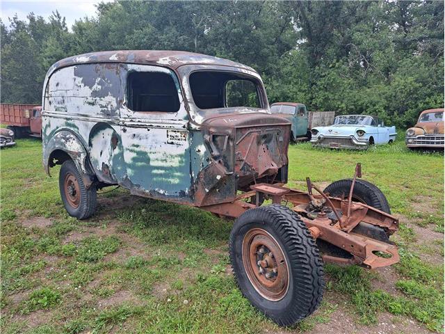 1941 Ford Sedan Delivery. No steering wheel, front clip, motor or transmission. Body has bumps and bruises. Selling with a bill of sale only. Asking $2000. Located in Thief River Falls, MN.