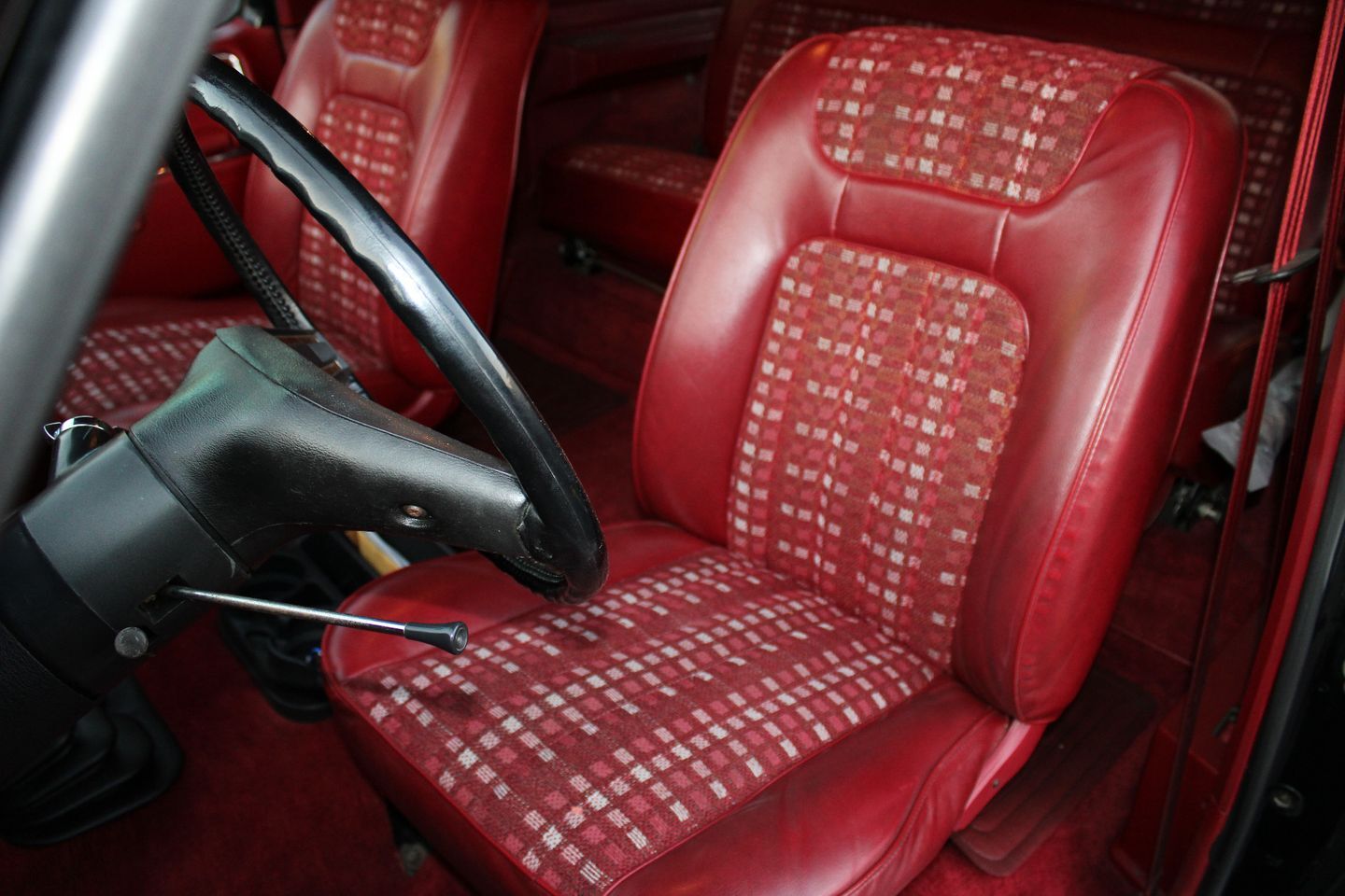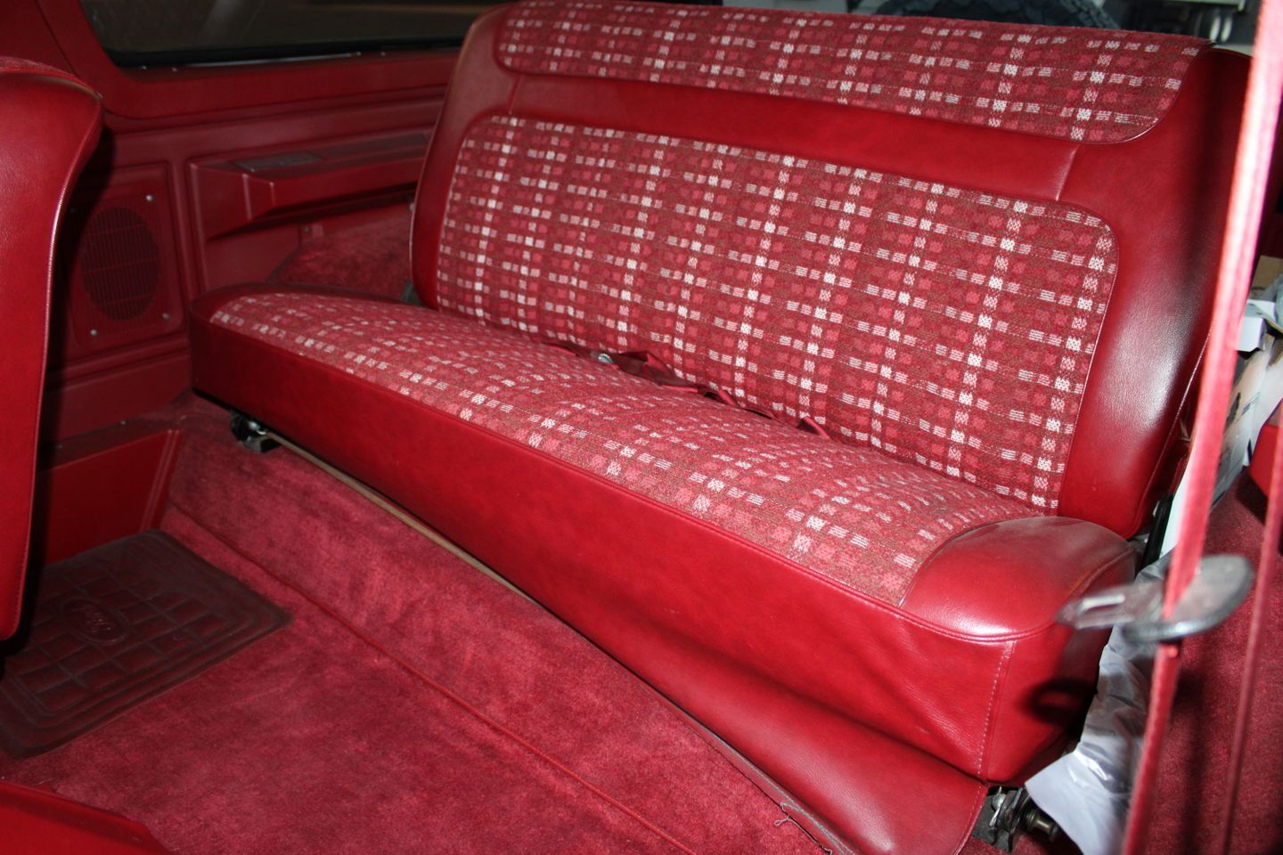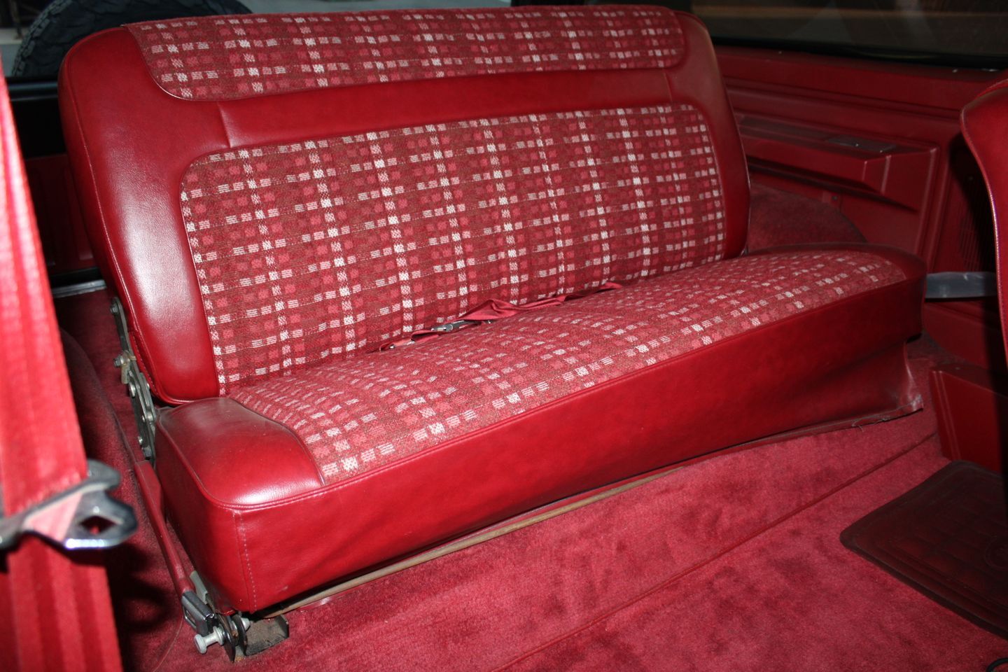 The red cloth interior is a testament to the attention to detail and craftsmanship that went into the design of this Bronco. It offers a comfortable and inviting environment that's perfect for both short trips around town and long, leisurely drives in the countryside. The seats are plush and supportive, providing optimal comfort for all occupants. The dashboard and controls are intuitively laid out, making it easy to operate the vehicle and enjoy the driving experience.