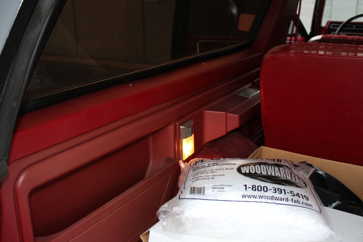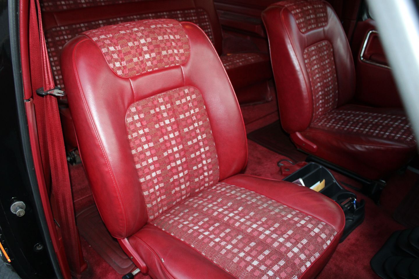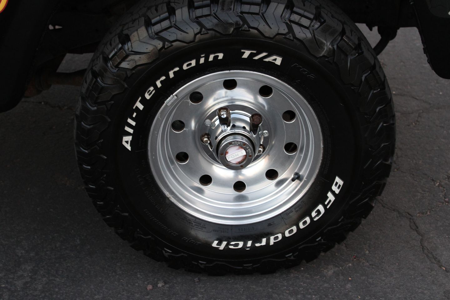 The red cloth interior is a testament to the attention to detail and craftsmanship that went into the design of this Bronco. It offers a comfortable and inviting environment that's perfect for both short trips around town and long, leisurely drives in the countryside. The seats are plush and supportive, providing optimal comfort for all occupants. The dashboard and controls are intuitively laid out, making it easy to operate the vehicle and enjoy the driving experience.