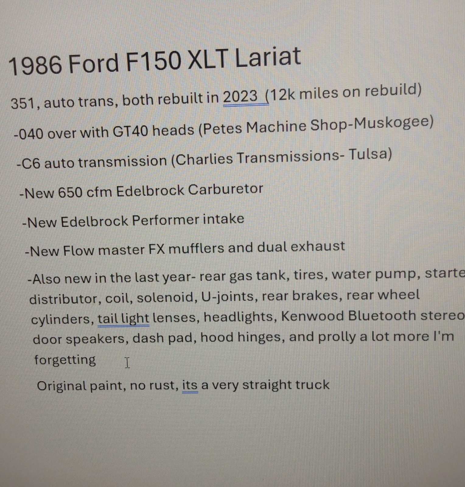 Rust free and very straight body. Please read the last picture for more details and don't hesitate to ask questions. Clean and clear title in my name.