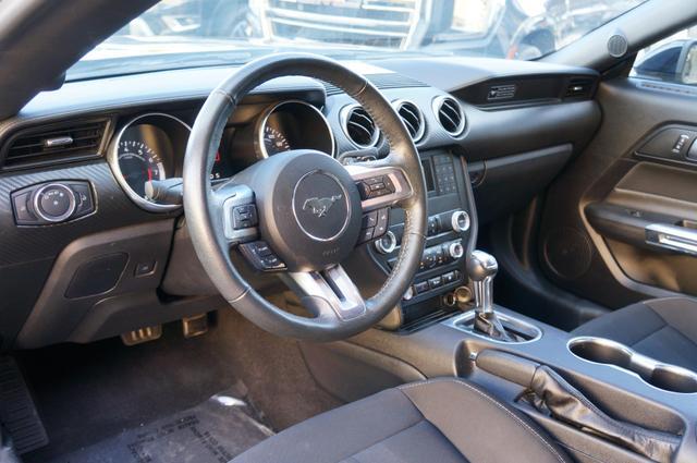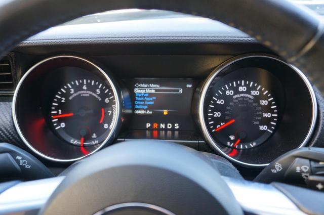 Inside the cabin, the Mustang EcoBoost Premium offers a refined and driver-focused interior with high-quality materials and modern amenities. The seats are upholstered in premium leather with heating and cooling functions, providing both comfort and support during spirited drives. The cockpit is designed with the driver in mind, featuring an intuitive layout, a leather-wrapped steering wheel, and customizable digital instrument cluster displays.