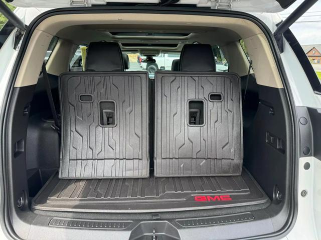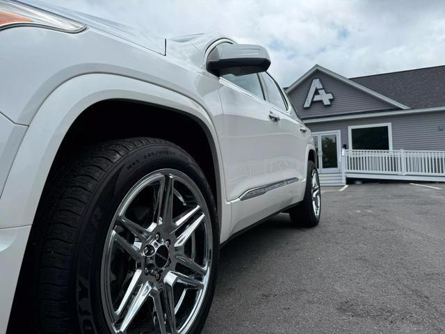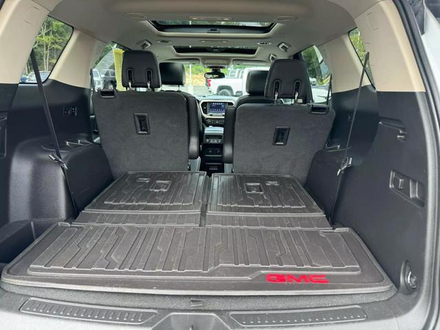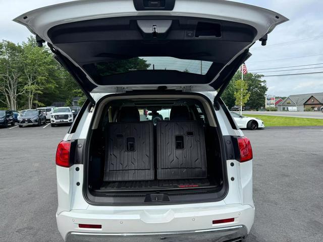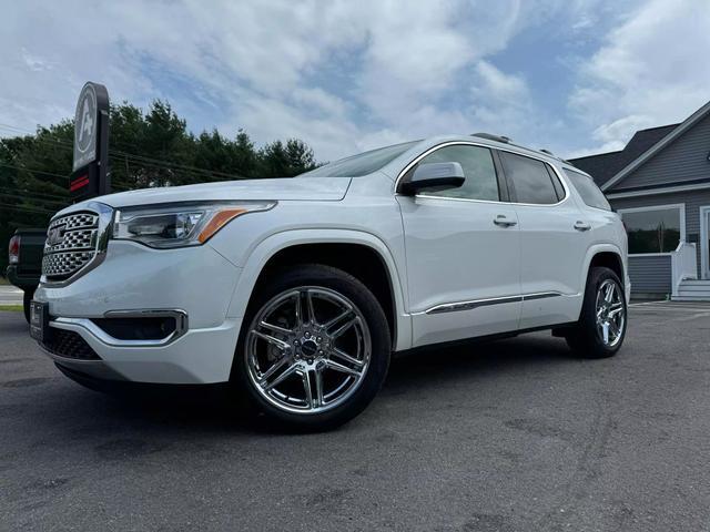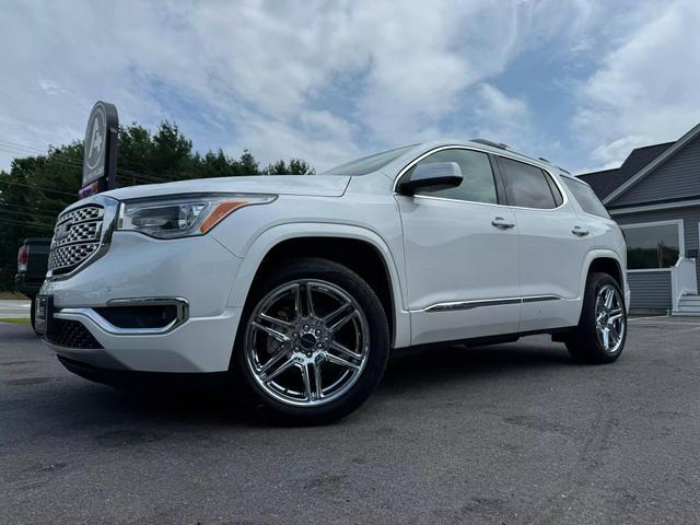 This 2017 GMC Acadia SUV has no reported accidents and a clean title. It is equipped with Denali trim level, dual skyscape sunroof, black leather interior, second-row Captain's chairs, third-row seating, floor mats, cargo liner, and much more!