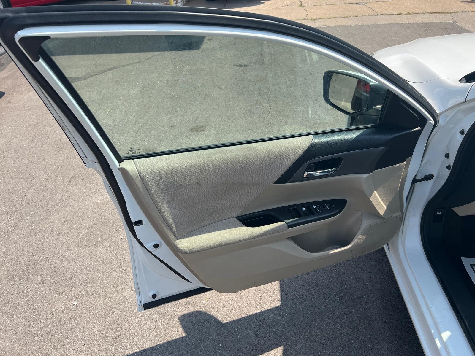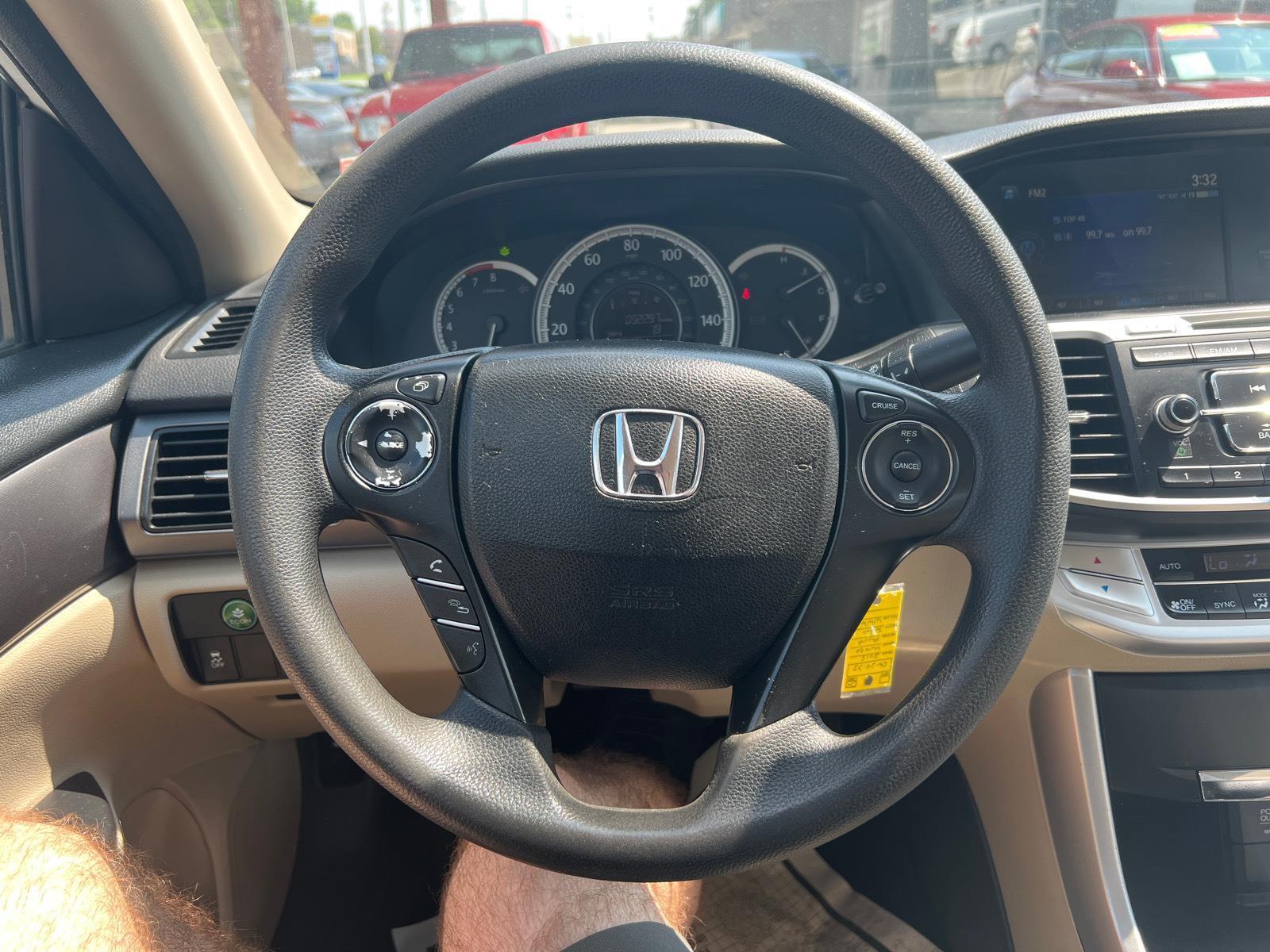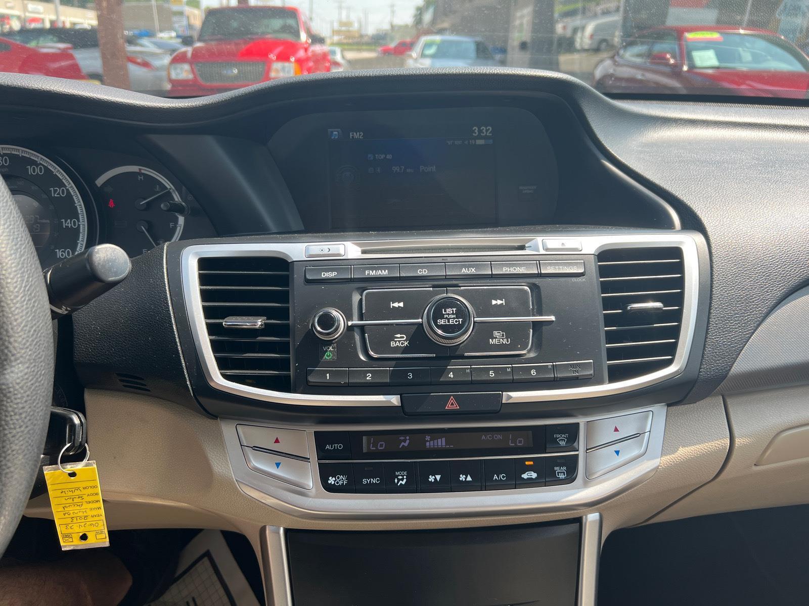 This 2013 Honda Accord Sdn with just 92276 miles is available now. A vehicle history report is always available. This vehicle is equipped with Convenience Cruise control with steering wheel mounted controls. Set it and forget it. Road trips used to be stressful, until cruise control set the pace. Simply set the desired speed using the steering wheel mounted controls and it will maintain that speed without driver intervention. This can help minimize driver fatigue and improve overall fuel economy. Resting your right foot is right at your fingertips thanks to cruise control with steering wheel mounted controls. Keyfob window control - Open up remotely. Get a head start on cooling off your hot vehicle by letting fresh air in before you even get to the door. Roll the windows down using your keyfob, and enjoy a more comfortable entry into your vehicle, thanks to Keyfob window control.Powertrain and Mechanical Variable valve timing - Change your output. There are a lot of variables in your drive, so why should your engine always operate the same? With variable valve timing, the engine is efficient at both low and high RPM's, so you get better fuel efficiency, cleaner emissions and improved performance. Variable valve timing provides a better drive, every time.Safety and Security Rear camera - Watching your back! The rear camera helps you see obstacles and hazards you otherwise couldn't by showing enhanced images of what is behind you. The rear camera is an extra set of eyes that's both convenient and safe. Brake assist - Stop right there. Something jumps out into the middle of the road and you need to stop now! With brake assist, you will. It uses the speed of the brake pedal's travel to sense panic braking, then applies all available power to boost your stopping power. Brake assist can stop the accident before it is one. 2.4L DOHC MPFI 16-valve i-VTEC I4 engine, Active Noise Cancellation (ANC), Active sound control, Drive-by-wire throttle, Direct ignition system -inc: immobilizer, Continuously variable transmission -inc: sport mode, Hill start assist, Front wheel drive, MacPherson strut front suspension, Multi-link rear suspension, Front & rear stabilizer bars, Electric pwr-assisted rack & pinion steering, Pwr ventilated front/solid rear disc brakes, Chrome exhaust finisher, 16" alloy wheels, P205/65HR16 all-season tires, Body-colored bumpers, Projector-beam halogen headlamps w/auto-on/off, Body-colored pwr mirrors, Variable intermittent flush windshield wipers, 160-watt AM/FM stereo w/CD player -inc: (4) speakers, MP3/WMA playback, auxiliary input jack, USB interface, radio data system (RDS), speed-sensitive volume control (SVC), Pandora compatibility, Bluetooth HandsFreeLink -inc: streaming audio, Integrated rear window antenna, Cloth front bucket seats -inc: driver manual height adjustment, active head restraints, Fold-down rear seatback -inc: center armrest, Center console w/armrest, storage compartments, Tilt & telescopic steering column, 8" multi-info display -inc: avg fuel economy, digital odometer, miles-to-empty , exterior temp, Pwr windows w/driver auto-up/down, Remote Fuel Filler Door Release, Security system, Dual-zone automatic climate control, Rear window defroster, Front & rear cup holders, 12V pwr outlets, Side door pockets, Sunglasses holder, Dual sliding sun visors w/illuminated visor vanity mirrors, Map lights, Dual front seatback pockets, 4-wheel anti-lock brake system (ABS) w/electronic brake distribution (EBD), Brake assist, Vehicle Stability Assist (VSA) w/traction control, Advanced Compatibility Engineering (ACE) body structure, Daytime running lamps, Dual-stage, multi-threshold front airbags, SmartVent front side airbags, Side curtain airbags w/rollover sensor, Rearview camera, 3-point seat belts in all seating positions -inc: front automatic tensioning system, Outboard lower anchors & tethers for children (LATCH), Rear center child seat tether anchor, Child-proof rear door locks