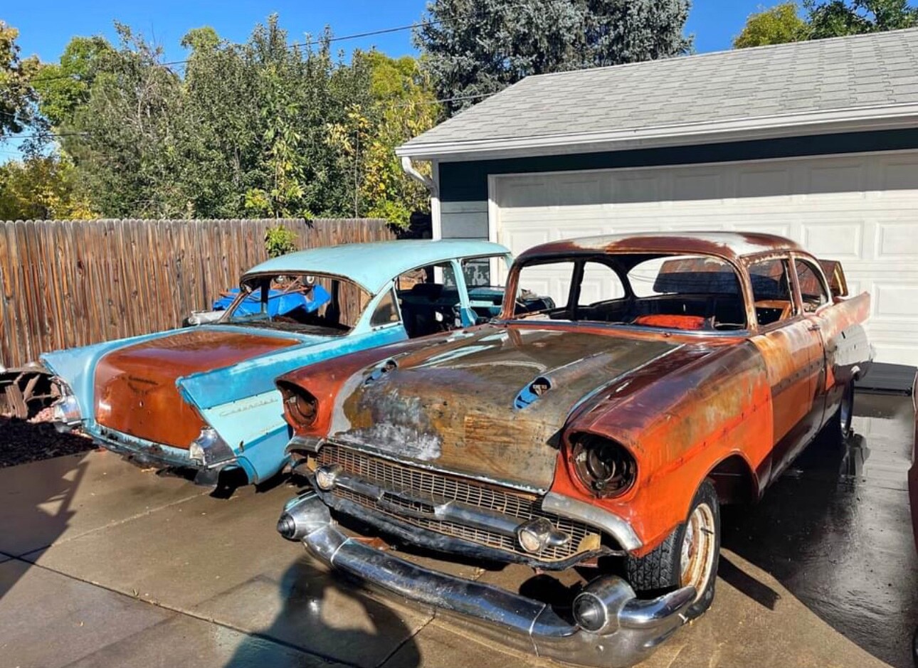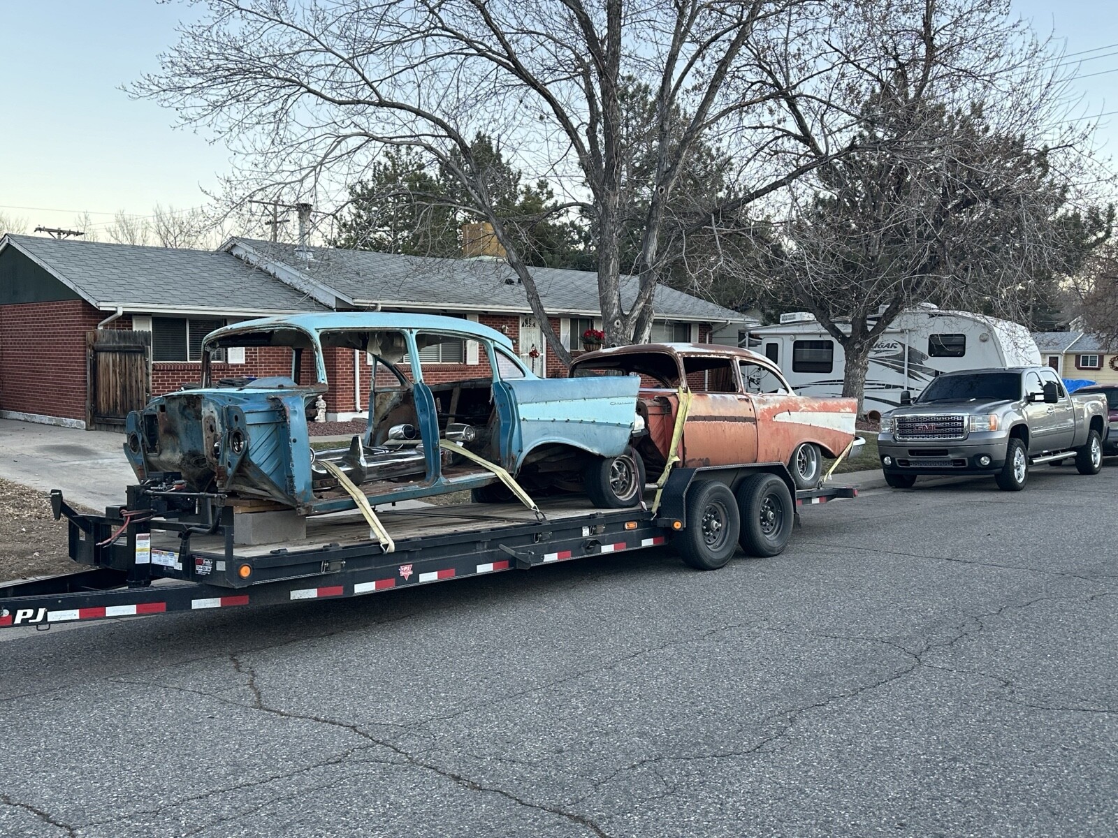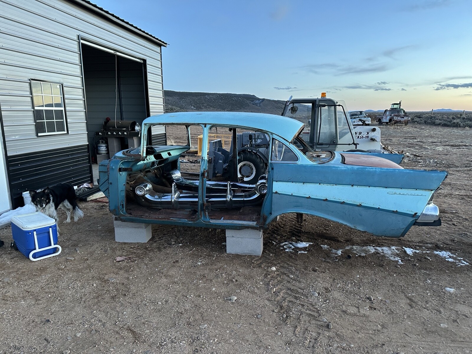 Up for grabs is a 57 Chevy project. This includes the 2 door sedan, a 4 door sedan parts car, and a 3rd vin/body with trim and misc parts from a 57 bel air 2 door hard top. Comes with a rear 4 link kit new in box and new tubular front control arms! Any questions feel free to ask.