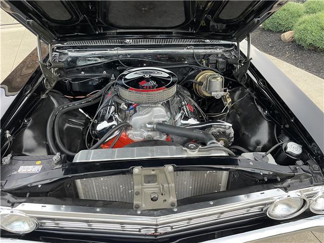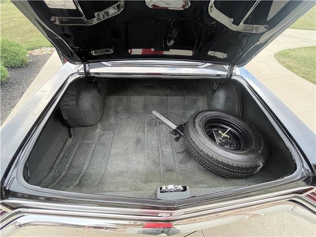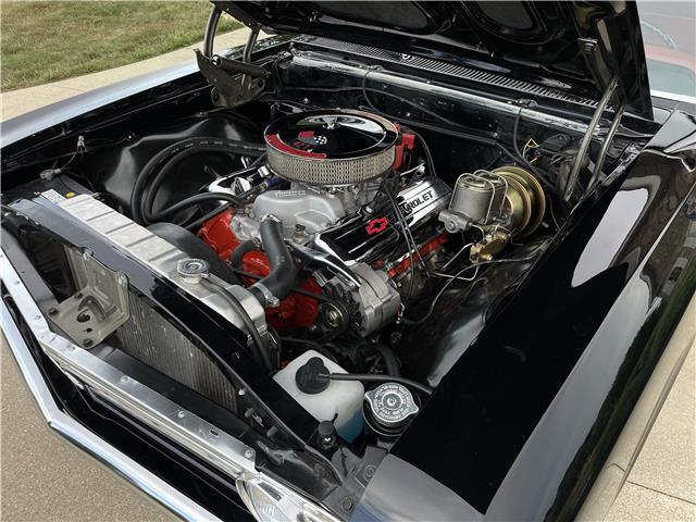 The engine compartment is clean and orderly with its completely rebuilt period correct 396 ci engine bearing casting number 3959854. It has a few performance upgrades: aluminum intake manifold with a Holley dual feed 4-barrel carburetor, factory style chrome air cleaner, Chevrolet chrome valve covers and a 4-core aluminum radiator with factory shroud. It also features a dual master cylinder with cadmium plated brake booster, factory power steering with remote reservoir, factory exhaust manifolds and correct spring type battery cables. Everything is nice and tidy. The engine bay is finished in a satin black.
