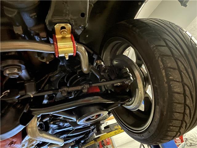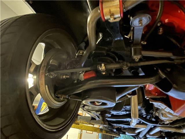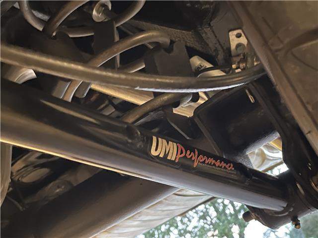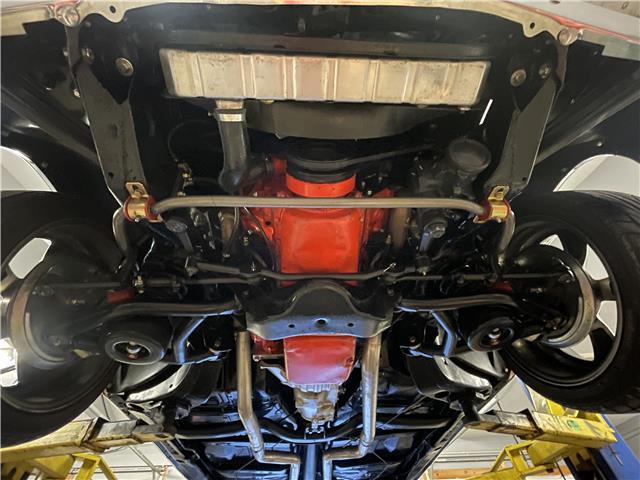 The undercarriage is all clean and solid metal (floors, frame, etc.). The bottom of the motor is clean. The M20 Muncie 4-speed transmission is clean. The front end components have been replaced with tubular arms and QA1 gas shocks. It has a newer dual exhaust system that runs out the back of the car. It has a 12-bolt 3:73 posi rear end. It features adjustable rear control arms, upgraded drilled and slotted rotors on all four corners, new gas tank, new fuel and brake lines The E-brake assembly is all hooked up and working.