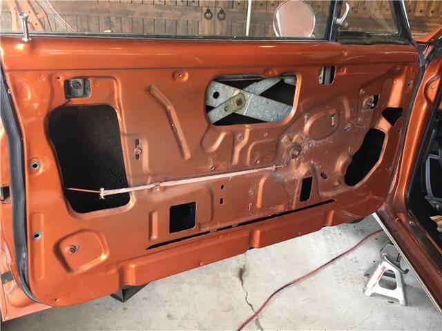 Interior of doors, trunk upper area and under dash sprayed with undercoating