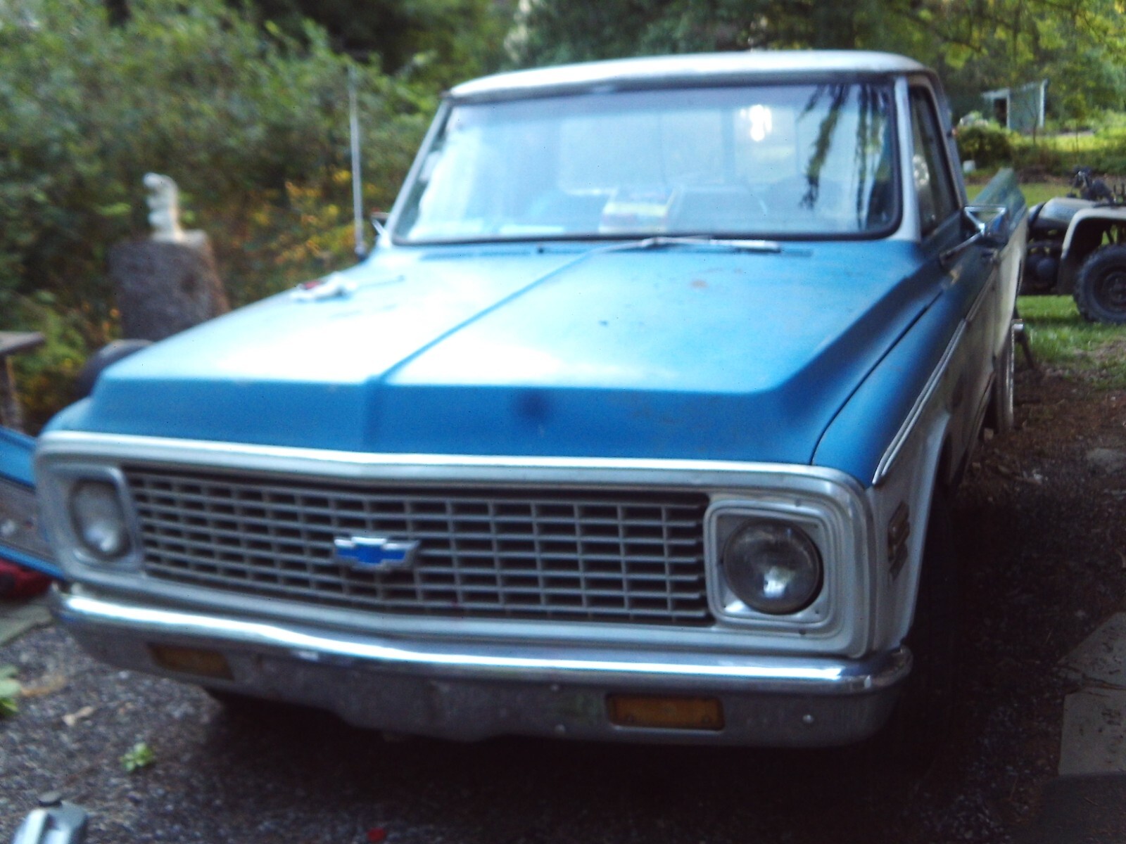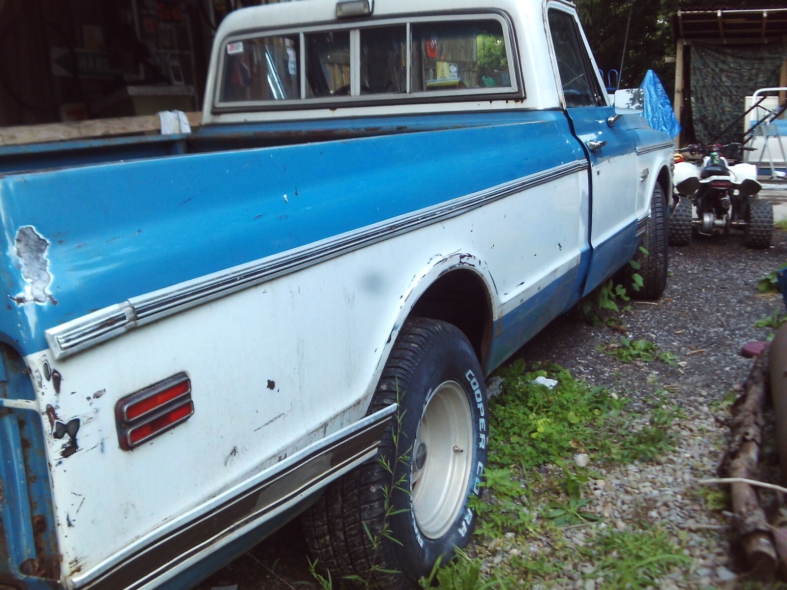 1971 c10 Cheyenne super. 8 ft bed , big bock 402 (396 400) . turbo 400 automatic. a/c leaf springs. spid pictured. This truck was brought up from alabama 3 years ago. runs and drives, We did all rust repair and painted the parts to keep from rusting. 2 rockers, 2 cab corners both front floor pans, rocker and cab supports and upper inside windshield all replaced. rust was not bad small holes but not totally rotted. but did not patch we replaced. New factory blue plaid set cover with new memory foam, new carpets lots of new small parts, new tires all 4 and new windshield. Has hooker headers and full dual exhaust 2 1/2 inch. . I am backed up with projects and I will be doing work on this till it sells. will be installing rest of door molding and wipers, tailgate hinge and tailgate, rear bumper, all body trim yet to be installed. along with taillights and taillight wiring . Leaving for a swap meet for a week and wanted to get this online. truck does not smoke motor was said to be rebuilt not too long before I aqquired it, runs real nice, will need small things but its all there and solid. all new parts underneath are sprayed with urathane. east aurora ny near buffalo..have lots of parts and a few more trucks for these years.