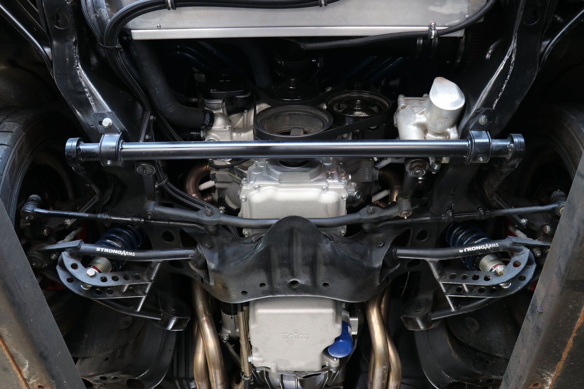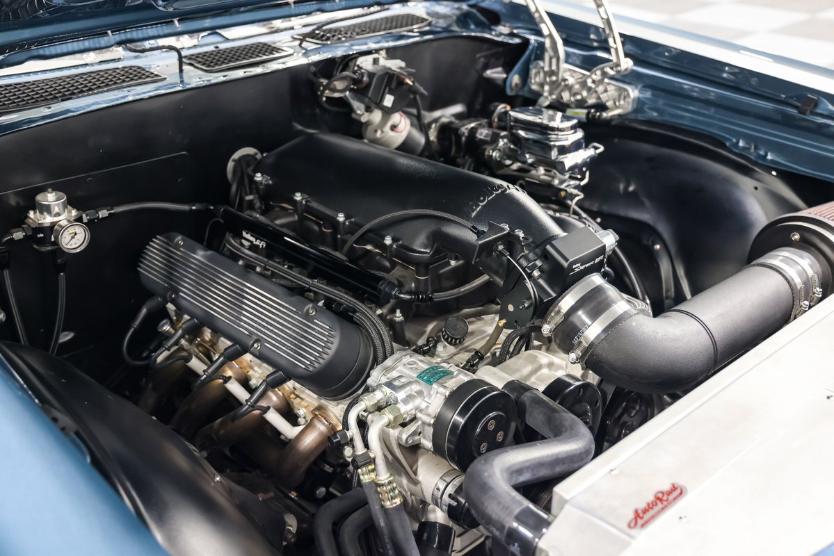 The interior is a testament to modern luxury and technology, featuring a full TMI interior that offers both comfort and style. Dakota Digital HDX gauges, an Ididit tilt steering column, and a RetroSound Hermosa radio with Bluetooth functionality blend seamlessly, offering a contemporary driving experience without sacrificing the car's vintage appeal. Power windows and an Old Air Products heat & A/C system ensure year-round comfort, making every drive a pleasure.