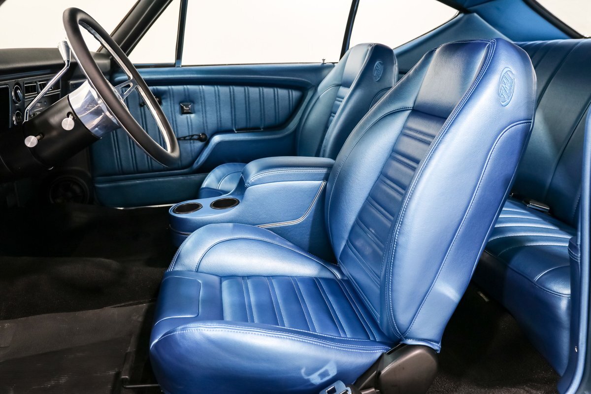 Dive into the essence of American muscle with this fully restored 1968 Chevrolet Chevelle Malibu, a masterpiece that seamlessly blends classic design with modern performance. At its heart lies a Chevrolet Performance 6.2L LS3 V8 engine, delivering a staggering 525HP, paired with a TCI StreetFighter 4L60E automatic transmission and TCI Breakaway torque converter for unmatched power and smoothness. The car's striking blue exterior and matching vinyl interior encapsulate the iconic '60s aesthetic, while the bench seating maintains its original charm.