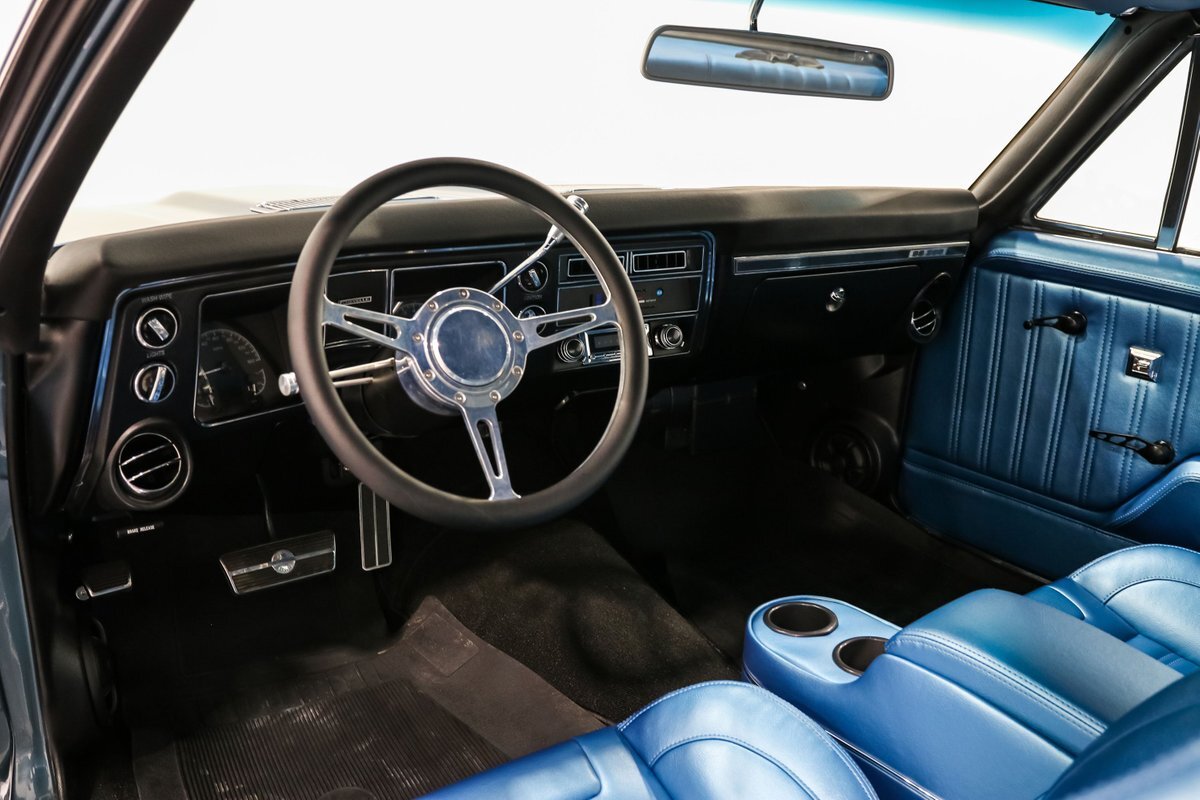 This Chevelle Malibu stands out with its state-of-the-art upgrades. The RideTech Strong Arm suspension and adjustable coilovers ensure a driving experience that's as refined as it is exhilarating. Wilwood 6 piston 4-wheel disc brakes and a Hydroboost braking system offer superior stopping power, making it as safe as it is powerful. The addition of a Moser 9 inch rear end guarantees durability and performance, ensuring this Chevelle handles like a dream.