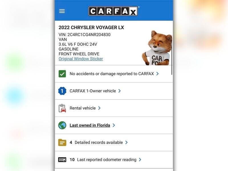 A complete vehicle history report is available for this vehicle