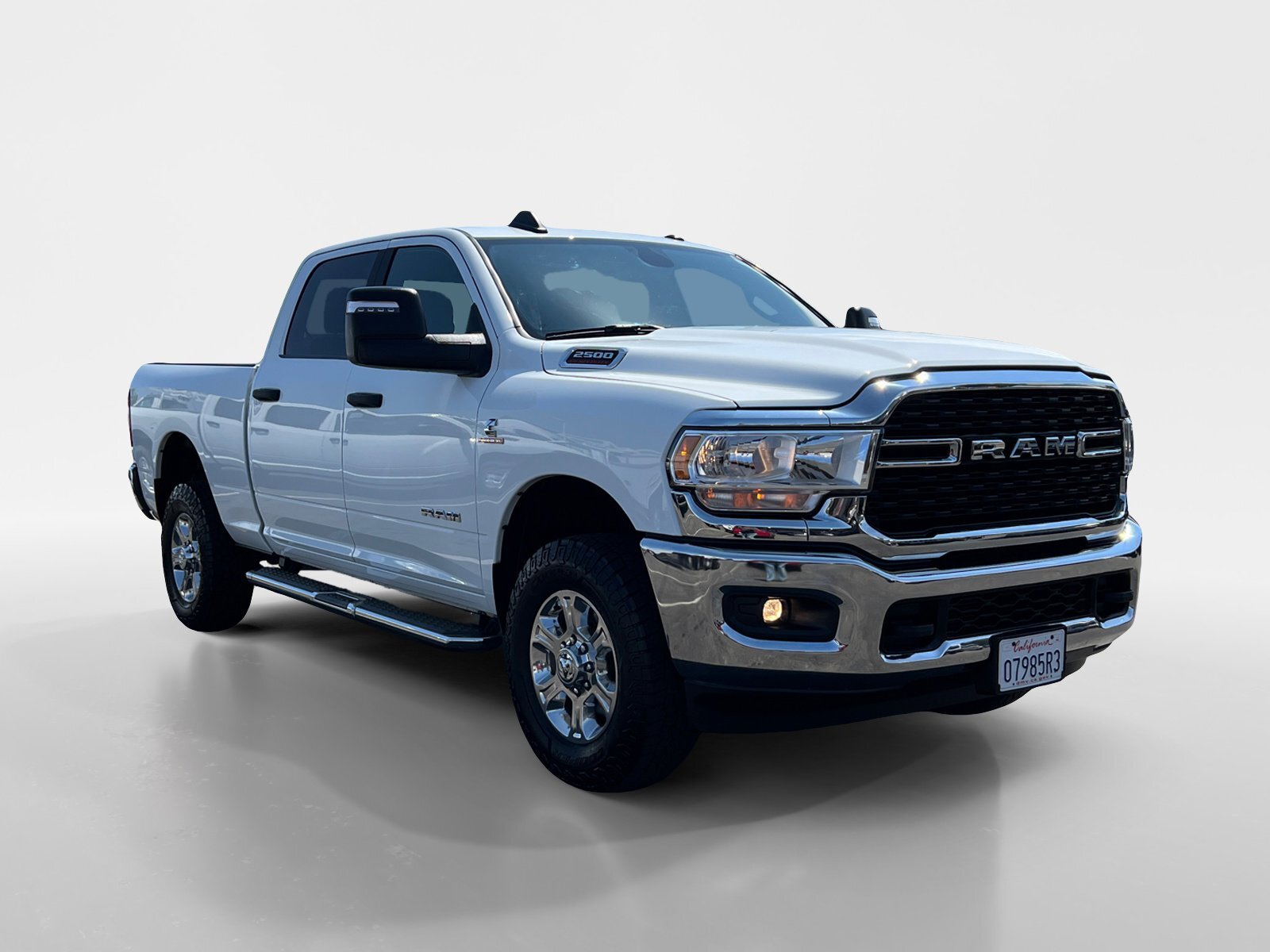 Bright White Clearcoat 2024 Ram 2500 Big Horn 4WD 6-Speed Automatic Cummins 6.7L I6 Turbodiesel ** 1 Owner Clean CarFax **, 2nd Row In Floor Storage Bins, 4G LTE Wi-Fi Hot Spot, 8.4 Touchscreen Display, Air Conditioning, Apple CarPlay, Auto Power-Folding Mirrors, Auto-Dimming Rear-View Mirror, Big Horn IP Badge, Black Exterior Mirrors, Bluetooth Handsfree Phone & Audio, Center Hub, Chrome Flat Cab-Length Side Steps, Compass, Connectivity - US/Canada, Diesel Exhaust Brake, Dual 730 Amp Maintenance Free Batteries, Dual Glove Boxes, Emergency communication system: SiriusXM Guardian, Exterior Mirrors Courtesy Lamps, Exterior Mirrors w/Heating Element, Exterior Mirrors w/Supplemental Signals, Foam Bottle Insert (Door Trim Panel), Footwell Courtesy Lamp, For More Info, Call855-433-6688, Forward & Reverse Utility Lights, Front Fog Lamps, Fully automatic headlights, Global Telematics Box Module (TBM), Glove Box Lamp, Google Android Auto, GPS Antenna Input, Heavy-Duty Engine Cooling, Illuminated entry, Integrated Center Stack Radio, Integrated Voice Command w/Bluetooth, Leather Wrapped Steering Wheel, Level 1 Equipment Group, Locking Lower Glove Box, Mirror Running Lights, Outside temperature display, Overhead console, ParkView Rear Back-Up Camera, Power Adjust Mirrors, Power Adjustable Convex Aux Mirrors, Power Heated Fold Telescope Mirrors, Power Telescoping Mirrors, Premium Cloth 40/20/40 Bench Seat, Quick Order Package 2HZ Big Horn, Radio: Uconnect 5 W w/8.4 Display (A62), Rear 60/40 Folding Seat, Rear Folding Seat, Rear step bumper, Remote keyless entry, Remote USB Port - Charge Only, Selectable Tire Fill Alert, SiriusXM Radio Service, SiriusXM Satellite Radio, Speed control, Steering Wheel Mounted Audio Controls, Supplemental Heater, Tow Hooks, Wheels: 18 x 8.0 Polished Aluminum.Recent Arrival! Odometer is 7211 miles below market average!Here at Crown Dodge Chrysler Jeep RAM, we believe that great service means more than just offering our new Dodge, Chrysler, Jeep, and RAM lineup. We believe that great service also includes helpful advice, friendly car financing, and the highest quality parts and repairs for your car. Our staff works hard to make your full automotive experience at our car dealership in Ventura, CA enjoyable, and we look forward to helping you today! All vehicles at Crown Dodge have our SWAT security system $995,Clear Shield $395, Pulse $395, Wheel Locks $395, Windshield Protection $995, Nitro Fill $499, Screen Protector $395 and $1295 Paint/Fabric Protection pre-installed. Prices on the website do not include dealer-added equipment. Discounts include $2,000 Trade-In Dealer Assist Cash. Must trade in a 2015 or newer vehicle on a retail purchase. Trade-in must have less than 15,000 miles on average per year stated on Carfax Report, clean title, and Clean vehicle history report. Expires 02/19/2024. Expires 02/29/2024.
