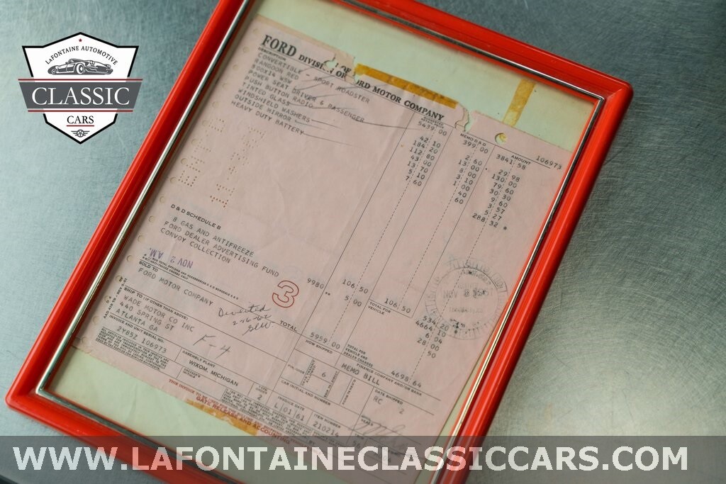 The 1962 Ford Thunderbird Sports Roadster featured here is a completely unrestored example still wearing its original Rangoon Red paint over a beautiful black interior. Yes it really looks that good still! This Ford Thunderbird is an exceptional example of a Sports Roadster with the 300hp 390ci V8 engine mated to a Cruise-O- Matic transmission! It comes equipped with power steering, swing away steering wheel, power brakes, power windows, power bucket seats, and Kelsey Hayes wire wheels. An outstanding example of third generation T-bird! This Thunderbird has its original documentation including the original invoice, factory literature, and the Arbiter Elegantiae signed by L.A. Iacocca! Call our sales team today for more information on this stunning Thunderbird @866-263-7151 or email us at