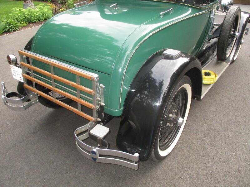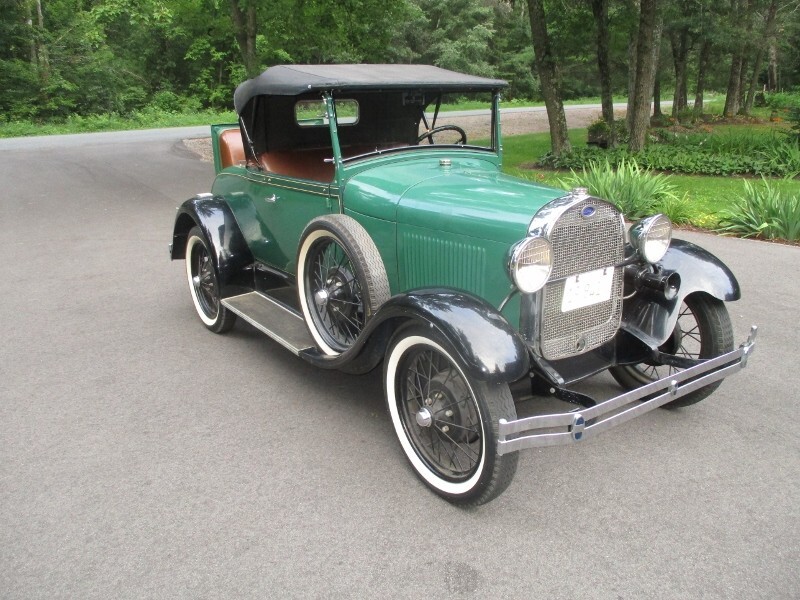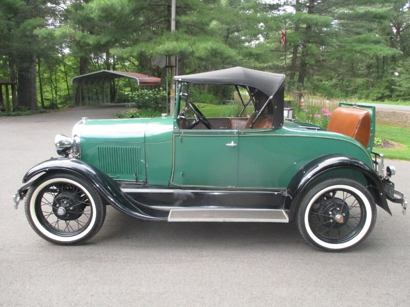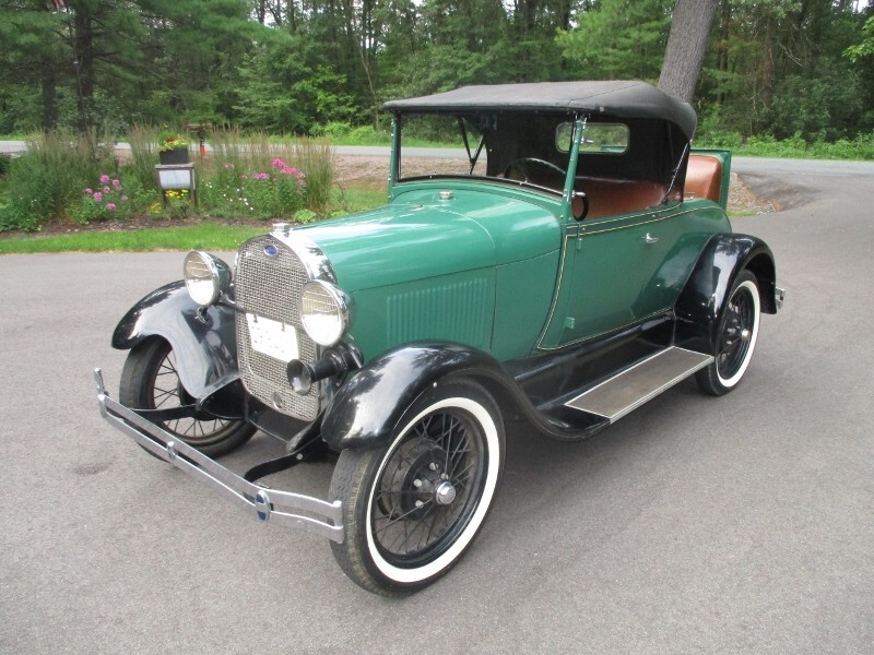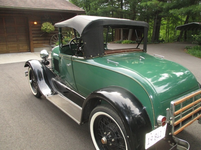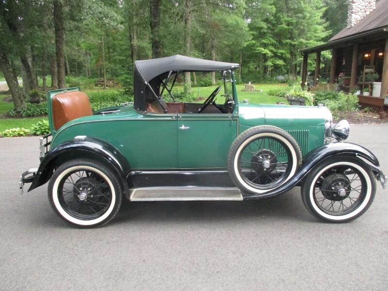 Up for auctions is this very nice little Model A Roadster. It starts easily, every time with no smoking at all - anytime. It was restored 20 years ago and has held up very nice. The body is 100% solid with no bondo or patches. It is an all steel car. the original engine swapped out with a rebuilt engine during restoration & is not a matching #s car & restored to original. The paint is very nice, however, not show perfect. It could use a good buffing to bring out more luster, however, very presentable as is! It has a nice new top and upholstery. The tires are in nice shape - WWWs. It has a nice clean engine bay and very nice & clean up underneath also. The lights and gauges all work with the exception of the gas gauge as it needs a new cork float. It has nice pin striping on the paint that really sets off the looks of this little Roadster. I have been driving this car nearly daily and it always starts instantly, goes down the road smooth and straight, its tight with no rattles or shaking, runs cool and the brakes are excellent. It is a real joy to putt around in. It always draws attention with smiles & thumbs up! The aooogha horn blows loud and proud. People love to hear the horn blow! It has nice chrome bumpers and luggage rack on the back. It has a nice clean rumble seat area. The top comes off easily in just a couple minutes. The nice chrome stone guard protects the radiator. It comes with side curtains(new) and wind wings. The back window flips up & buttons so can be open to the rumble seat - very cool. This is a nice little piece of Henry Ford history! A realistic price to sell quickly. Any questions, please contact me to exchange phone numbers to discuss this little beauty. Check out my 100% positive feedback and bid with confidence. I am sure the new owner will be happy with this turnkey Roadster. The buyer is responsible to arrange and pay for transportation of this vehicle. A $500 non-refundable down payment is due within 24 hours of the end of the auction through Ebay. The balance in full is due within 7 days of the end of the auction either as cash in person or wired to our bank acct. This car is for sale by a WI dealer, therefore, a purchase agreement will need to be signed along with a WI (ONLY) county, state taxes & fees added to the final bid price. This vehicle is currently stored inside and can remain there for up to 30 days.