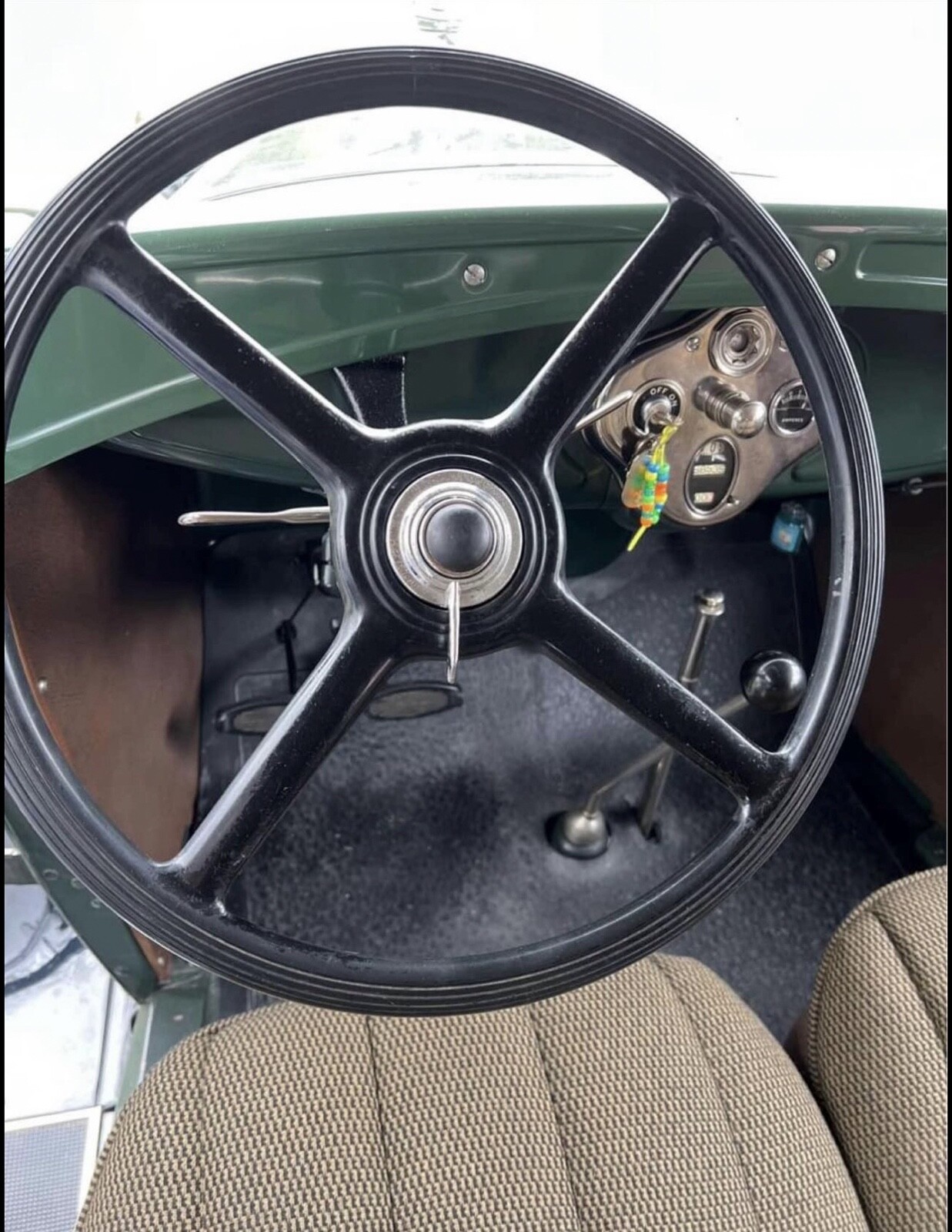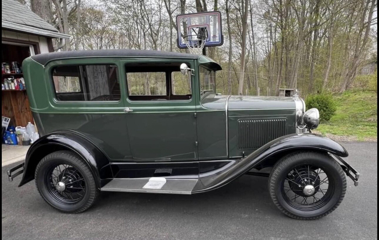 1930 Model A Ford Tudor . She is painted Kawannee and Elkpointe green . She is in beautiful cosmetic shape . Mechanical as well ! It went through a restoration in the 80’s . The gas tank had a small leak around the steering column which was a normal issue with these cars but it was fixed I also added a 1931 mount All fluids have been changed . It has a sector seal leak which isn’t really an issue I also have the part for it . She is definitely a beauty and looking for a new home . Reminding that it’s also a double clutch drive . There is another engine that goes with it as well I’ll give that to the buyer .Plates not included