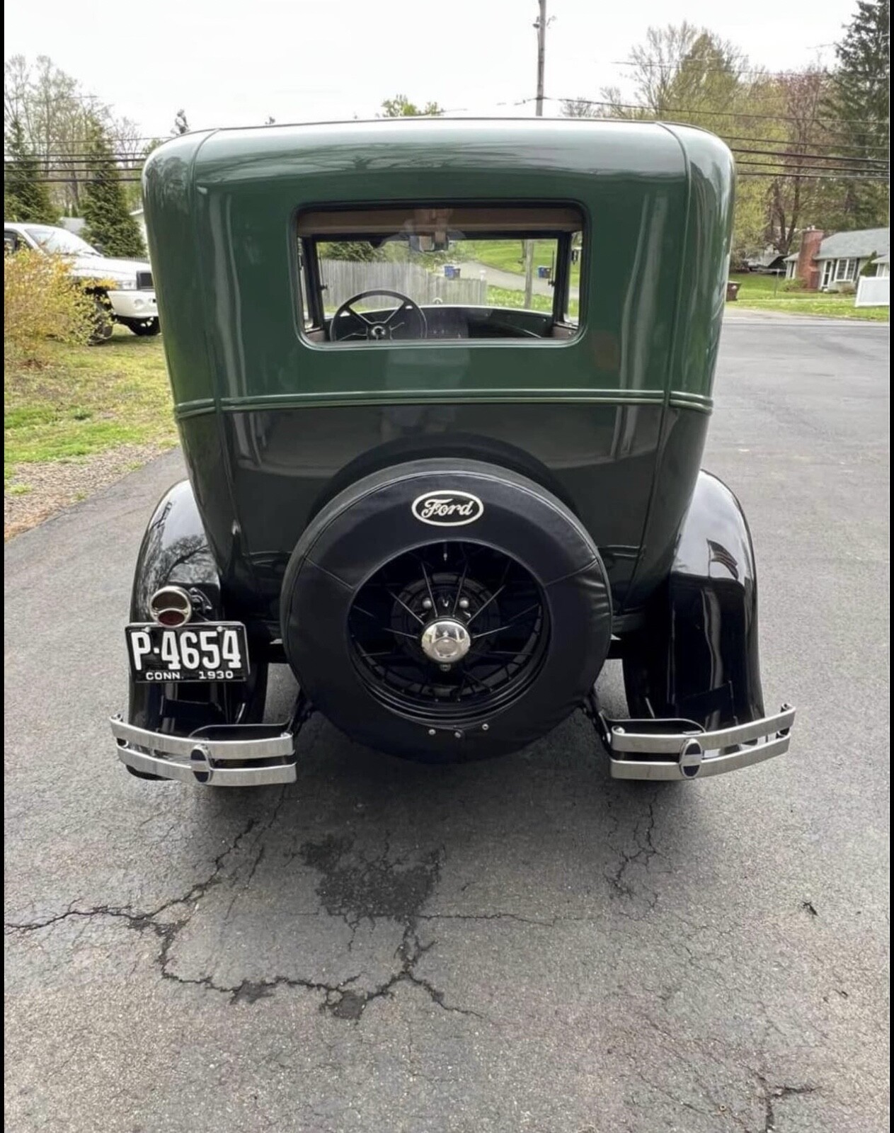 1930 Model A Ford Tudor . Early 1930 model April to be exact . She is painted Kawannee and Elkpointe green . She is in beautiful cosmetic shape . Mechanical as well ! It went through a restoration in the 80’s . The gas tank had a small leak around the steering column which was a normal issue with these cars but it was fixed I also added a 1931 mount All fluids have been changed . I have extra parts but they are extra money including a heater and toe alignment gauge . She is definitely a beauty and looking for a new home . Reminding that it’s also a double clutch drive . The sector seal is leaking but I do have the part for it . There is another engine that goes with it as well I’ll give that to the buyer .Plates not included.
