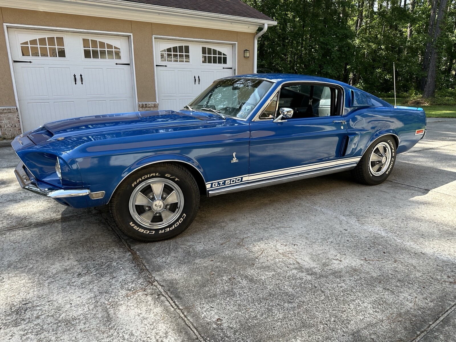 This is a well-documented and very original 1968 Shelby GT500 that was with the same owner since 1991 (33 years) before being aquired by the current owner. It presently has a documented 43,500 miles on the odometer. It has been mostly preserved in its original factory state. This car is listed in the Shelby American World Registry.Built in Metuchen, NJ on February 16, 1968 (1 day later than Buck Tag and Warranty Plate, according to the Marti Report). It was painted Acapulco Blue (code D). The original Build Sheet in hand states the following factory options: power steering, power brakes, air conditioning (Selectaire), tinted glass (all), automatic transmission (C6), tilt-away column, fold-down rear seat, Philco Radio-AM, Deluxe Comfortweave seats, wheel lip molding, Visibility Group, and a clock. The car was repainted in 2000 with a single-stage urethane paint to its original color.Original documents included are the Factory Build Sheet, original Owner's Manual, and receipts dating from 1968 to the present, authenticating ownership, mileage, and any service performed. The Warranty Plate on the driver's side door, Buck Tag on the passenger side inner fender and VIN tag on the driver-side windshield dash are all present and in original condition. Deluxe Marti Report is available.After being built in Metuchen, NJ on February 16, 1968, the Shelby was shipped to Horn Williams dealership in Dallas, TX on 3/1/1968. It was purchased by Mrs. Judy Kyle on 5/28/1968 (original owner's manual available). It was traded in on a Cadillac in early 1969. It was subsequently sold to Walter W. Cline on 3/17/1969. The original used car window sticker and letter of appreciation from Rodger Meier Cadillac, Dallas, TX are available. The car went through several owners (all in Texas) during the subsequent years and was sold to the most recent owner on 6/3/1991 with 40,741 original miles on the odometer and so stated on the Florida Title as "original mileage".Original means parts and assemblies that have been identified to be original to this car at factory build by verifying casting numbers, Ford, Autolite, and authorized manufacturers' part numbers and date codes, when available.Original Drivetrain includes engine block, heads, exhaust manifold, intake manifold, C6 transmission, driveshaft, distributor, and 3rd member.The Interior has the original glass, seats, carpet, headliner, console, gauges, kick panels, rear sail panels, door panels, dash, Philco radio - AM, steering wheel, emblems, roll bar, and all seat belts. Exterior sheet metal and fiberglass are original and sheet metal is date-coded. NO rust or accidents – ever.Other original parts include the radiator, fan shroud, AC unit, power steering unit, horns, alternator, Autolite regulator, AC air dryer, Marchal fog lights, muffler, exhaust system, gas tank, drum brakes, rear flasher dynamite sticks, front and rear bumpers, Kelsey Hayes rims, and Shelby hubcaps.The Shelby presently sits on 4 new Cooper Cobra Radial GT tires, mounted on the original Kelsey Hayes rims and Shelby original hubcaps (all in excellent condition).