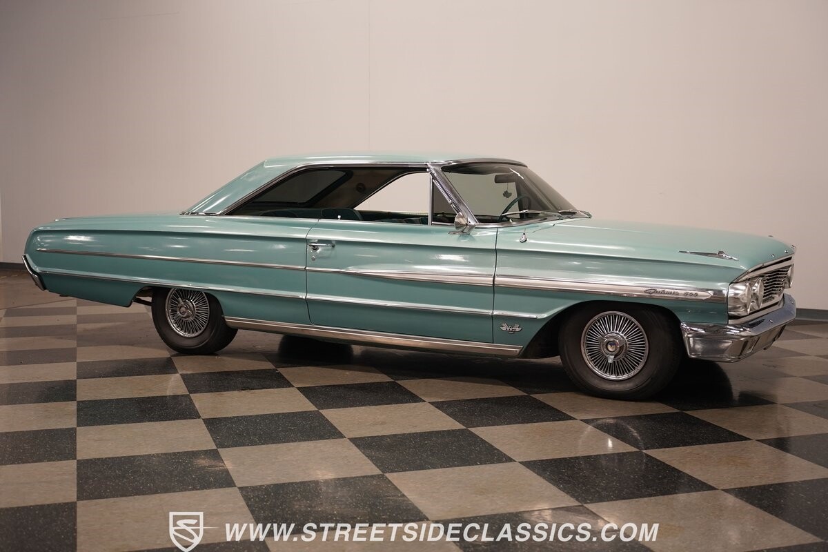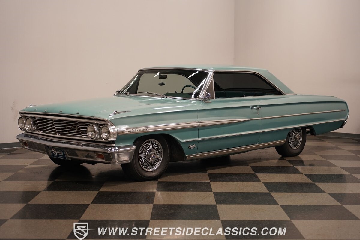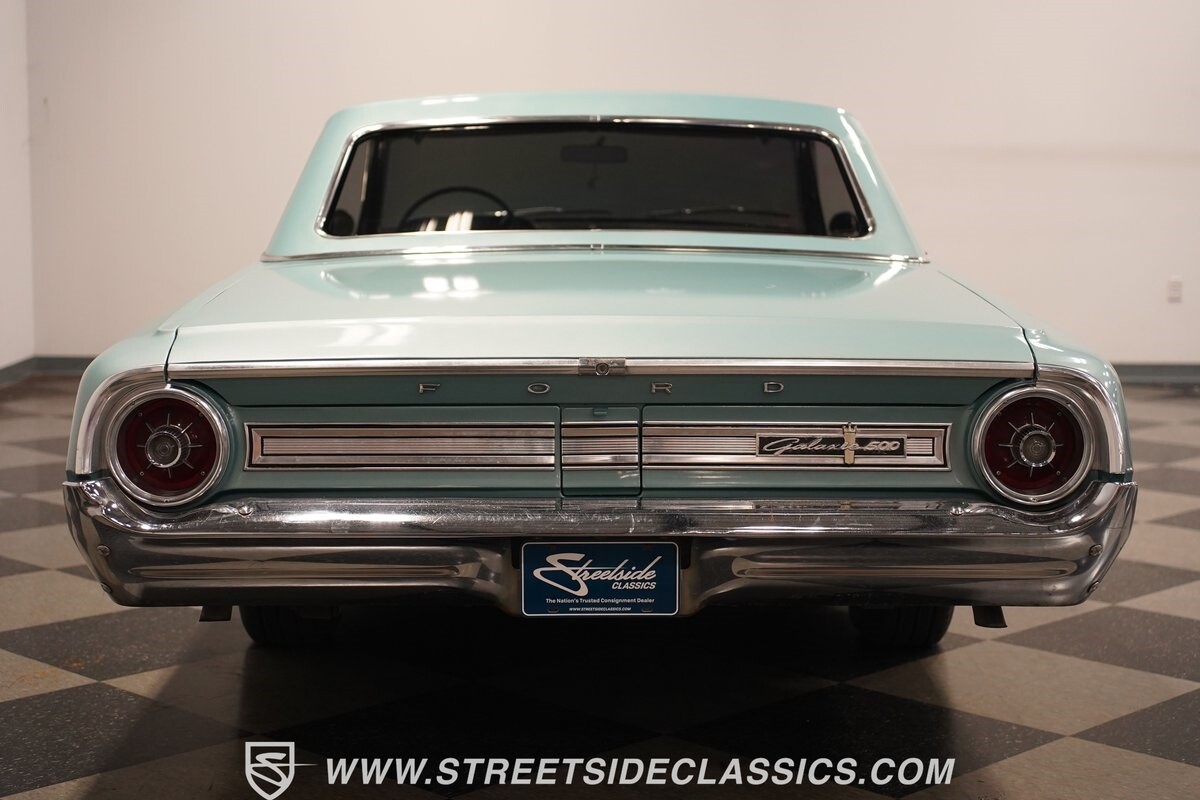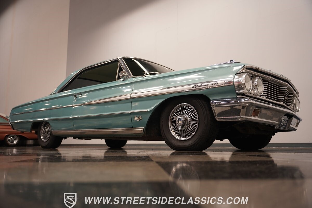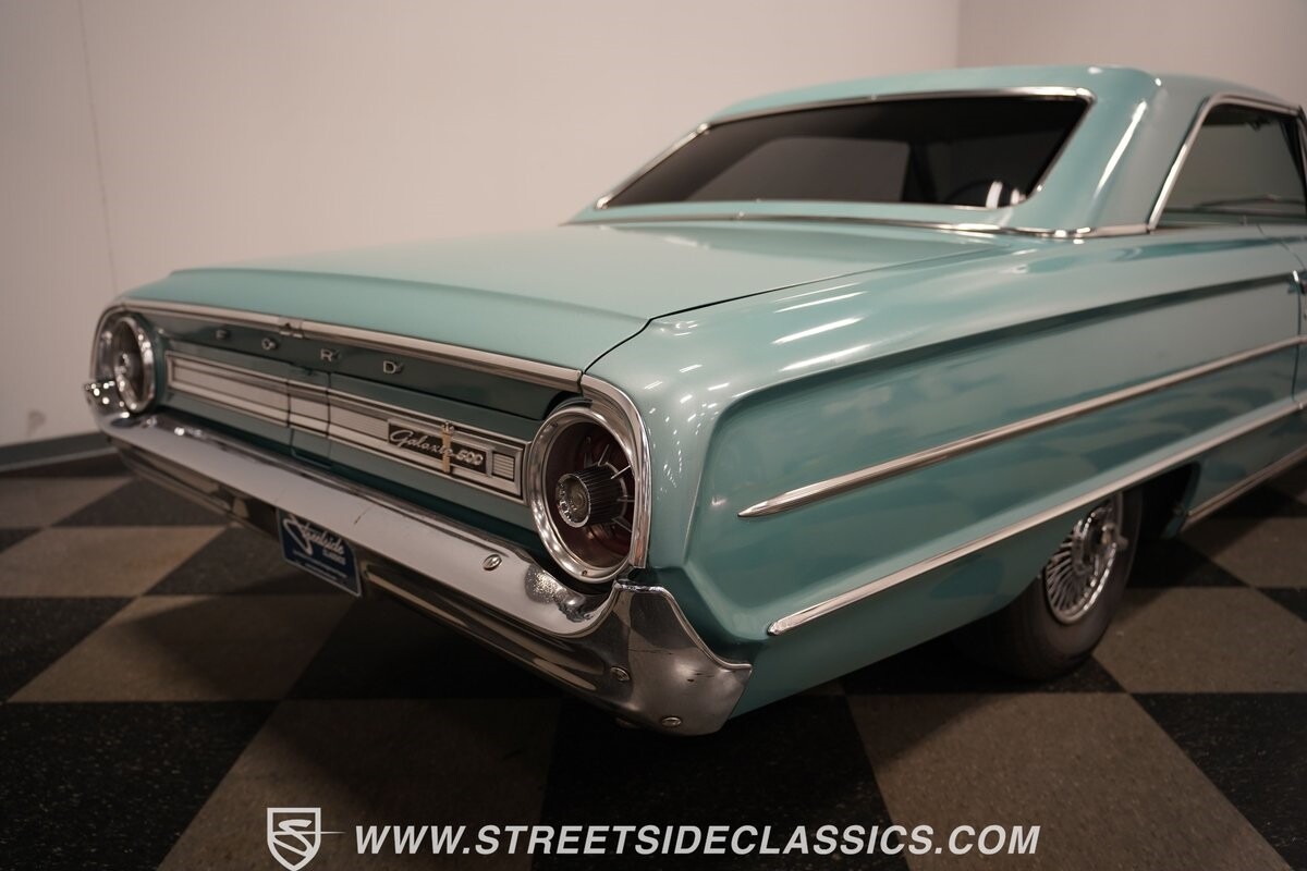 When the 1964 Ford Galaxie 500 rolls into the sunlight, its Dynasty Green paint reflects a deep, lush hue that is reminiscent of a classic era. This car sports original paint, refreshed in 2006, capturing attention with its genuine vintage appeal. Outfitted with 14-inch wheels wrapped in 225/70R14 tires, the Galaxie 500 doesn't just stand; it poses with a confident stance.