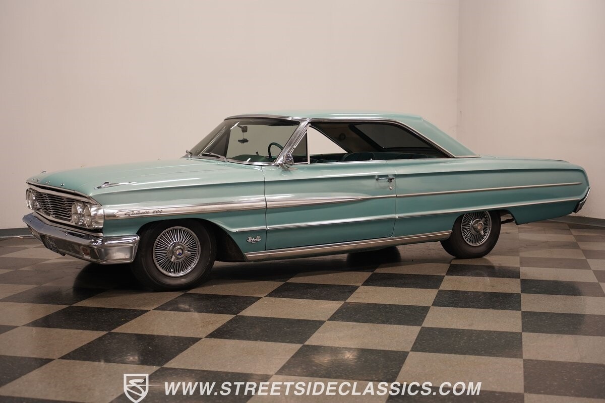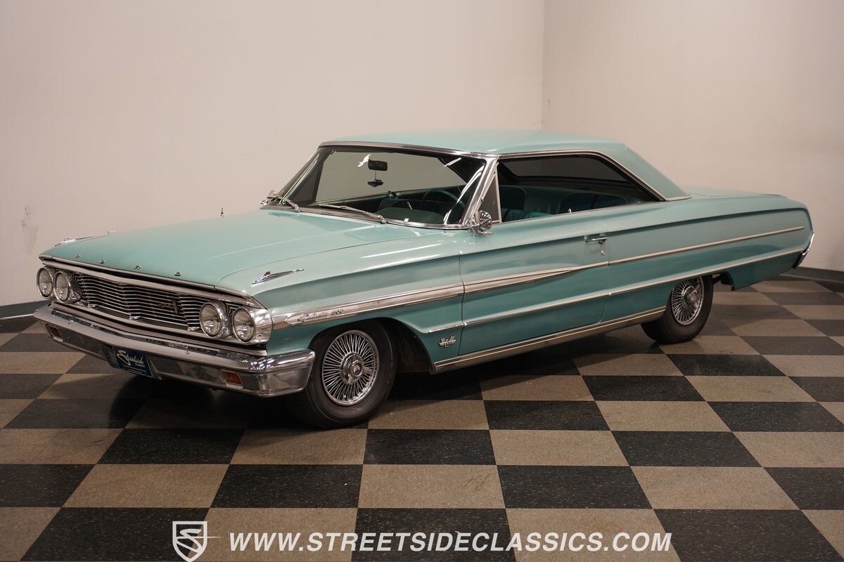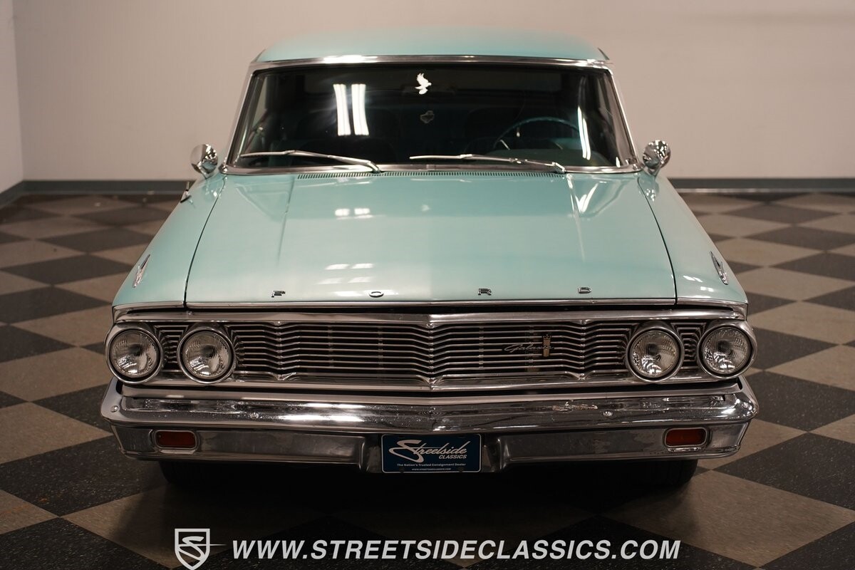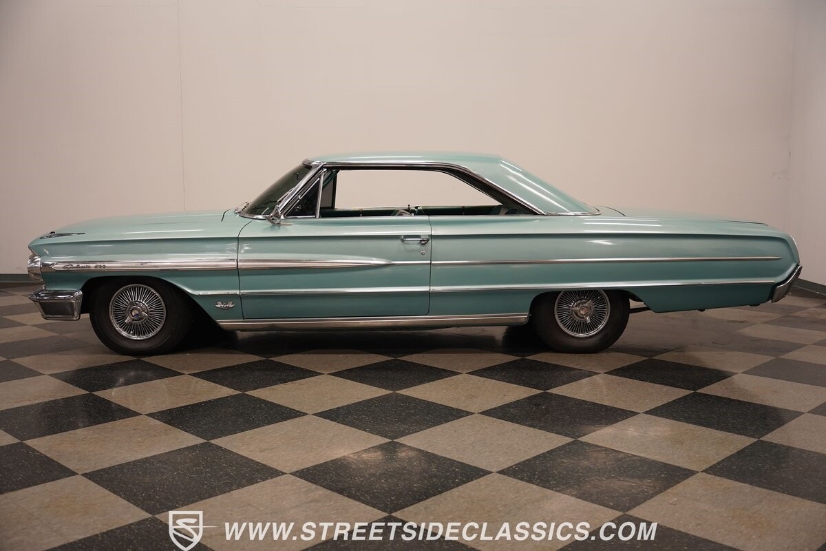 When the 1964 Ford Galaxie 500 rolls into the sunlight, its Dynasty Green paint reflects a deep, lush hue that is reminiscent of a classic era. This car sports original paint, refreshed in 2006, capturing attention with its genuine vintage appeal. Outfitted with 14-inch wheels wrapped in 225/70R14 tires, the Galaxie 500 doesn't just stand; it poses with a confident stance.