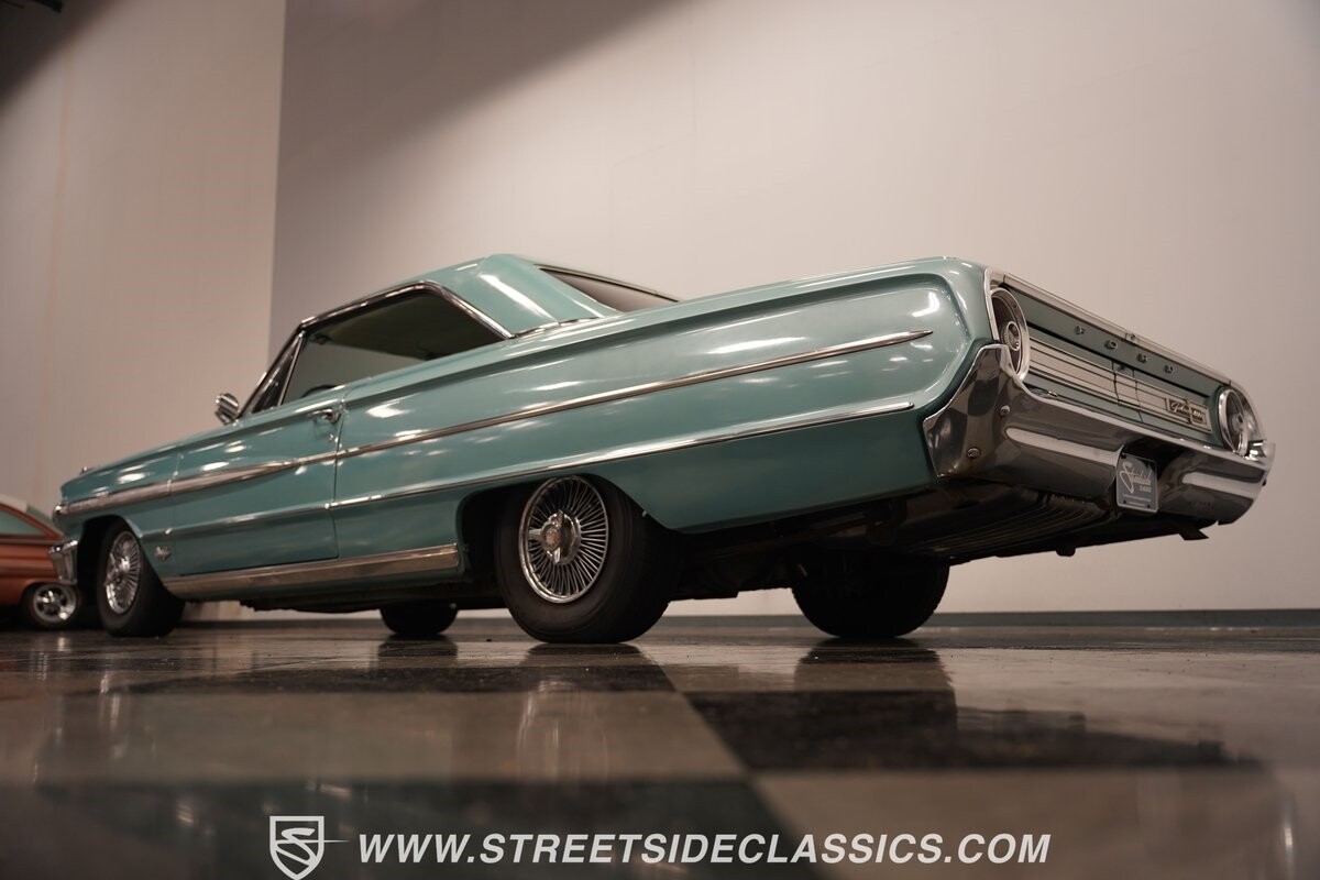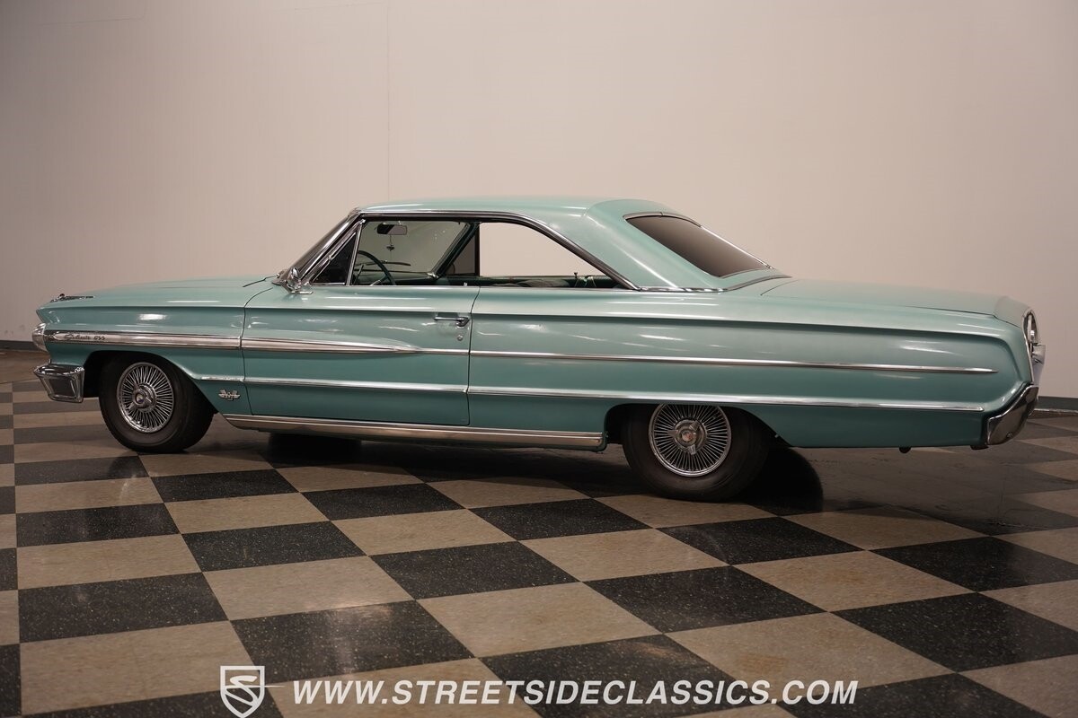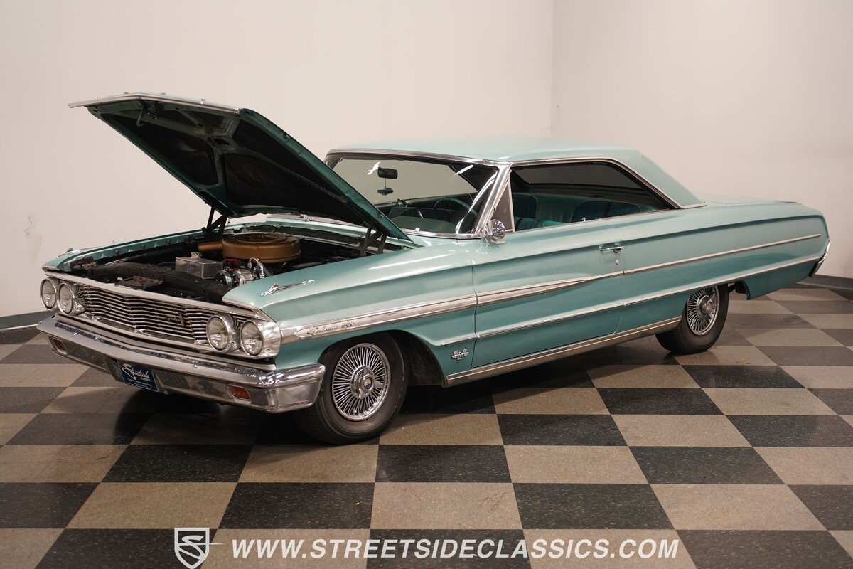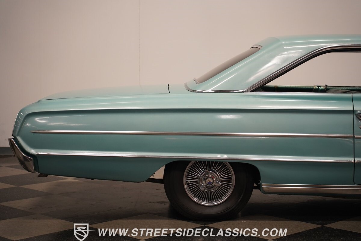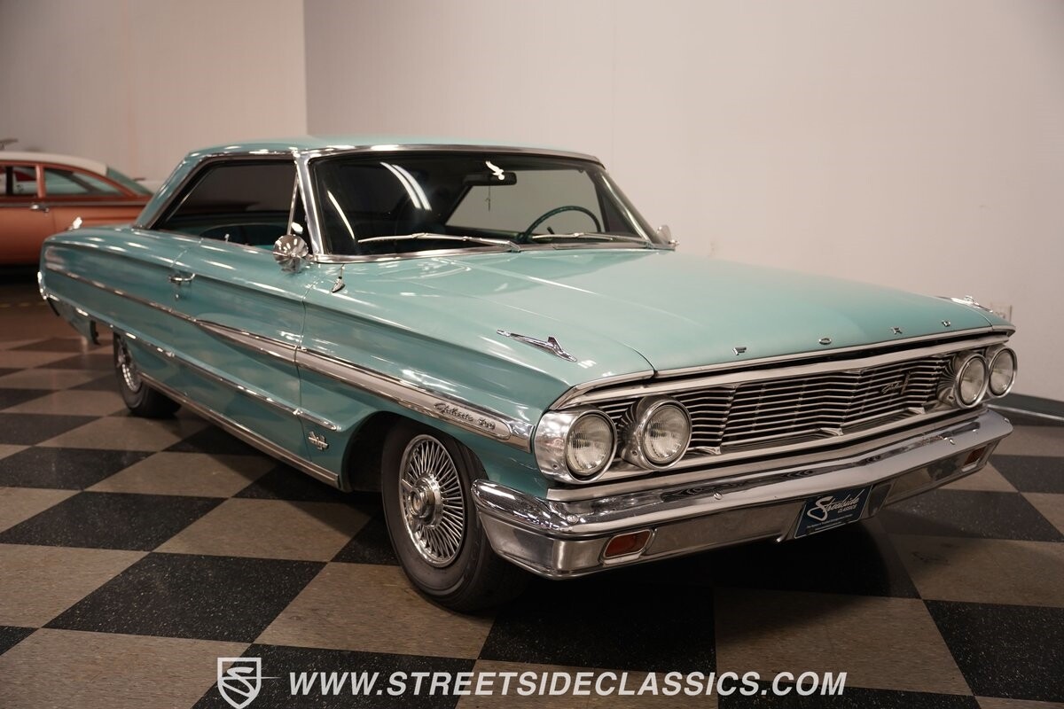 When the 1964 Ford Galaxie 500 rolls into the sunlight, its Dynasty Green paint reflects a deep, lush hue that is reminiscent of a classic era. This car sports original paint, refreshed in 2006, capturing attention with its genuine vintage appeal. Outfitted with 14-inch wheels wrapped in 225/70R14 tires, the Galaxie 500 doesn't just stand; it poses with a confident stance.